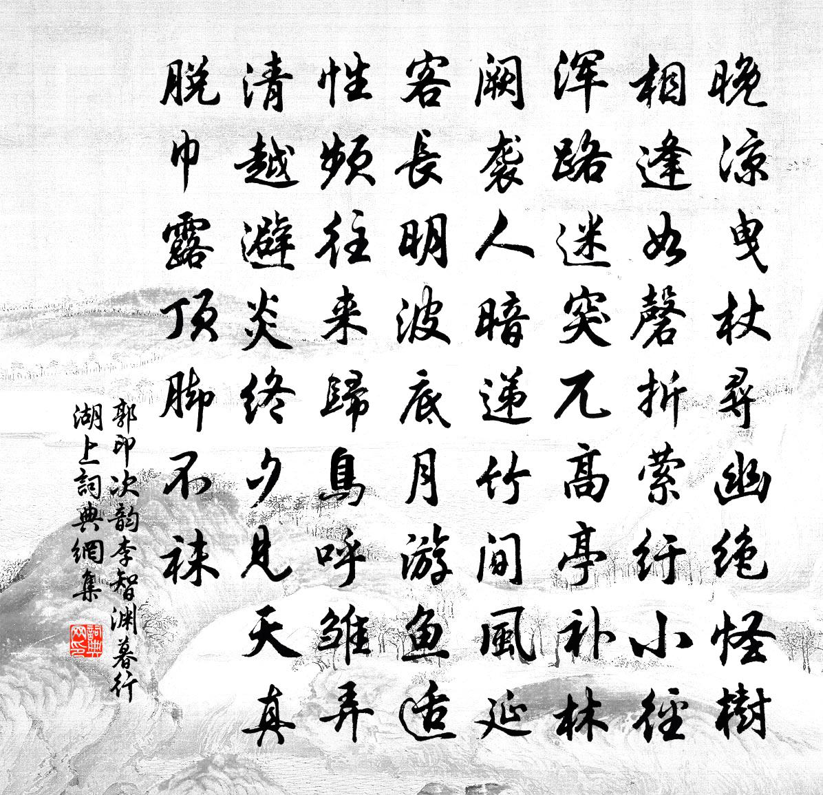 詩詞名句歷史字典書法欣賞書法字典國語詞典說文解字康熙字典古漢語字典標 題 作 者 詩 句 次韻李智淵暮行湖上作者:郭印 朝代:宋代次韻李智淵暮行湖上原文晚涼曳杖尋幽絕,怪樹相逢如磬折。縈紆小徑渾路迷,突兀高亭補林闕。襲人暗遞竹間風,延客長明波底月。游魚適性頻往來,歸鳥呼雛弄清越。避炎終夕見天真,脫巾露頂腳不襪。詩詞問答問:次韻李智淵暮行湖上的作者是誰?答:郭印問:次韻李智淵暮行湖上寫於哪個朝代?答:宋代郭印次韻李智淵暮行湖上書法欣賞次韻李智淵暮行湖上書法作品詩詞推薦和憶弟妹趙希逢〔宋代〕行行弔影建溪南,舉眼何人共急難。同氣蜂飛緣蜜剖, * 蚋聚為醯酸。荊山那得枝和合,豆泣堪傷肉自剜。杜老贈棲賢僧二首王洋〔宋代〕錦心繡口絕鉛華,白氈銅瓶古梵家。宴坐無人問訊息,有時敲板喚玄沙。天賜白周邦彥〔宋代〕君不見書生鐫羌勒兵人,羌來薄城束縛急。蠟丸飛出辭大家,帳下健兒紛雨位。鑿沙到石終無水,擾擾萬人如渴蟻吏責陸游〔宋代〕吏責何時得暫停,年來減盡鬢邊青。高談正樂催迎客,美睡方酣報掣鈴。安得雲山長在眼,便從樵牧與忘形。詩成南溪山居秋日睡起楊萬里〔宋代〕客至從嗔不著冠,起來信手攬書看。小蜂得計欺儂睡,偷飲晴窗硯滴乾。三峰府內矮柏(一作檜)十韻吳融〔唐代〕擢秀依黃閣,移根自碧岑。周圍雖合抱,直上豈盈尋。遠砌行窺頂,當庭坐庇陰。短堪驚眾木,高已讓他林。日轉中秋待月以星辰避彩乾坤靜為韻分得避字郭印〔宋代〕大火西流金用事,四海八荒蟠殺氣。風淒露冷雨涔涔,草木山川遍憔悴。天公有眼老亦昏,妙手憑誰刮雙翳。一年詩一首住山僧〔宋代〕方丈前頭掛草鞋,流行坎止任安排。老僧腳底從來闊,未必枯髏就此理。鷓鴣天晏幾道〔宋代〕鬥鴨池南夜不歸。酒闌紈扇有新詩。雲隨碧玉歌聲轉,雪繞紅瓊舞袖回。今感舊,欲沾衣。可憐人似水東西。回頭句晏殊〔宋代〕素花皎霜雪,紅艷比瑤瓊。詠史下關羽四首陳普〔宋代〕巴山漢水本興劉,諸葛才華備贊留。但得關髯師廣武,北州韓信在南州。寶雲庵戒師洪咨夔〔宋代〕鍾山好住苦弗住,馱嶺難居真欲居。出地入天須任我,來今去古不關渠。萬由旬上起膚寸,一剎那間彌太虛。識得范參政自建康得資政宮祠六詩寄呈趙蕃〔宋代〕風月滄浪自逐臣,煙波甫里亦遺民。未聞官號大學士,辭遜雍容得退身。贈女學士劉克莊〔宋代〕女子談天世有之,福唐吳媛獨神奇。語多中的疑明思,心自通靈不問龜。聞道膝邊隨季主,定傳肘後與文姬。未知點絳唇(冷香菊)王十朋〔宋代〕霜蕊鮮鮮,野人開徑新栽植。冷香佳色。趁得重陽摘。預約比鄰,有酒須相覓。東籬側。為花辭職。古有陶彭澤。寓興洪咨夔〔宋代〕下蟲}識人意,切切悲流年。最憐重開桂,抱寒為人妍。湖州歌九十八首 其五十六汪元量〔宋代〕歌風台畔水沄沄,地面官人饋酒葷。宮女上船嬉一霎,不禁塵土污衣裙。詠梅五十首呈史尚書釋紹嵩〔宋代〕小寺鴉鳴日行時,無人同趣獨支頤。殷勤為注銅瓶水,只篸橫斜一兩枝。送崔峒使往睦州兼寄薛司戶嚴維〔唐代〕如今相府用英髦,獨往南州肯告勞,冰水近開漁浦出,雪雲初卷定山高,木奴花映桐廬縣,青雀舟隨白露濤。使者詠秋蘭靜諾〔清代〕長林眾草入秋荒,獨有幽姿逗晚香。每向風前堪寄傲,幾因霜後欲留芳。名流賞鑒還堪佩,空谷知音品自揚。一種名句推薦枕上十年事,江南二老憂,都到心頭。徐再思《水仙子·夜雨》 檳榔無柯,椰葉無陰。左思《三都賦》 做弄得、酒醒天寒,空對一庭香雪。張炎《疏影·梅影》 楊柳絲絲弄輕柔,煙縷織成愁。王雱《眼兒媚·楊柳絲絲弄輕柔》 觀書老眼明如鏡,論事驚人膽滿軀辛棄疾《送湖南部曲》 自知者不怨人,知命者不怨天;怨人者窮,怨天者無志。荀子《荀子·榮辱》 茶性儉,不宜廣,廣則其味黯澹。陸羽《茶經·五之煮》 才道莫傷神,青衫濕一痕。納蘭性德《菩薩蠻·新寒中酒敲窗雨》 挫其銳,解其紛,和其光,同其塵。湛兮,似或存。老子《老子·道經·第四章》 東指羲和能走馬,海塵新生石山下。李賀《天上謠》