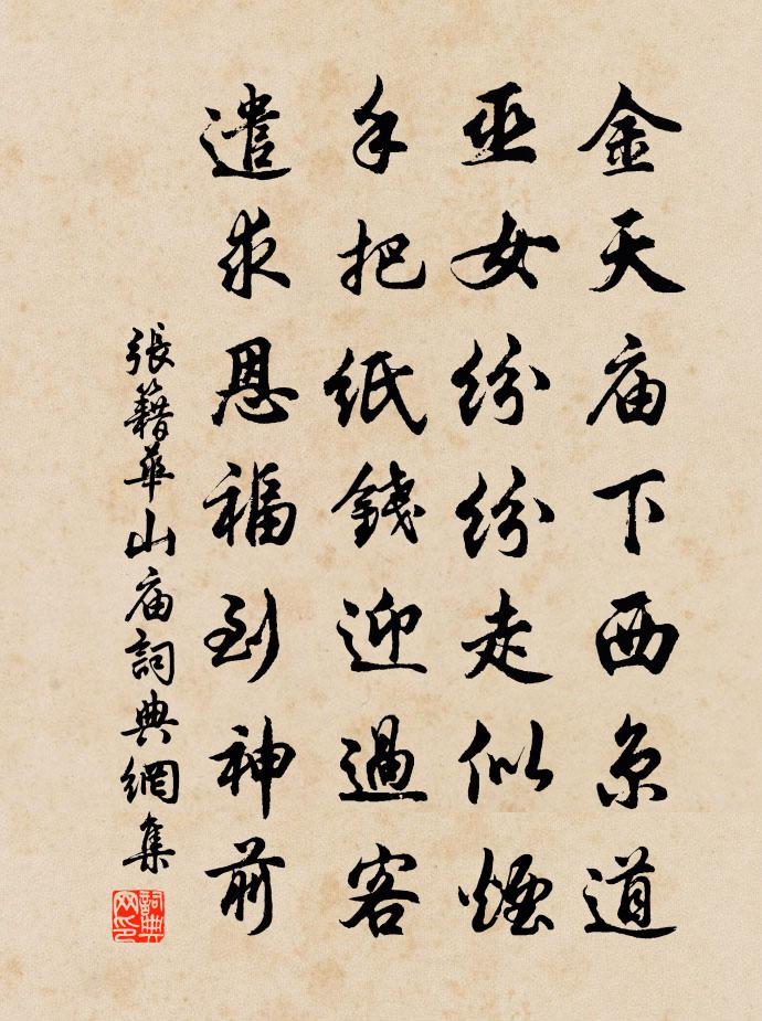 金天廟下西京道,巫女紛紛走似煙。手把紙錢迎過客,遣求恩福到神前。