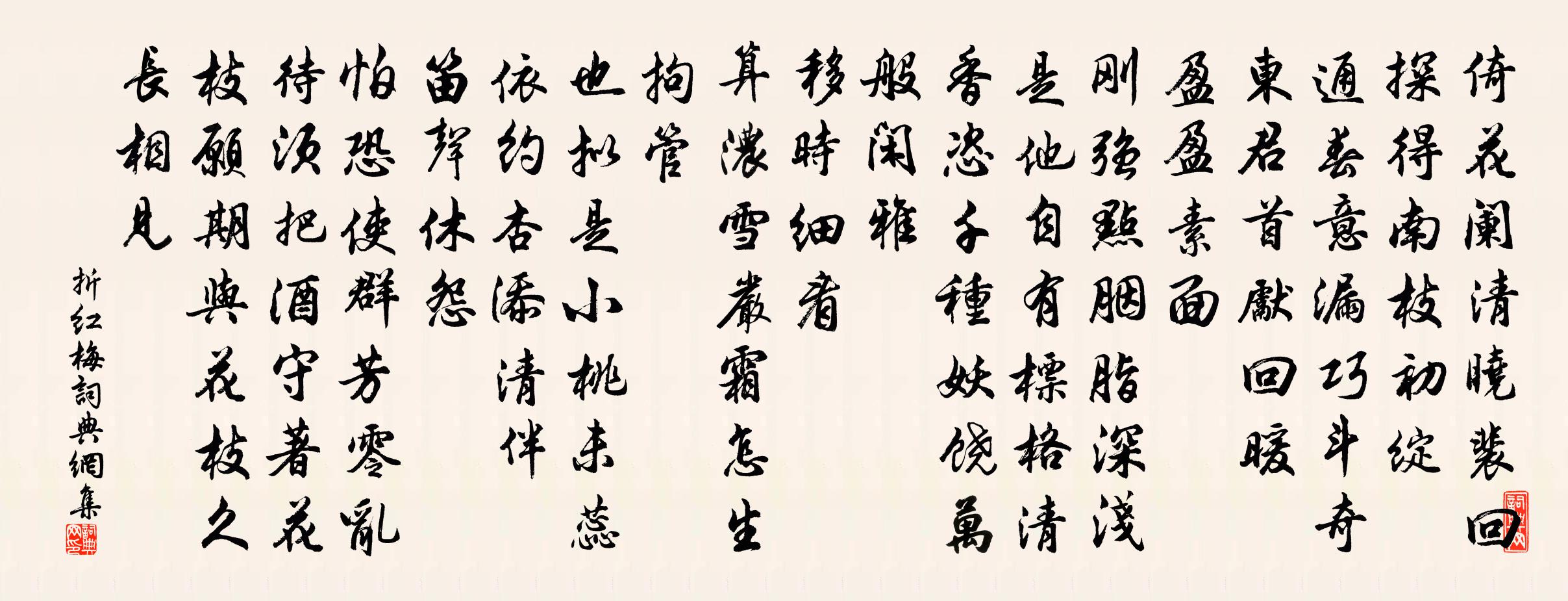 倚花闌清曉,裴回探得,南枝初綻。通春意、漏巧鬥奇,東君首先回暖。