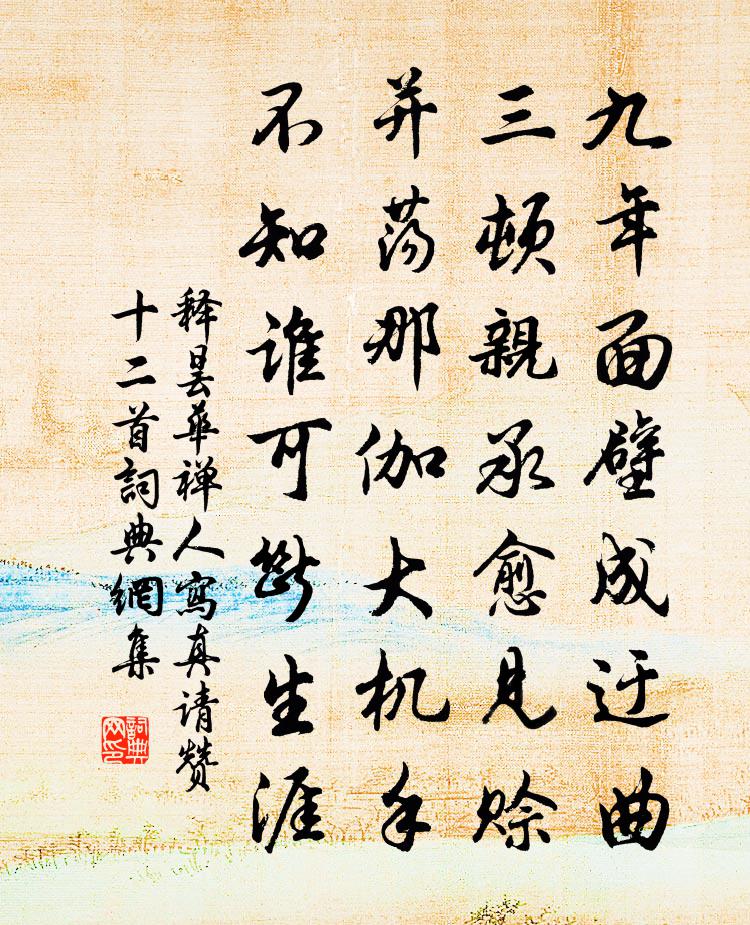 詩詞名句歷史字典書法欣賞書法字典國語詞典說文解字康熙字典古漢語字典標 題 作 者 詩 句 禪人寫真請贊十二首作者:釋曇華 朝代:宋代禪人寫真請贊十二首原文九年面壁成迂曲,三頓親承愈見賒。並盪那伽大機手,不知誰可斷生涯。詩詞問答問:禪人寫真請贊十二首的作者是誰?答:釋曇華問:禪人寫真請贊十二首寫於哪個朝代?答:宋代釋曇華禪人寫真請贊十二首書法欣賞禪人寫真請贊十二首書法作品詩詞推薦即事陸游〔宋代〕紙潔晴窗暖,粳新午飯香。嗜眠為至樂,省事是奇方。孤蝶弄秋色,亂鴉啼夕陽。詩情隨處有,信筆自成章。句盛度〔宋代〕我來佩竹使,方且憩熊轓。和黃倅懷歸史彌寧〔宋代〕雁聲切切楚鄉來,似喚秋光入酒杯。好景欠人同歷覽,歸程為我小遲回。一天風月詩囊富,千里江山畫軸開。祗恐壽權漕大卿徐璣〔宋代〕青陽初動小春華,盡道蔥蘢曉氣佳。卿月早隨良月誕,繡衣元屢袞衣家。仙方養就雙瞳碧,和氣分成兩臉霞。看取病後夏初雜書近況十首方回〔宋代〕一切牽纏斷孟勞,何金為帶紫為袍。老從楊柳櫻桃去,醉肯螟蛉蜾蠃家。共慶龍從乾五會,誰工雉食鼎三膏。折腰無題三首馬廷鸞〔宋代〕聞說江邊起柁樓,欲將吾道付滄洲。三年惡瞰盧仝屋,一日輕裝范蠡舟。蹈海高懷欣獨往,濟川好手蹇難留。檣陰水龍吟劉克莊〔宋代〕當年玉立清揚,屋樑落月偏相照。而今衰颯,形骸百醜,情懷十拗。久已飾巾,尚堪扶杖,聽山東詔。盡後車載汝浣溪沙張孝祥〔宋代〕只說閩山錦繡帷。忽從團扇得生枝。縐紅衫子映豐肌。春線應憐壺漏永,夜針頻見燭花摧。塵飛一騎憶來時。鷓鴣天 壽楊同知蒲道源〔元代〕好景良辰近上元。天公為閒產英賢。政聲洋溢春風外,德澤流行漢水邊。官一品,壽千年。應知仁者得兼全。鳳凰郡齋移杉韋應物〔唐代〕擢乾方數尺,幽姿已蒼然。結根西山寺,來植郡齋前。新含野露氣,稍靜高窗眠。雖為賞心遇,豈有岩中緣。中和樂九章歌明堂第二盧照鄰〔唐代〕穆穆聖皇,雍雍明堂。左平右墄,上圓下方。調均風雨,制度陰陽。四窗八達,五室九房。南通夏火,西瞰秋霜。郊行夜歸有感陸游〔宋代〕小市歌呼散,幽人悄獨行。斷鴻沙際冷,重露草根明。信古痴常絕,酬恩命本輕。還家掩屏臥,衰涕浩縱橫。余應卿招飲袁說友〔宋代〕東門郭外七桐里,知有宣州別駕家。再世從游心自喜,暫時觴詠語無嘩。平田寒日行孤鶩,枯木淒風集亂鴉。酒聖和太常王卿立秋日即事盧綸〔唐代〕嵩高雲日明,潘岳賦初成。籬槿花無色,階桐葉有聲。絳紗垂簟淨,白羽拂衣輕。鴻雁悲天遠,龜魚覺水清。別弦姜池源廟二首鄧肅〔宋代〕樽酒源頭一拜神,麕羊瓮繭便青春。當年旱魃矜余虐,禱去陽侯失舊津。除夕方岳〔宋代〕守歲團欒謝兩侯,堆盤水陸有珍投。鱘香透白瓊瑤片,蝦醉殷紅瑪瑙鉤。湩酪遠分閩嶠雪,枝柑猶帶石橋秋。老饕冬日觀河清馬世德〔宋代〕邑宰崇明祀,侵晨苦見邀。未能乘快騎,且復御輕軺。瑞應黃流碧,晴清戾氣消。今朝風日暖,臨水且逍遙。答李泉州元善劉克莊〔宋代〕平生陳無己,白首欠吟債。未嘗交馬呂,況肯見章蔡。附熱生可鄙,中寒死亦快。吾方尚此友,巾車與同載。前瞻贈覺師洪邁〔宋代〕覺師儒門秀,脫屣世故早。那知軒冕味,夙悟心已槁。惟余章句習,心境時相惱。如人生於齊,而即楚鄉老。雖遭任漕子嚴輓詞周必大〔宋代〕壯志宵興著祖鞭,雄辭銳欲勒燕然。一生僅踏金門地,半世常游玉笥天。勝墅棋高無敵手,奪袍句好有新編。高風名句推薦處事要代人作想,讀書須切己用功。王永彬《圍爐夜話·第五則》 當時父母念,今日爾應知。白居易《燕詩示劉叟》 酒酣應對燕山雪,正冰河月凍,曉隴雲飛。周密《高陽台·送陳君衡被召》 不怕三十而死,只怕死後無名。佚名《增廣賢文·下集》 墜粉飄香,日日喚愁生。盧祖皋《江城子·畫樓簾暮卷新晴》 雨落不上天,水覆難再收。李白《妾薄命》 正江令恨別,庾信愁賦劉辰翁《蘭陵王·丙子送春》 將受命之日則忘其家,臨軍約束則忘其親,援枹鼓之急則忘其身。司馬遷《史記·七十列傳·司馬穰苴列傳》 誠既勇兮又以武,終剛強兮不可凌。屈原《國殤》 舒捲江山圖畫,應答龍魚悲嘯,不暇顧詩愁。楊炎正《水調歌頭·登多景樓》
