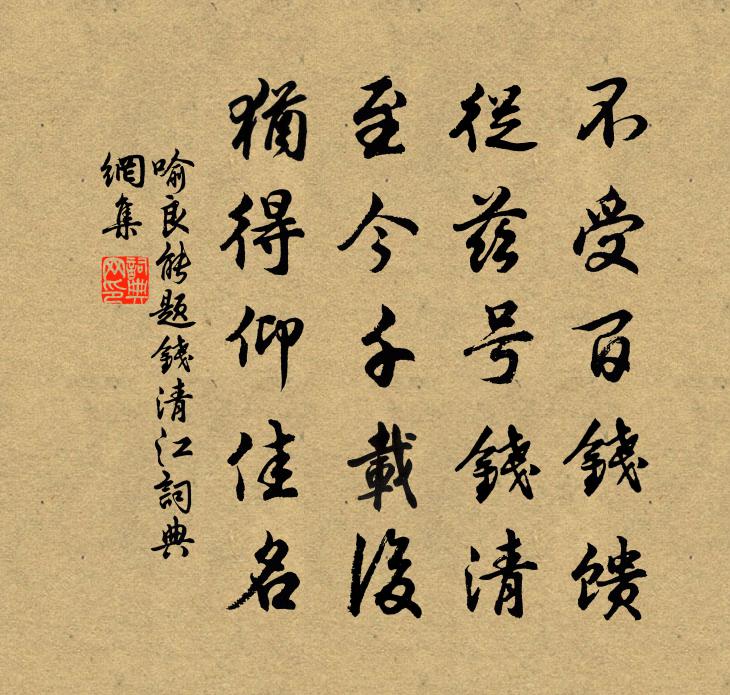 詩詞名句歷史字典書法欣賞書法字典國語詞典說文解字康熙字典古漢語字典標 題 作 者 詩 句 題錢清江作者:喻良能 朝代:宋代題錢清江原文不受百錢饋,從茲號錢清。至今千載後,猶得仰佳名。詩詞問答問:題錢清江的作者是誰?答:喻良能問:題錢清江寫於哪個朝代?答:宋代喻良能題錢清江書法欣賞題錢清江書法作品詩詞推薦金山三首王安石〔宋代〕波瀾盪沃乾坤大,氣象包藏水石閒。只有此中宜曠望,誰令天作海門山。守風嘲舟子范成大〔宋代〕奪命稠灘百戰余,守風端坐恰乘除。日長飽飯佳眠覺,閒傍蘆花學釣魚。謝商守宋郎中寄到天柱山戶帖仍依元韻邵雍〔宋代〕不將生殺奏嚴宸,卻抱煙嵐學隱淪。多謝史君虛右席,重延天柱一山人。上閩帥范石湖五首敖陶孫〔宋代〕今代論文更是非,賞音誰復得牙夔。直從長慶成編日,便到先生晚歲時。萬馬蕭蕭閒律令,孤峰隱隱出旌旗。了知病中寄曾使君湖上曹勛〔宋代〕露曉紅幢綠蓋明,使君千騎會耆英。笙歌遞奏連雲上,荷芰傳香拂面清。遐想雅歡均四坐,欲尋幽夢下重成。負薪虞美人陳允平〔宋代〕疏林遠帶寒山小。月落霜天曉。棹歌初發浦煙中。自嘆疏狂蹤跡、似萍蓬。江邊衰柳迷津堠。歸興濃於酒。斷煙流春日雜興陸游〔宋代〕陰晴不定春猶淺,困健相兼病未蘇。見說市樓新酒美,杖頭今日一錢無。和子厚弟春日見寄三首王之道〔宋代〕睡起晴窗正憶渠,老兵聲喏到前除。新詩價重連城璧,便覺貧家富不虛。觀物吟邵雍〔宋代〕物不兩盛,事難獨行。榮瘁迭起,賢愚並行。哭胡遇朱慶餘〔唐代〕尋僧昨日尚相隨,忽見緋幡意可知。題處舊詩休更讀,買來新馬憶曾騎。不應隨分空營奠,終擬求人與立碑。每向奉餞鄭中丞罷浙西節度還京劉長卿〔唐代〕天上移將星,元戎罷龍節。三軍含怨慕,橫吹聲斷絕。五馬嘶城隅,萬人臥車轍。滄洲浮雲暮,杳杳去帆發。回首清商怨沈蔚〔宋代〕城上鴉啼斗轉。漸漸玉壺冰滿。月淡寒梅,清香來小院。誰遣鸞箋寫怨。翻錦字、疊疊如愁卷。夢破胡笳,江南煙風司馬光〔宋代〕隴首紅旌急,樽前悴幕重。林端翻遠剎,花外轉疏鍾。夜寂清機發,春闌別意濃。如何玉琴韻,並欲在青松。宋玉楊億〔宋代〕蘭台清吹指冠緌,薙草新居對渺瀰。麗賦朝雲無處所,羈懷秋氣動齎咨。三年送目愁鄰媛,七澤 * 怨楚辭。獨有頌古十八首釋師一〔宋代〕渾身燥庠倩人搔,入骨搔來身已勞。一下被伊搔著了,平生癢處一時消。黃葵宋祁〔宋代〕黃葵貴麗不夭饒,一朵新晴松下高。還似邇英臨黼座,曈曨曉日照天袍。立春大雪,招親友共春盤,坐上作范成大〔宋代〕積雪錮萬瓦,雲容如死灰。豈惟梅柳寒,小槽冰春醅。東風乃多事,仍將六花來。兒婦曉翻餅,呵手把一杯。菘甲齊天樂·蟬王沂孫〔宋代〕一襟余恨宮魂斷,年年翠陰庭樹。乍咽涼柯,還移暗葉,重把離愁深訴。西窗過雨。怪瑤佩流空,玉箏調柱。鏡暗渡江雲三犯/渡江雲吳文英〔宋代〕羞紅花顰淺恨,花晚風為落,片繡點重茵。舊堤分燕尾,桂棹輕鷗,寶勒倚殘雲。千絲怨碧,漸路入、仙塢迷津。隔浦蓮近拍陸游〔宋代〕騎鯨雲路倒景。醉面風吹醒。笑把浮丘袂,寥然非復塵境。震澤秋萬頃。煙霏散,水面飛金鏡。露華冷。湘妃睡起名句推薦反聽之謂聰,內視之謂明,自勝之謂強。司馬遷《史記·商君列傳》 巨屨小屨同賈,人豈為之哉。孟子《孟子·滕文公章句上·第四節》 崑崙之高有積雪,蓬萊之遠常遺寒。王令《暑旱苦熱》 清江一曲柳千條,二十年前舊板橋。劉禹錫《楊柳枝 / 柳枝詞》 冬宜密雪,有碎玉聲。王禹偁《黃岡竹樓記》 其身正,不令而行;其身不正,雖令不從。孔子弟子《論語·子路篇》 寸寸微雲,絲絲殘照,有無明滅難消。賀雙卿《鳳凰台上憶 * ·寸寸微雲》 秋草獨尋人去後,寒林空見日斜時。劉長卿《長沙過賈誼宅》 女兒年幾十五六,窈窕無雙顏如玉。蕭衍《東飛伯勞歌》 畫圖恰似歸家夢,千里河山寸許長。辛棄疾《鷓鴣天·送元濟之歸豫章》