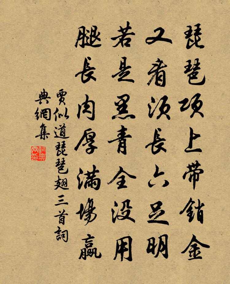 詩詞名句歷史字典書法欣賞書法字典國語詞典說文解字康熙字典古漢語字典標 題 作 者 詩 句 琵琶翅三首作者:賈似道 朝代:宋代琵琶翅三首原文琵琶項上帶銷金,又看須長六足明。若是黑青全沒用,腿長肉厚滿場贏。詩詞問答問:琵琶翅三首的作者是誰?答:賈似道問:琵琶翅三首寫於哪個朝代?答:宋代賈似道琵琶翅三首書法欣賞琵琶翅三首書法作品詩詞推薦踏莎行 題巫峽雲濤圖用王國器韻 鐵網珊瑚書蘇大年〔元代〕煙外斜陽,雲中遠岫。翠眉輕補胭脂漏。回波都是斷腸聲,斷腸更聽哀猿吼。暮雨凝愁,朝雲*酒。余懷遠寄湓江次善堂宴餞應詔司馬光〔宋代〕士論歸清德,皇心重第成。陳謨侍經席,得謝解塵纓。坐密金章並,行徐玉醴清。都門昔供帳,疏傅未為榮。施肩吾宅陳堯咨〔宋代〕幽居正想滄霞客,夜久月寒珠露滴。千年獨鶴兩三聲,飛下岩前一株柏。題江乾初雪圖戴表元〔宋代〕斷樹寒雲古岸隈,漁翁初撥小船開。看渠風雪忙如許,還有魚兒上釣來。和孔教授武仲濟南四詠 北渚亭蘇轍〔宋代〕西湖已過百花汀,未厭相攜上古城。雲放連山瞻嶽麓,雪消平野看春耕。臨風舉酒千鍾盡,步月吹笳十里聲。猶恨送李侍郎西京留台司馬光〔宋代〕先公勛烈盛監梅,清白仍聞世濟才。華省拂衣辭簿領,長衢回首謝塵埃。嵩峰排霧依稀出,洛水迎入迤邐來。寄語又口占小詩五首李壁〔宋代〕歲月翩翩比擲梭,從公能幾別離多。梁州此去千山阻,病鶴無因借一柯。贈文照大師楊億〔宋代〕讀遍龍宮七佛書,一塵無念得衣珠。金園講席天花滿,沙界禪心水月弧。擁衲夜霜凝屋瓦,閉關春雨長庭蕪。公卿三日侍華光殿曲水宴代人應詔詩 四謝朓〔南北朝〕朝陽有乾。布葉萋萋。思皇威矣。鵷羽高棲。出馳先輅。入秉介珪。瞻秦望井。建魯分奎。寧宗郊祀二十九首學士院〔宋代〕聽惟鄉德,監惟棐忱。顧諟思明,靈承思欽。永言端蒞,肅對下臨。上帝是皇,毋貳爾心。次韻孫巨源寄漣水李盛二著作並以見寄五絕蘇軾〔宋代〕南嶽諸劉豈易逢,相望無復馬牛風。山公雖見無多子,社燕何由戀塞鴻。(昔與巨源、劉貢父、劉莘老相遇于山陽念奴嬌辛棄疾〔宋代〕洞庭春晚,舊傳恐是,人間尤物。收拾瑤池傾國艷,來向朱欄一壁。透戶龍香,隔簾鶯語,料得肌如血。月妖真態言志釋文珦〔宋代〕凡物無美惡,適俗斯見收。荊玉鐵強獻,隨珠毋暗投。苟曰道不同,其可相為謀,知已盡淪喪,吾生行且休。題椿桂堂林大中〔宋代〕詩禮栽陪歲月深,流芳到此見天心。桂枝競秀椿難老,寬占堂前十畝陰。捉搦歌姚寬〔宋代〕雙蝶護花飛,老女怨春暮。撲蝶金粉銷,折花顏色故。窗中聲唧唧,雨泣至天曙。問婆許嫁女,莫要擇門戶。願得清明後一日同諸友湖上值雨韓元吉〔宋代〕出遊初不計陰晴,聊喜湖山信馬行。弱柳自隨煙際綠,幽花還傍雨邊明。嫩蒲碧水人家好,密竹疏鬆野寺清。爛醉皇華館以上巳落因修禊事題詩紀之王之望〔宋代〕泉上新台紫翠環,暮春修禊俯潺湲。漢流尚帶桃花水,雲氣初披杏子山。柳絮輕揚晴日暖,竹光不動午陰閒。時和魏宮詞二首劉禹錫〔唐代〕日晚長秋簾外報,望陵歌舞在明朝。添爐欲爇熏衣麝,憶得分時不忍燒。日映西陵松柏枝,下台相顧一相思。朝來和懶窩嚴上人紙被詩舒邦佐〔宋代〕身清不受人間辱,只倩溪翁搗冰轂。素濤照眼絕針痕,暖玉遮頭無臉粟。參寥已似絮沾泥,天女雖來暖非肉。華鯨朝中措(梅月圓)韓淲〔宋代〕為茲春酒壽時翁。我輩一尊同。香動梅梢圓月,年年先得東風。冰溪清淺流環玉,蓮幕漫從容。但願人生長久,揮名句推薦謂誰朝來不作意,狂風挽斷最長條。杜甫《絕句漫興九首·其一》 岸柳垂金線,雨晴鶯百囀。顧敻《醉公子·岸柳垂金線》 不系雕鞍門前柳,玉容寂寞見花羞,冷風兒吹雨黃昏後。喬吉《春閨怨·不系雕鞍門前柳》 柳花深巷午雞聲,桑葉尖新綠未成。范成大《春日田園雜興》 不患無位,患所以立;不患莫已知,求為可知也。孔子弟子《論語·里仁篇》 有大略者,不可責以捷巧;有小智者,不可任以大功。劉安及其門客《淮南子·主術訓》 慨當初,倚飛何重,後來何酷。文徵明《滿江紅·拂拭殘碑》 相思已是不曾閒,又那得、工夫咒你。蜀妓《鵲橋仙·說盟說誓》 平林漠漠煙如織,寒山一帶傷心碧。李白《菩薩蠻·平林漠漠煙如織》 涼葉蕭蕭散雨聲,虛堂淅淅掩霜清。元好問《秋懷》