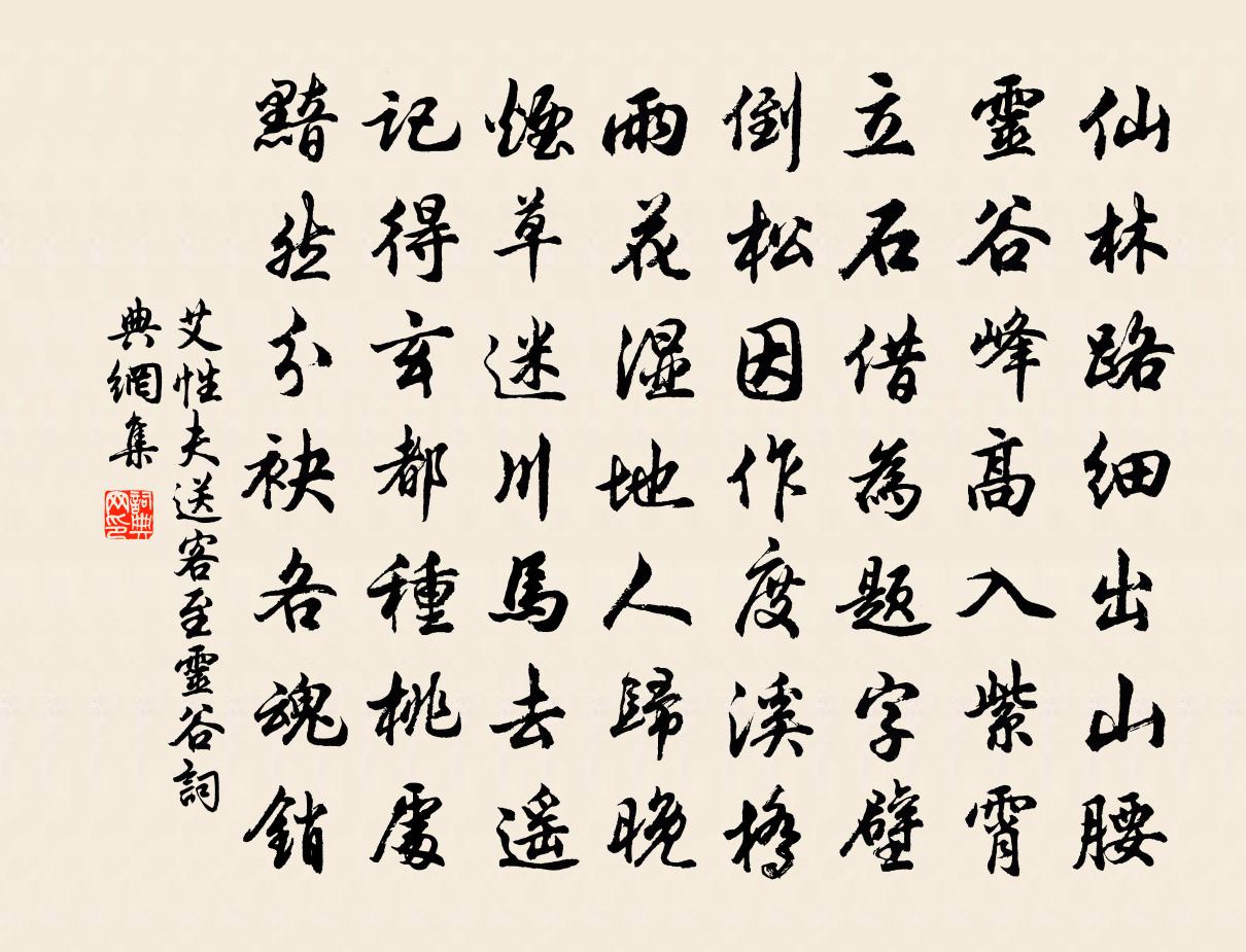 詩詞名句歷史字典書法欣賞書法字典國語詞典說文解字康熙字典古漢語字典標 題 作 者 詩 句 送客至靈谷作者:艾性夫 朝代:宋代送客至靈谷原文仙林路細出山腰,靈谷峰高入紫霄。立石借為題字壁,倒松因作度溪橋。雨花濕地人歸晚,菸草迷川馬去遙。記得玄都種桃處,黯然分袂各魂銷。詩詞問答問:送客至靈谷的作者是誰?答:艾性夫問:送客至靈谷寫於哪個朝代?答:宋代問:送客至靈谷是什麼體裁?答:七律艾性夫送客至靈谷書法欣賞送客至靈谷書法作品詩詞推薦起晚自嘲陸游〔宋代〕辛苦一生何所獲,老向東阡與南陌。頭眩眼暗牙齒疏,能作人間幾時客?爾來偷惰更可笑,臥聽場中打新麥。老雞三婦艷歌曹勛〔宋代〕大婦織雲錦,中婦繡鴛鴦。小婦獨無事,對鏡理紅妝。良人幸安坐,帳暖自添香。鄂渚除夜書懷來鵠〔唐代〕鸚鵡洲頭夜泊船,此時形影共悽然。難歸故國干戈後,欲告何人雨雪天。箸撥冷灰書悶字,枕陪寒席帶愁眠。自嗟月窗釋妙倫〔宋代〕曲曲彎彎地,明明白白中。當軒開闔處,一隔為誰通。酬胡三憑人問牡丹元稹〔唐代〕竊見胡三問牡丹,為言依舊滿西欄。花時何處偏相憶,寥落衰紅雨後看。織綾詞章孝標〔唐代〕去年蠶惡綾帛貴,官急無絲織紅淚。殘經脆緯不通梭,鵲鳳闌珊失頭尾。今年蠶好繰白絲,鳥鮮花活人不知。瑤台臨江仙曹伯啟〔元代〕水出五穀成一派,滔滔日夜東流。倦乘鞍馬卻乘舟。向來危處怯,此去險中愁。伊軋數聲離岸櫓,異鄉身世悠悠。句潮州士人〔宋代〕潮民遺愛處,八十里長堤。蔬簾淡月 和黃伯成吳興道中韻邵亨貞〔元代〕蒼煙古木。漸暝入小溪,鷗鷺如玉。斜倚孤篷眺晚,毳裘寒肅。秋娘渡口山橫處,舊曾尋、五陵芳躅。畫樓燈火,輕薄怨李鹹用〔唐代〕花驄躞蹀游龍驕,連連寶節揮長鞘。鳳雛麟子皆至交,春風相逐垂楊橋。捻笙軟玉開素苞,畫樓閃閃紅裾搖。碧蹄九日獨酌三首蘇轍〔宋代〕平昔交遊今幾人,後生誰復款吾門。茅檐適性輕華屋,黍酒忘形敵上樽。東圃旋移花百本,西軒恨斫竹千根。舍南傷畫松道芬上人(因畫釣台江山而逝)徐凝〔唐代〕百法驅馳百年壽,五勞消瘦五株松。昨來聞道嚴陵死,畫到青山第幾重。秋崖先生招飲荷葭塢席上賦詩吳龍翰〔宋代〕相公潭水清於玉,翠屏四面環書屋。石梯幽幽登蒼崖,老樹晴煙千頃綠。好花對人無俗姿,春色盈盈囿虛谷。歸來梅花劉過〔宋代〕人間不盡春來意,恰則一枝梅更疏。待得和羹幾時在,祗今風月上新除。朝中措黃機〔宋代〕逢逢船鼓綠楊津。彼此是行人。先自離愁無數,那堪病酒傷春。岸花檣燕,低飛款語,滿面殷勤。後會不知何日,和食蕨三首廖行之〔宋代〕根荄蔓衍布山巔,一夕春雷引怒拳。足我窮中八珍味,竹萌木耳更求旃。寄友人方岳〔宋代〕面熟青山亦故人,霜逢肯負月粼粼。如聞行李且家住,未必梅花知路貧。薺老自堪供野飯,罾寒誰與膾溪鱗。商量四色雍裕之〔唐代〕壺中冰始結,盤上露初圓。何意瑤池雪,欲奪鶴毛鮮。道士牛已至,仙家鳥亦來。骨為神不朽,眼向故人開。勞魴菩薩蠻(鄭舜舉別席侑觴)韓元吉〔宋代〕詔書昨夜先春到。留公一共梅花笑。青瑣鳳凰池。十年歸已遲。靈溪霜後水。的的清無比。比似使君清。要知清更紹興祀高禖十首佚名〔宋代〕有奕禖宮,在國之南。壇壝既設,威備孔嚴。登祀濟濟,神兮顧瞻。佑我皇祚,宜百斯男。名句推薦清娥畫扇中,春樹鬱金紅。溫庭筠《清明日》 怒猊抉石,渴驥奔泉宋祁、歐陽修、范鎮、呂夏卿等《新唐書·列傳·卷八十五》 箴者,針也,所以攻疾防患,喻針石也。劉勰《文心雕龍·銘箴》 橋成漢渚星波外,人在鸞歌鳳舞前。晏幾道《鷓鴣天·當日佳期鵲誤傳》 寧我負人,毋人負我。陳壽《三國志·魏書·武帝紀》 思量舊夢,黃梅聽雨,危闌倦倚鄧廷楨《水龍吟·雪中登大觀亭》 西湖到日,重見梅鈿皺。吳文英《瑞龍吟·送梅津》 這次第,怎一個愁字了得!李清照《聲聲慢·尋尋覓覓》 更無柳絮因風起,惟有葵花向日傾。司馬光《客中初夏》 晝出耘田夜績麻,村莊兒女各當家。范成大《夏日田園雜興·其七》