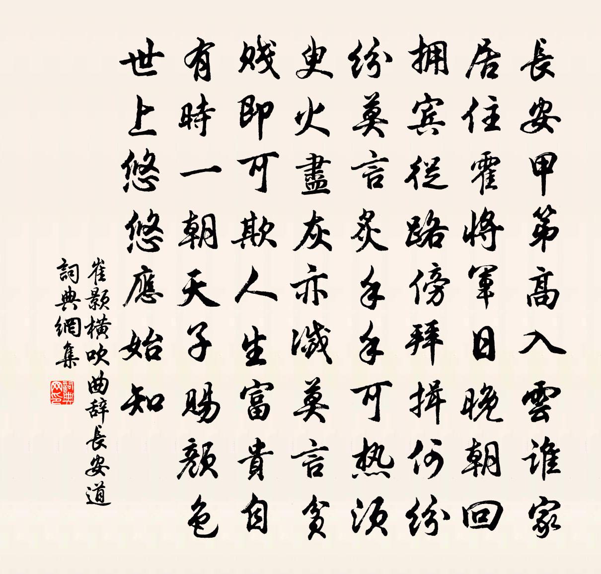 長安甲第高入雲,誰家居住霍將軍。日晚朝回擁賓從,