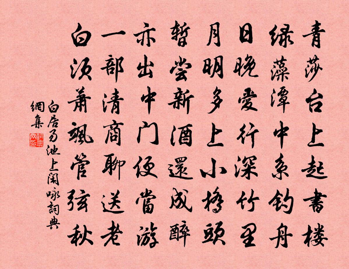 青莎台上起書樓,綠藻潭中系釣舟。日晚愛行深竹里,月明多上小橋頭。
