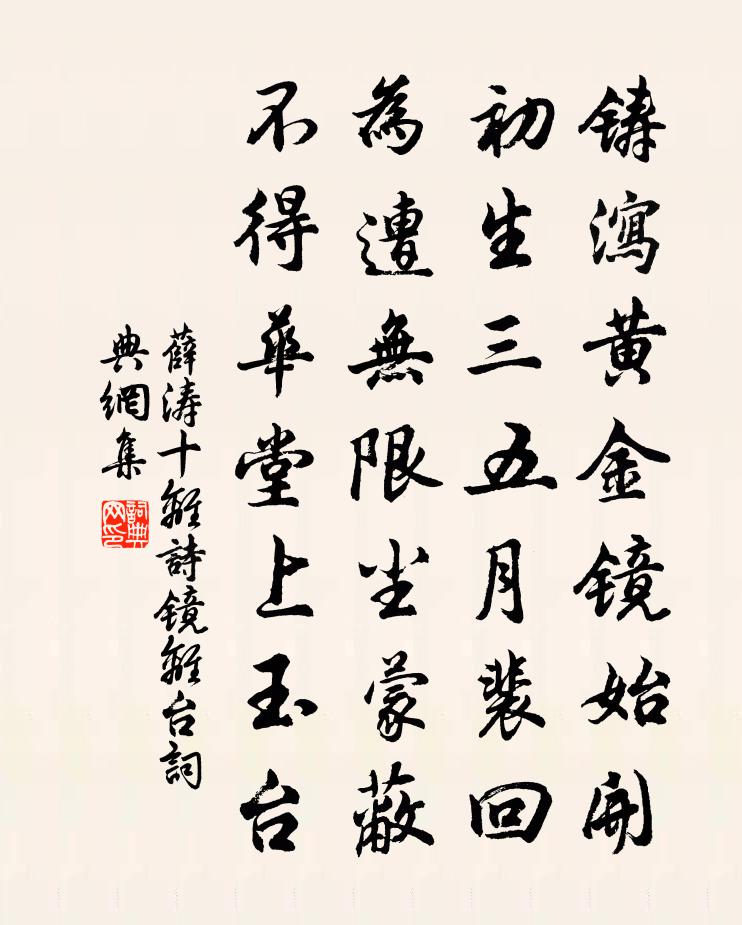 詩詞名句歷史字典書法欣賞書法字典國語詞典說文解字康熙字典古漢語字典標 題 作 者 詩 句 十離詩。鏡離台作者:薛濤 朝代:唐代十離詩。鏡離台原文鑄瀉黃金鏡始開,初生三五月裴回。為遭無限塵蒙蔽,不得華堂上玉台。詩詞問答問:十離詩。鏡離台的作者是誰?答:薛濤問:十離詩。鏡離台寫於哪個朝代?答:唐代薛濤十離詩。鏡離台書法欣賞十離詩。鏡離台書法作品詩詞推薦長安贈王注司空圖〔唐代〕正下搜賢詔,多君獨避名。客來當意愜,花發遇歌成。樂地留高趣,權門讓後生。東方御閒駟,園外好同行。寄疊山謝年丈柴隨亨〔宋代〕短劍悲歌浙水灣,疾風吹夢到西山。應知薇蕨同滋味,莫道匡時更轍環。雜詠一百首梁鴻劉克莊〔宋代〕肅宗漢明主,猶惡五噫詩。一旦拂衣去,世人那得知。和玉素喜影仁新宅韓維〔宋代〕處仁由智古常然,賢者寧同聚所寰。植木便知如渭水,結茅仍得見箕山。杯深不許嘉賓訴,花小須防稚子攀。投紱再賦丁謂〔宋代〕彼美性秋江上,性塵埃恥托性根。笑傾性行雨國,香返夢蘭魂。蛺蝶無媒妁,鴛鴦見子孫。遍窺思兩槳,深鎖憶重游驪山二首張俞〔宋代〕金玉樓台插碧空,笙歌遞響入天風。當時國色並春色,盡在君五顧盼中。次韻仲殊雪中游西湖二首蘇軾〔宋代〕寶雲樓閣鬧千門,林靜初無一鳥喧。閉戶莫教風掃地,捲簾疑有月臨軒。水光瀲灩猶浮碧,山色空濛已斂昏。乞得齋中讀書宋庠〔宋代〕藤篋紛披擁蠹筠,日開黃卷代談賓。一經皓首心非悔,枉是無言對斲輪。孤雁嘆白玉蟾〔宋代〕孤雁聲嚘嚘,憂如司馬牛。君不見煮豆燃豆萁,斯人者斗米尺布渠豈羞。知有鶺鴒在原不,知有棠棣之華不。春眺李百藥〔唐代〕疲疴荷拙患,淪躓合幽襟。棲息在何處,丘中鳴素琴。馬上偶成陸游〔宋代〕城南城北紫游韁,盡日閒行看似忙。刺水離離葛葉短,連村漠漠豆花香。夕陽有信催殘角,春草無情上繚牆。我亦滿庭芳葛立方〔宋代〕扉映琉璃,窗搖雲母,水堂新甃雲灣。際天波面,玉鏡寶奩寬。欄外青山幾疊,瑤煙斂、影落千鬟。寒汀晚,蘆花長信宮(一作長信怨)李白〔唐代〕月皎昭陽殿,霜清長信宮。天行乘玉輦,飛燕與君同。別有歡娛處,承恩樂未窮。誰憐團扇妾,獨坐怨秋風。首尾吟邵雍〔宋代〕堯夫非是愛吟詩,詩是堯夫十月時。寒日無光天色遠,陰雲不動柳絲垂。園林葉盡鳥未散,道路風多人更稀。滿目和徐徑坂韻二首趙汝騰〔宋代〕玉柯仙管頻念我,大書束縑濃墨斑。寄情縹渺江海際,匠語慘澹雲煙間。燃藜太乙中夜照,垂釣客星清晝閒。允公次韻潁小弟秋日蘇泂〔宋代〕游鱗羈羽憑浮沉,老大悽然感歲陰。風底波紋生別浦,雨餘山影出疏林。殘年不足償多病,萬事寧須付有心。滿眼磅大受赴選天官鄒浩〔宋代〕元佑真人初御天,四門穆穆來忠言。閬風學士望朝野,即日賜環司諫垣。當時同列繼登用,獨先朝露歸九原。位不聞寺中曉鼓劉學箕〔宋代〕靈鼉一鼓振潮音,征夢迢遙枕畔聞。語斷頻伽天正曉,送風吹散滿天雲。初冬陸游〔宋代〕初冬常憶宴梁州,百炬如椽滿畫樓。三十七年猶未死,茅檐霜冷一燈幽。寄清新二禪師頌黃庭堅〔宋代〕石公來斲鼻端塵,無手人來斧鑿親。白牯狸奴心即佛,銅睛虎眼主中賓。自攜瓶去沽村酒,幻者衫來作主人。萬里名句推薦葉落風不起,山空花自紅。陳師道《妾薄命·為曾南豐作》 想文君望久,倚竹愁生步羅襪。姜夔《八歸·湘中送胡德華》 見楊柳飛綿滾滾,對桃花醉臉醺醺。王實甫《十二月過堯民歌·別情》 徒把金戈挽落暉,南冠無奈北風吹。虞集《挽文丞相》 厚祿故人書斷絕,恆飢稚子色淒涼。杜甫《狂夫》 富而不驕,貴而不舒。司馬遷《史記·五帝本紀》 窗白一聲雞,枕函聞馬嘶。顧貞觀《菩薩蠻·山城夜半催金柝》 狡兔盡則良犬烹,敵國滅則謀臣亡。韓非及後人《韓非子·內儲說下六微》 如是滅度無量無數無邊眾生。實無眾生得滅度者。鳩摩羅什譯《金剛經·大乘正宗》 從別後,憶相逢,幾回魂夢與君同。晏幾道《鷓鴣天·彩袖殷勤捧玉鍾》