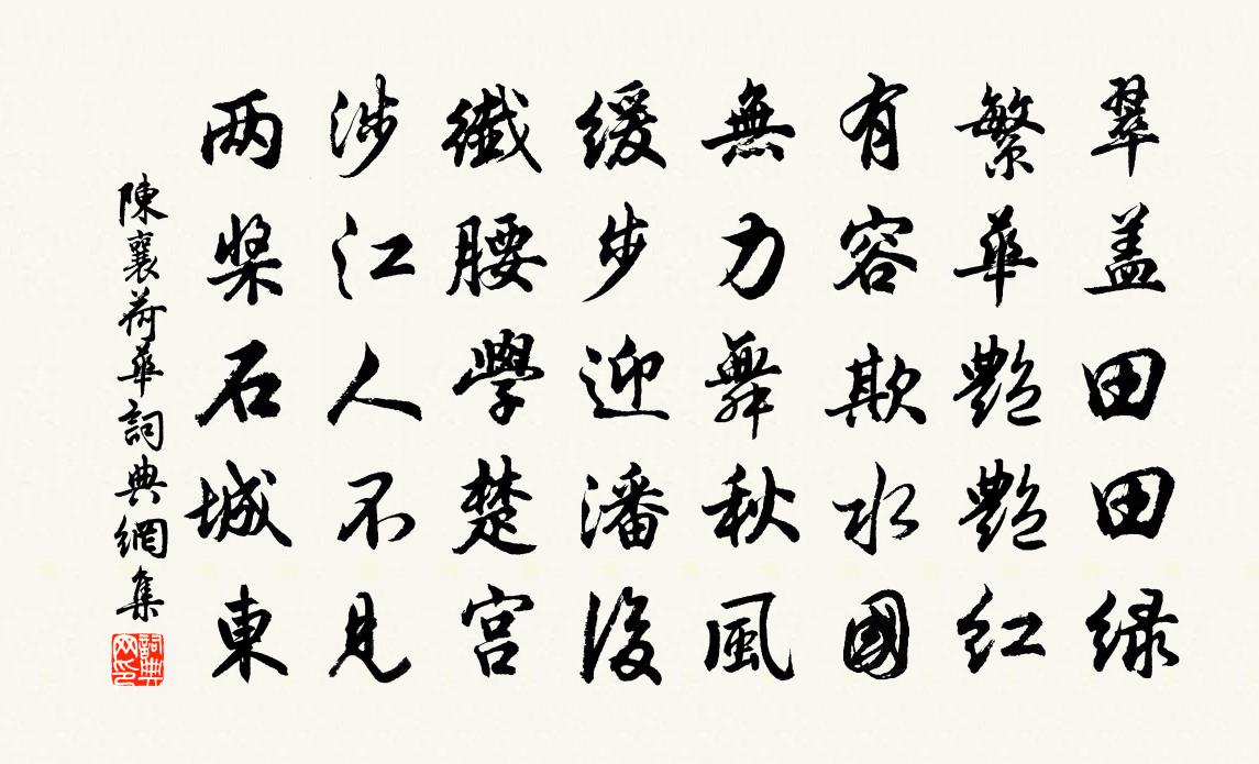詩詞名句歷史字典書法欣賞書法字典國語詞典說文解字康熙字典古漢語字典標 題 作 者 詩 句 荷華作者:陳襄 朝代:宋代荷華原文翠蓋田田綠,繁華艷艷紅。有容欺水國,無力舞秋風。緩步迎潘後,纖腰學楚宮。涉江人不見,兩槳石城東。詩詞問答問:荷華的作者是誰?答:陳襄問:荷華寫於哪個朝代?答:宋代陳襄荷華書法欣賞荷華書法作品詩詞推薦紅樓夢十二曲——枉凝眉曹雪芹〔清代〕一個是閬苑仙葩,一個是美玉無瑕。若說沒奇緣,今生偏又遇著他;若說有奇緣,如何心事終虛話?一個枉子嗟呀周侯德政謠曹粹中〔宋代〕侯育我兮明淳,民感侯兮慈仁。築河碶兮水粼粼,開池井兮水沄沄。我農耕兮河之漘,我農耘兮泉之濆。土田膏兮謝虛中上人寄示題天策閣詩齊己〔唐代〕天策二首作,境幽搜亦玄。閣橫三楚上,題掛九霄邊。寺額因標勝,詩人合遇賢。他時誰倚檻,吟此豈忘筌。登樓懷遵易釋智圓〔宋代〕閒景杳無極,憑欄思若何。鳥行沈遠岳,秋色滿滄波。來信經年絕,新愁向晚多。依依自吟望,舊約負煙蘿。長安縣後亭看畫王建〔唐代〕水凍橫橋雪滿池,新排石筍繞巴籬。縣門斜掩無人吏,看畫雙飛白鷺鷥。偈傾一百三十三首釋法薰〔宋代〕一言道盡,卻成兩橛。擊鼓陞堂,子承父業。訪古寺老僧不遇書壁文同〔宋代〕寂寂復寂寂,門前苔蘚積。巾缽定何之,禪房封屈膝。蛛絲網窗戶,蝸涎篆牆壁。欲去重遲留,空中望歸錫。樂語王義山〔宋代〕風吹仙袂飄飄舉,底事下蓬萊。東朝遙祝萬年杯。玉液瀉金壘。天上蟠桃又熟,暈酡顏、紅染芳腮。年年摘取獻天滄浪亭蒲壽宬〔宋代〕曉色桃蒸霞,春陰柳垂霧。為問橋下船,沿流到何處。丙寅十四首效韋蘇州黃庭堅〔宋代〕漸嘉樓外花,嘉賞亭邊柳。作者歸山丘,今春為誰有。千秋萬歲後,還復來游否。過小孤山大孤山陸游〔宋代〕八月一日,過烽火磯。南朝自武昌至京口,列置烽燧,此山當是其一也。自舟中望山,突兀而已。及拋江過其下,題煙竹圖仇遠〔宋代〕楚山晴雨未分明,淡鎖蒼筠曉更清。渾是一江秋色染,只疑無處著秋聲。十一月二十六日南至天色佳甚孫應時〔宋代〕天心應喜一陽來,萬里寒陰曉自開。訊息早傳從嶰竹,發生先合到江梅。遙瞻雙闕吳雲瑞,正想三宮舞壽杯。草森與友觀蘭趙友直〔宋代〕彭澤當年成菊癖,予今亦欲訂蘭盟。三杯酒向花邊瀉,一首詩從月下賡。送人之鄭城李復〔宋代〕哀弄發危絃,苦調出促管。傷別骨欲銷,坐失重纊暖。仙鵠顧徘徊,千里襄江潼。此去袞袞情,江水流不斷。游蜀(一作蜀中春暮)鄭谷〔唐代〕所向明知是暗投,兩行清淚語前流。雲橫新塞遮秦甸,花落空山入閬州。不忿黃鸝驚曉夢,唯應杜宇信春愁。梅黃贈鮮于伯幾方回〔宋代〕聞名今子駿,所至見公詩。數步元非過,相看豈可遲。吟鞍霜跌後,談麈日閒時。此客差同味,蕭齋許一窺。和高廟淨明院梅岩御製韻二首徐清叟〔宋代〕偶因祀事訪丹霞,寺古山深石徑斜。沖凍細尋梅信息,枝頭喜見狀元花。送李監岳二首陳造〔宋代〕寥寥黃陳後,詩律日就卑。京江一燈續,天乃不憗遺。念君從之游,十年塤應篪。盡渠磋磨巧,況君粹美資。奪標【雙調】殿前歡碧雲深衛立中〔元代〕小 令 【雙調】殿前歡碧雲深,碧雲深處路難尋。數椽茅屋和雲賃,小 令雲在松陰。掛雲和八尺琴,臥苔石名句推薦客睡何曾著,秋天不肯明杜甫《客夜》 是他春帶愁來,春歸何處。辛棄疾《祝英台近·晚春》 橫看成嶺側成峰,遠近高低各不同。蘇軾《題西林壁》 這次第,怎一個愁字了得!李清照《聲聲慢·尋尋覓覓》 無論作何等人,總不可有勢利氣王永彬《圍爐夜話·第三五則》 為我引杯添酒飲,與君把箸擊盤歌。白居易《醉贈劉二十八使君》 越鳥巢乾後,歸飛體更輕。李商隱《晚晴》 書卷多情似故人,晨昏憂樂每相親。于謙《觀書》 況故人新擁,漢壇旌節。辛棄疾《滿江紅·漢水東流》 君子能勤小物,故無大患。司馬光《資治通鑑·周紀·周紀一》