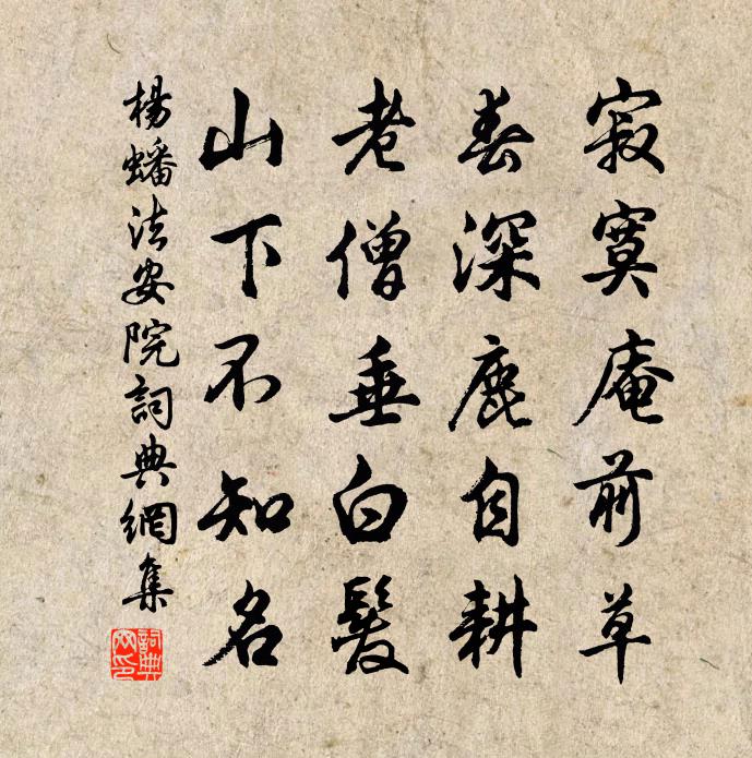詩詞名句歷史字典書法欣賞書法字典國語詞典說文解字康熙字典古漢語字典標 題 作 者 詩 句 法安院作者:楊蟠 朝代:宋代法安院原文寂寞庵前草,春深鹿自耕。老僧垂白髮,山下不知名。詩詞問答問:法安院的作者是誰?答:楊蟠問:法安院寫於哪個朝代?答:宋代楊蟠法安院書法欣賞法安院書法作品詩詞推薦元日述懷(一作明月引)盧照鄰〔唐代〕筮仕無中秩,歸耕有外臣。人歌小歲酒,花舞大唐春。草色迷三徑,風光動四鄰。願得長如此,年年物候新。上集賢錢侍郎釋宇昭〔宋代〕解職因求養,清名冠集賢。優遊書府里,談笑板輿前。鶴氅朝時脫,山圖臥處懸。江僧間獨訪,時得話林泉。送契玄法師赴內道場盧綸〔唐代〕昏昏醉老夫,灌頂遇醍醐。嬪御呈心鏡,君王賜髻珠。降魔須戰否,問疾敢行無。深契何相秘,儒宗本不殊。與李司直令從荻塘聯句皎然〔唐代〕畫舸悠悠荻塘路,真僧與我相隨去。 ——李令從寒花似菊不知名,霜葉如楓是何樹。 ——李令從倦客經秋夜共破陳汪遵〔唐代〕獵獵朱旗映彩霞,紛紛 * 入陳家。看看打破東平苑,猶舞庭前玉樹花。詠史下裴頠陳普〔宋代〕惠帝君臣一樣愚,九龍翁仲淚如珠。眼前喪亂渾如岡,崇有何當卻破無。次韻劉厚之久陰未雨李廌〔宋代〕欲和豐年幾日霖,密雲委地結繁陰。莫疑造物收功晚,自是陽和著意深。且具黃雞傾白酒,更求青李與來禽。掃除中閣禪院留元崇〔宋代〕初來羅浮山,萬變駭林壑。更作招提游,佳處在中閣。忽然天地間,一縱千里目。未論雲頂上,此景占仍獨。近聞送友人李白〔唐代〕青山橫北郭,白水繞東城。此地一為別,孤蓬萬里征。浮雲遊子意,落日故人情。揮手自茲去,蕭蕭班馬鳴。朱雲張耒〔宋代〕直言請劍斬安昌,勿謂朱游只素狂。君看漢家文景業,張侯能以一言亡。水調歌頭廖行之〔宋代〕黃色起犀表,紫綬照金章。兩朝耆德,應是南國舊龔黃。曾上方壺蓬島,萬里鯨波不作,炎海賴清涼。緩造鵷鴻地寄蔡天啟王安石〔宋代〕杖藜緣塹復穿橋,誰與高秋共寂寥。佇立東岡一搔首,冷雲衰草暮迢迢。賀新郎(贈建康鄭玉脫籍)劉仙倫〔宋代〕鄭玉非娼女。嘆塵緣未了,飄零被春留住。腸斷胭脂坡下路。成甚心情意緒。生怕入、梨園歌舞。寂寞陽台雲雨散仁宗皇帝輓詩二首余靖〔宋代〕丕承三後績,盛烈古難陪。納諫書囊集,談經殿閣開。御弧圓月滿,宸翰舞鸞回。冠劍雖歸葬,英風萬祀恢。次韻蘇公涉潁陳師道〔宋代〕衝風不成寒,脫木還自奇。坐看白日晚,起行清潁湄。三穴未為得,一舟不作痴。路暗鳥遺音,江清魚弄姿。宇定雷鳴不雨潘牥〔宋代〕樵子俄從問路回,因言溪谷響如雷。分明雨怕城中去,只隔前峰不過來。補樂府十篇帝有虞氏樂歌曹勛〔宋代〕庶揖讓以敉寧兮傳諸罔極,世不乏聖兮惟皇與直。俾帝堯之至公兮,終維斗之不忒。寄五峰諫長老唐詢〔宋代〕禪客居山患不深,五峰幽絕杳難尋。門前流水朝還暮,堂下閒雲古復今。月色有時依宴坐,秋聲隨處伴謳吟。期師送魯公卷之汶陽吳則禮〔宋代〕投策上前坂,薄暮寒雲滋。華轂不可停,奈此長相思。雁影正疾逝,馬鳴一何悲。歸期無淹留,黃花殊未衰。句錢惟演〔宋代〕正好睡時行十里,不交談處飲三杯。名句推薦瑤草一何碧,春入武陵溪。黃庭堅《水調歌頭·遊覽》 龍蛇四海歸無所,寒食年年愴客心。屈大均《壬戌清明作》 漢家天子今神武,不肯和親歸去來。王之渙《涼州詞二首》 夜寒驚被薄,淚與燈花落納蘭性德《菩薩蠻·蕭蕭幾葉風兼雨》 葉開隨足影,花多助重條。陰鏗《雪裡梅花詩》 誰謂含愁獨不見,更教明月照流黃。沈佺期《古意呈補闕喬知之 / 古意 / 獨不見》 夢裡相思,故國王孫路。陳子龍《點絳唇·春日風雨有感》 凡戰,所謂攻者,知彼者也。佚名《百戰奇略·第四卷·攻戰》 兩處春光同日盡,居人思客客思家。白居易《望驛台》 故園東望路漫漫,雙袖龍鍾淚不乾。岑參《逢入京使》