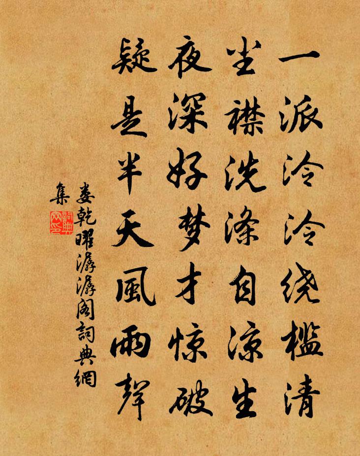 詩詞名句歷史字典書法欣賞書法字典國語詞典說文解字康熙字典古漢語字典標 題 作 者 詩 句 潺潺閣作者:婁乾曜 朝代:宋代潺潺閣原文一派泠泠繞檻清,塵襟洗滌自涼生。夜深好夢才驚破,疑是半天風雨聲。詩詞問答問:潺潺閣的作者是誰?答:婁乾曜問:潺潺閣寫於哪個朝代?答:宋代婁乾曜潺潺閣書法欣賞潺潺閣書法作品詩詞推薦五禽言五首蘇軾〔宋代〕力作力作,蠶絲一百箔。壟上麥頭昂,林間桑子落。願儂一箔千兩絲,繅絲得蛹飼爾雛。和都官苗員外秋夜省直對雨簡諸知己李嘉祐〔唐代〕多雨南宮夜,仙郎寓直時。漏長丹鳳闕,秋冷白雲司。螢影侵階亂,鴻聲出苑遲。蕭條人吏散,小謝有新詩。悼陳子濟教授鄭剛中〔宋代〕憶昔聯書上辟雝,公如玉樹照春風。騫騰尚惜十年晚,銷散俄驚一夢空。世事正茲同沸鼎,我身今亦類飛蓬。愴懷孤山於石〔宋代〕老梅半樹倚枯槎,路入湖心第幾家。水月荒涼誰復問,遊人多隻看荷花。清心鏡 嘆世馬鈺〔元代〕嘆人人,忒拙計。競蝸角虛名,蠅頭薄利。才爭得、粟米頭高,早笑他低底。廝是非,講閒氣。豈悟修行,超凡出次韻徐秀才十首陳造〔宋代〕向來孟浩然,醉眼高宇宙。清詩落京師,蘇李欲束咮。蔗隴槎頭鯿,未覺黃金富。纖鉤餌暇蠅,但取浮陽嗅。送胡月山歸湖山陳郁〔宋代〕知從清淺水邊來,標緻孤高似老梅。華館久同佳客住,飯囊多為貴人開。消除世虎抄花譜,發越吟情戀酒杯。記取過水東曾幾〔宋代〕出郭市聲遠,過溪山色多。稻畦春雨足,野水晚迎波。客自無軒冕,今誰在澗阿。相逢不相識,歸去夢松蘿。送洞元法師歸茅山三首蔡肇〔宋代〕絳節飄飄下紫清,更參隱訣制頹齡。若逢方丈龐眉叟,來愛囊中赤甲經。深居雜興六首林逋〔宋代〕上書可有三千牘,下筆曾無一百函。閒卷孤懷背塵世,獨營幽事傍雲岩。僧分乳食來陰洞,鶴觸茶薪落蠹杉。未似秋興宋祁〔宋代〕西顥肅涼氛,天宇正岑寂。淒風條末吟,浩露林下滴。寥寥燕辭楹,促促蛩在壁。池潦湛寒綠,鱗雲屯晚白,齊紈沈氏小玲瓏二首李洪〔宋代〕試躡登山屐,來尋雲外峰。題詩喜修竹,長嘯倚孤松。怪石疑蹲虎,深湫有蟄龍。慚無濟勝具,樽酒且從容。問諸親友白居易〔唐代〕七十人難到,過三更較稀。占花租野寺,定酒典朝衣。趁醉春多出,貪歡夜未歸。不知親故口,道我是耶非?海棠程琳〔宋代〕海外移根灼灼奇,風情間麗比應稀。晶瑩實萼排珠琲,旖旎芳叢簇繡帷。繁極祇愁隨暮雨,飄多何計駐春暉。沈花湖洲贈別劉叔驥昆仲趙蕃〔宋代〕吳楚相望信不通,謾憑雙眼送歸鴻。豈知留落江湖外,又得從容笑語同。剩把詩篇攄別恨,莫辜杯酒對秋風。明朝宿滎陽甯氏園蘇轍〔宋代〕喧卑背城市,曠盪臨溪水。車流溯絕壁,河潤及桃李。居人有佳思,過客得新喜。中橋一回顧,欲入迷所自。慶元二年恭上太皇太后皇太后太上皇帝太上皇佚名〔宋代〕徽光宣華,仁聲流文。曠德合沓,泰和絪蘊。慈顏有喜,祚我聖君。珠宮含飴,坐閱來雲。憶王孫王哲〔元代〕長安為甚便歸來。使我蓮花五葉開。別有清光舊鎮醅。獨傾杯。免了偈張浚〔宋代〕教外單傳佛祖機,本來無悟亦無迷。浮雲散盡青天在,日出東方夜落西。吳下同年會詩周承勛〔宋代〕青雲紫陌不相違,四海如公省見稀。身在外台嚴刺舉,詩來屬邑慰瞻依。珠園授筆驅春雨,澤國揚帆送夕暉。留落名句推薦主闇於上,臣詐於下,滅亡無日荀子《荀子·君道》 積薄而為厚,聚少而為多劉向《戰國策·秦四·或為六國說秦王》 繞遍迴廊還獨坐。月籠雲暗重門鎖。蘇軾《蝶戀花·雨霰疏疏經潑火》 遠夢歸侵曉,家書到隔年。杜牧《旅宿》 並刀如水,吳鹽勝雪,縴手破新橙。周邦彥《少年游·並刀如水》 春遊浩蕩,是年年、寒食梨花時節。丘處機《無俗念·靈虛宮梨花詞》 暮從碧山下,山月隨人歸。李白《下終南山過斛斯山人宿置酒》 巫峽啼猿數行淚,衡陽歸雁幾封書。高適《送李少府貶峽中王少府貶長沙》 撥雪尋春,燒燈續晝。暗香院落梅開後。毛滂《踏莎行·元夕》 此心終合雪,去已莫思量。虛中《送遷客》