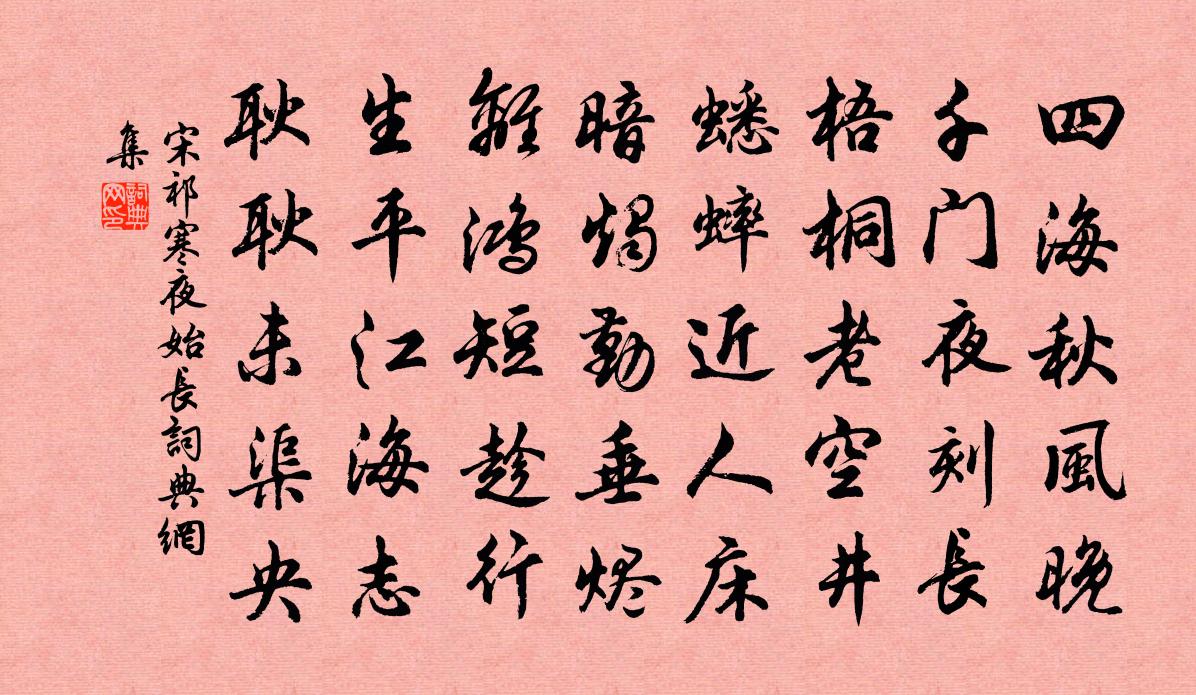四海秋風晚,千門夜刻長。梧桐老空井,蟋蟀近人床。