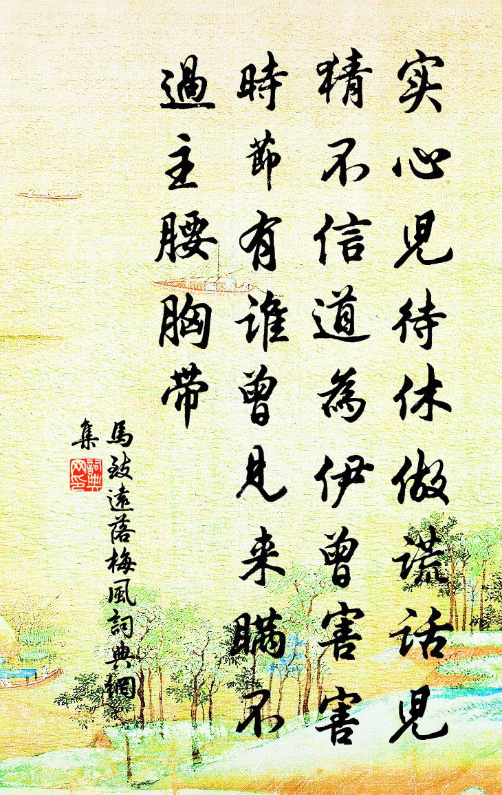 實心兒待,休做謊話兒猜。不信道為伊曾害。