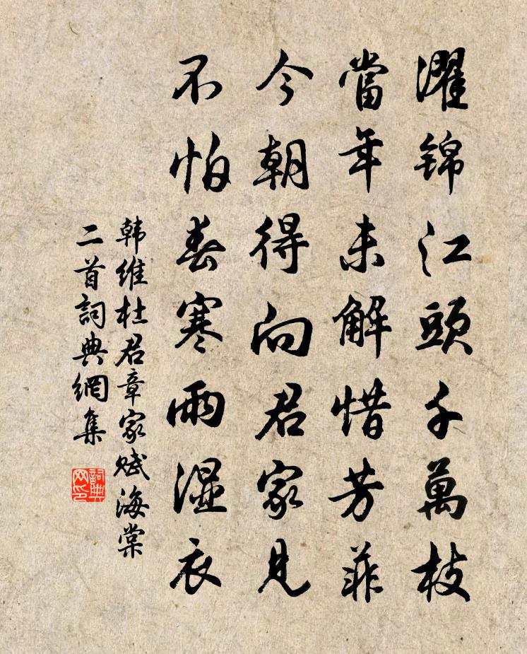- 記年時、舊宿淒涼,暮煙秋雨野橋寒。