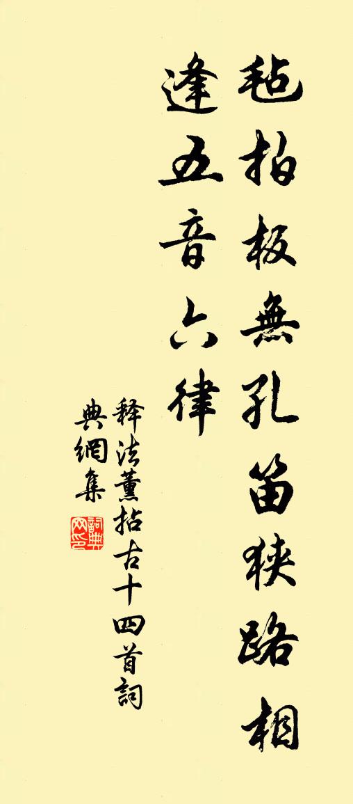 詩詞名句歷史字典書法欣賞書法字典國語詞典說文解字康熙字典古漢語字典標 題 作 者 詩 句 拈古十四首作者:釋法薰 朝代:宋代拈古十四首原文氈拍板,無孔笛。狹路相逢,五音六律。詩詞問答問:拈古十四首的作者是誰?答:釋法薰問:拈古十四首寫於哪個朝代?答:宋代釋法薰拈古十四首書法欣賞拈古十四首書法作品詩詞推薦題瑩上人二畫右剡溪陸游〔宋代〕天地又秋風,溪山憶剡中。孤舟幸閒著,借我訪支公。贈別二首柳郴〔唐代〕江浦程千里,離尊淚數行。無論吳與楚,俱是客他鄉。何處最悲辛,長亭臨古津。往來舟楫路,前後別離人。梅江晚泛二首蔡蒙古〔宋代〕罷讀出江岸,江波滾滾來。呼舟閒打槳,載月二更回。贈任城盧主簿李白〔唐代〕海鳥知天風,竄身魯門東。臨觴不能飲,矯翼思凌空。鐘鼓不為樂,煙霜誰與同。歸飛未忍去,流淚謝鴛鴻。雜興五首艾性夫〔宋代〕蟻國槐為穴,蜂衙蜜作房。採花與旋磨,辛苦知尊王。胡為梟獍生,思食父母腸。彼微有尊卑,此大相滅亡。物情和尹少稷經乾王洋〔宋代〕昔年初見君,山頭日卓午。但言奉親歡,不道作計苦。稍稍窺藩籬,清風滌袢暑。論文及古人,一笑乃相許。早知題白雲堂陳田夫〔宋代〕我愛瀟湘境,朱陵後洞天。白雲堂里客,青草渡頭眠。小艇牽紅鯉,幽池種白蓮。頤真堪此地,風月兩依然。秋末圭竇齋前菊盛開賦得絕句時秬出未歸張耒〔宋代〕幽齋誰與破窮愁,蜀錦當軒爛不收。白帝屬車千萬乘,玉輪金轂照清秋。子夜歌 一蕭衍〔南北朝〕恃愛如欲進。含羞未肯前。朱口發艷歌。玉指弄嬌弦。醉舞陸游〔宋代〕短帽篸花舞道傍,年垂八十尚清狂。茸茸胎髮朝盈櫛,炯炯神光夕照梁。令尹閱人三仕巳,太山在我一豪芒。藥苗偈頌十三首釋智遇〔宋代〕居必擇鄰,鑒非止水。明暗相凌,言猶在耳。送盧秀才游潞府賈島〔唐代〕雨餘滋潤在,風不起塵沙。邊日寡文思,送君吟月華。過山乾相府,臨水宿僧家。能賦焉長屈,芳春宴杏花。城鹽州-美聖謨而誚邊將也(貞元壬申歲,特詔城之)白居易〔唐代〕城鹽州,城鹽州,城在五原原上頭。蕃東節度缽闡布,忽見新城當要路。金鳥飛傳贊普聞,建牙傳箭集群臣。君臣奉和御製會慶殿宴夏竦〔宋代〕禁門乘曉會,宴豆示慈伸。激水龍騰久,儀韶鳳降頻。雲章流漢築,衢酒洽堯民。百辟皆星拱,兢兢奉北辰。喜洪君疇除工侍內制劉克莊〔宋代〕熱官不拜意何如,詔改冬卿眷禮殊。保晚節香似公少,問今日愈造朝無。儒紳易以黃金帶,宮錦加諸白布襦。直待偈頌七首釋思岳〔宋代〕世尊不說一個字,大藏小藏從此出。達磨九年面壁來,得皮得髓分優劣。孝宗皇帝靈駕發引詩蔡戡〔宋代〕歷數承堯禪,謳歌戴舜仁。規模自寵遠,法度謹持循。儉約身先下,憂勤志在民。萬方無以報,雨泣但沾巾。偈頌七十六首釋子益〔宋代〕行不到處行一步,說不到處道一句。徑山諸公見義勇為,靈隱師伯拔劍相助。和張秘丞燈夕韻四首劉克莊〔宋代〕牧守二期方奉計,末期君已得民和。不愁米送官倉少,但怪蓮開陸地多。座客共沾眉壽酒,廄人預戒早朝珂。諸公石孝立輓詞馮時行〔宋代〕斯人已矣舟移壑,惆悵九原誰可作。靈光長與孤月孤,幻化偶隨落葉落。人間好事平生有,留得芬香傳萬口。楊侯名句推薦梅子黃時日日晴,小溪泛盡卻山行曾幾《三衢道中》 賢達哀樂,不在窮通禍福之間。脫脫《遼史·列傳·卷三十四》 清明時節雨紛紛,路上行人慾斷魂。杜牧《清明》 舊苑荒台楊柳新,菱歌清唱不勝春。李白《蘇台覽古》 騷屑西風弄晚寒,翠袖倚闌乾。納蘭性德《眼兒媚·詠紅姑娘》 龍馬花雪毛,金鞍五陵豪。李白《白馬篇》 柳垂江上影,梅謝雪中枝。晏幾道《臨江仙·身外閒愁空滿》 黃花本是無情物,也共先生晚節香。于謙《過菊江亭》 大江東去,浪淘盡,千古風流人物。蘇軾《念奴嬌·赤壁懷古》 自笑好山如好色,只今懷樹更懷人。閒愁閒恨一番新。辛棄疾《浣溪沙·偕叔高子似宿山寺戲作》
