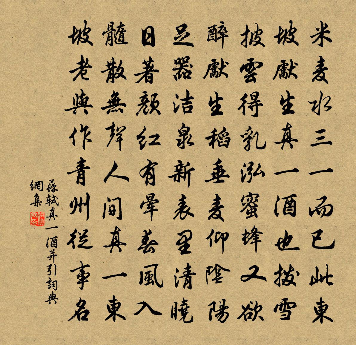 米、麥、水三一而已,此東坡先生真一酒也。撥雪披雲得乳泓,蜜蜂又欲醉先生。