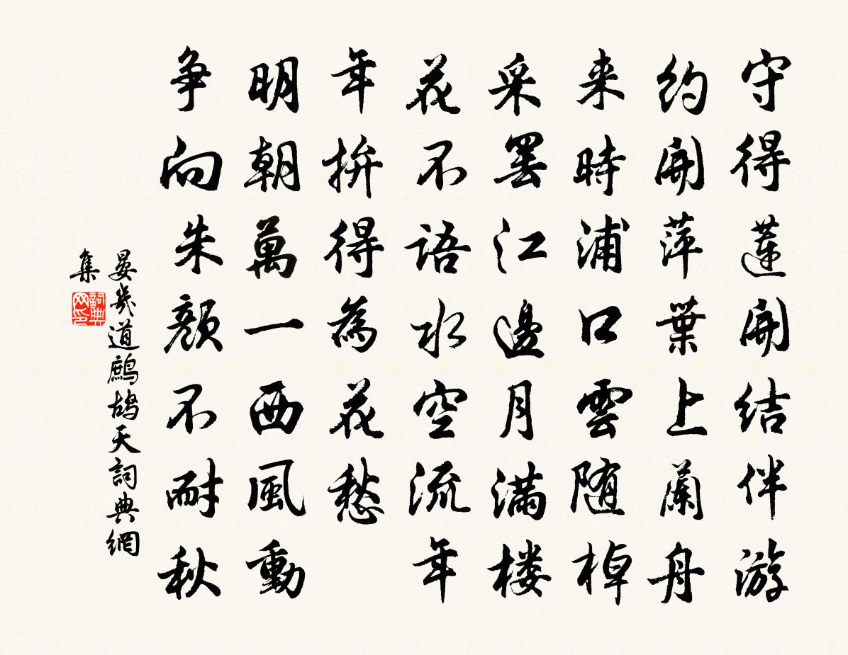 劉時中〔元代〕微風不定,幽香成徑,紅雲十里波千頃。綺羅馨,管弦清,蘭舟直入空明鏡。碧天夜涼秋月冷。天,湖外影;湖,