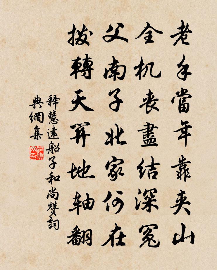 詩詞名句歷史字典書法欣賞書法字典國語詞典說文解字康熙字典古漢語字典標 題 作 者 詩 句 船子和尚贊作者:釋慧遠 朝代:宋代船子和尚贊原文老手當年靠夾山,全機喪盡結深冤。父南子北家何在,撥轉天關地軸翻。詩詞問答問:船子和尚贊的作者是誰?答:釋慧遠問:船子和尚贊寫於哪個朝代?答:宋代釋慧遠船子和尚贊書法欣賞船子和尚贊書法作品詩詞推薦赴信幕寄子云叔?及同寺韓元吉〔宋代〕謝三船上醉同歸,黃四花邊手屢攜。巷裡何曾異南北,屋頭還復記東西。一杯相屬情猶在,千里分飛意自迷。堂下州名詩范雲〔南北朝〕司春命初鐸。青耦肆中樊。逸豫誠何事。稻粱復宜敦。徐步遵廣隰。冀以寫憂源。楊柳垂場圃。荊棘生庭門。交情秋燕司空圖〔唐代〕從撲香塵拂面飛,憐渠只為解相依。經冬好近深爐暖,何必千岩萬水歸?經春長在幕府今日偶出見花強至〔宋代〕幕府文書日日同,愧無長策議平戎。但驚蓬鬢看雙白,不覺花枝已半紅。宦意蹉跎侵晚景,客愁散漫逐春風。古人晚泊烽火磯董嗣杲〔宋代〕野陰遠閣雪風乾,向暮維舟水色寒。火號熒熒今夜燭,因知江北報平安。和丁使君惠贈姜特立〔宋代〕杜老才高筆有神,卻夸庾信句清新。方慚愧女依西子,更覺常星望北辰。眼底向來無作者,世間此去有詩人。交情寄友趙處澹〔宋代〕誰謂相去遠,盈盈一水間。欲渡無津梁,中情何由殫。秋懷多感慨,撫衿起長嘆。岩風墮朝露,輕雲冒遙山。群芳發金陵折柳亭二首張耒〔宋代〕綠袞溶溶日,紅飛寂寂春。青山今古事,芳草去來人。歌吹酒家市,帆檣賈客津。誰雲絕勝地,登眺更傷神。寄謝晏尚書二絕歐陽修〔宋代〕送盡殘春始到家,主人愛客不須嗟。紅泥煮酒嘗青杏,猶向臨流藉落花。鷓鴣天張鎡〔宋代〕御路東風拂翠衣。賣燈人散燭籠稀。不知月底梅花冷,只憶橋邊步襪歸。閒夢淡,舊遊非。夜深誰在小簾幃。罘罳寄玉溪林逢吉六首戴復古〔宋代〕經年不見玉溪翁,百里江山萬里同。無計相從話心曲,時揮一紙寄西風。酷熱釋智圓〔宋代〕酷熱如小人,到處苦相侵。清風如君子,時來寬我心。酷熱驅不去,清風留不住。此情無以訴,吟傍陰陰樹。留題峽州甘泉寺(姜詩故居)蘇軾〔宋代〕輕舟橫江來,弔古悲純孝。逶迤尋遠跡,婉孌見遺貌。清泉不可挹,涸盡空石窖。古人飄何之,惟有風竹鬧。行行宿白鷺洲寄楊江寧李白〔唐代〕朝別朱雀門,暮棲白鷺洲。波光搖海月,星影入城樓。望美金陵宰,如思瓊樹憂。徒令魂入夢,翻覺夜成秋。綠水回鸞閣寫望張喬〔唐代〕古閣上空半,寥寥千里心。多年為客路,盡日倚欄吟。山壓秦川重,河來虜塞深。迴鑾今不見,煙霧杳沉沉。送景仁至於正臣園寄主人司馬光〔宋代〕客到暫開扃,春蕪人生滿庭。主人殊不顧,修竹為誰青。月下聞桂花陳起〔宋代〕一庭人靜月當空,桂不多花細細風。香露滴衣涼似水,恍然移下廣寒宮。老病六言十首呈竹溪劉克莊〔宋代〕昔似子期善聽,今如祈父不總。怕有學人問話,向道老僧害聾。送項聖與詣太常楊萬里〔宋代〕盧溪書院一番新,千里學子來如雲。天教書院名日起,速化先從主人始。主人主盟為阿誰,楚漢名家今項斯。胸中送表弟方時父劉克莊〔宋代〕棄置空村飽世情,高軒乃肯顧柴荊。韓甥殷浩貧親戚,李益盧綸外弟兄。兩鬢蕭疏驚老大,一燈明滅話平生。刺桐名句推薦今年春淺臘侵年。冰雪破春妍。蘇軾《一叢花·今年春淺侵年》 堂前撲棗任西鄰,無食無兒一婦人。杜甫《又呈吳郎》 大丈夫處其厚,不居其薄;處其實,不居其華。老子《老子·德經·第三十八章》 漠漠秋雲起,稍稍夜寒生。白居易《微雨夜行》 滄江好煙月,門系釣魚船。杜牧《旅宿》 看風流慷慨,談笑過殘年辛棄疾《八聲甘州·故將軍飲罷夜歸來》 胡未滅,鬢先秋。淚空流。陸游《訴衷情·當年萬里覓封侯》 思其艱以圖其易佚名《尚書·周書·君牙》 且就洞庭賒月色,將船買酒白雲邊。李白《游洞庭湖五首·其二》 台榭空濛煙柳暗,白鳥銜魚欲舞。納蘭性德《摸魚兒·午日雨眺》