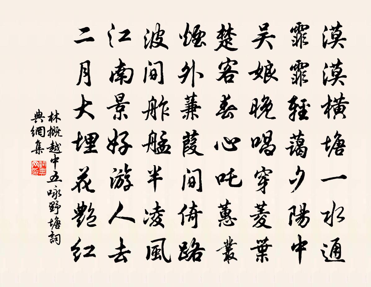 詩詞名句歷史字典書法欣賞書法字典國語詞典說文解字康熙字典古漢語字典標 題 作 者 詩 句 越中五詠野塘作者:林概 朝代:宋代越中五詠野塘原文漠漠橫塘一水通,霏霏輕藹夕陽中。吳娘晚唱穿菱葉,楚客春心吒蕙叢。煙外蒹葭間倚路,波間舴艋半凌風。江南景好遊人去,二月大埋花艷紅。詩詞問答問:越中五詠野塘的作者是誰?答:林概問:越中五詠野塘寫於哪個朝代?答:宋代林概越中五詠野塘書法欣賞越中五詠野塘書法作品詩詞推薦秋聲有懷寄副翰宋白舍人四錫〔宋代〕秋聲蕭瑟北山椒,賴有琴樽遣寂寥。書幌靜憐斜月鑒,窗燈寒帶落花挑。久辭知己來江國,少寄音書過海潮。因想偶作二首趙蕃〔宋代〕舊箑已成揮,還披御臘衣。乘除因人事,變化亦天機。道路飄零久,形容少壯非。無徒微祿眷,長與故人違。玉津園餞魏王胡銓〔宋代〕餞行朱邸帝城春,隨例顛忙宴玉津。報國獨勞千一慮,鈞天同聽十三人。金卮宣勸君恩重,花露湔愁醉夢真。卻憶謁金門盧祖皋〔宋代〕寒半退。斜掩小屏珠翠。柳眼才醒桃欲醉。日高簾影碎。暗解鴛鴦羅帶。獨立晚風誰會。心事悠悠人好在。畫橋流游洪山館張埴〔宋代〕山行成興盡,泥飲得情親。五月瓜盤美,殊鄉雨話真。青雲生此屋,白髮長吾人。闌外浮圖立,堂堂似上賓。宮詞四首李邴〔宋代〕舞袖何年絡臂韝,蛛絲網斷玉搔頭。羊車一去空餘竹,紈扇相看不到秋。漁父歌高適〔唐代〕曲岸深潭一山叟,駐眼看鉤不移手。世人慾得知姓名,良久問他不開口。筍皮笠子荷葉衣,心無所營守釣磯。料得竹枝白居易〔唐代〕江畔誰家唱竹枝,前聲斷咽後聲遲。怪來調苦緣詞苦,多是通州司馬詩。戲同小兒作望南京內門張耒〔宋代〕別都制度擬王畿,雙闕迢嶢望太微。萬乘旗常難望幸,九天樓觀自相輝。百年龍虎興王氣,萬雉金湯卻敵威。一夢盤墅登三清閣黃由〔宋代〕才到松陵即是家,三清閣下寂無嘩。小臣愧乏絲毫報,深炷爐香靜點茶。頌一百則釋重顯〔宋代〕盡大地是藥,古今何太錯。閉門不造車,通途自寥廓。錯錯,鼻孔遼天亦穿卻。浯溪鄭谷〔唐代〕湛湛清江疊疊山,白雲白鳥在其間。漁翁醉睡又醒睡,誰道皇天最惜閒。洛陽春吟邵雍〔宋代〕用盡四時周一歲,唯春能見好花開。十千買酒未為貴,既去紅芳豈再來。鵲橋仙(留題安福劉氏園)趙善括〔宋代〕花腮百媚,柳絲千尺,密影金鋪碎日。過雲微雨報清明,半天外、煙嬌霧濕。當歌有恨,問春無語,笑我如何久客西溪曲楊維楨〔元代〕西溪溪口東岡道,楊柳陰陰春欲老。花間系馬我曾來,紅雨傷春跡如掃。美人勸我金色漿,玉台贈以盤龍寶。願作駕幸新豐溫泉宮,獻詩三首上官昭容〔唐代〕三冬季月景龍年,萬乘觀風出灞川。遙看電躍龍為馬,回矚霜原玉作田。鸞旂掣曳拂空回,羽騎驂驔躡景來。隱隱至日建中次季真韻胡一桂〔宋代〕盡日勞勞煙雨里,此行誰識是歟非。翩然芒屩相隨處,正見梅花欲放時。太極便堪窺易蘊,黃鐘初可驗葭飛。天心維揚即事張蘊〔宋代〕茅屋蘆門前市坊,居民無事亦軍裝。愁來莫上城頭望,西北浮雲接太陽。次韻謝心老以緣事至魯山陳與義〔宋代〕禪師瓶貯幾多空,欲問以書無去鴻。魯縣人迎波若杖,天寧樹起吉祥風。荒山春色篇章里,快士交情筆硯中。一日吊白居易李忱〔唐代〕綴玉聯珠六十年,誰教冥路作詩仙。浮雲不系名居易,造化無為字樂天。童子解吟長恨曲,胡兒能唱琵琶篇。文章名句推薦去年米貴闕軍食,今年米賤大傷農。杜甫《歲晏行》 谷不熟為飢,蔬不熟為饉,果不熟為荒,仍飢為薦。佚名《爾雅·釋天》 士有妒友,則賢交不親;君有妒臣,則賢人不至。荀子《荀子·大略》 新竹高於舊竹枝,全憑老乾為扶持。鄭燮《新竹》 成事不說,遂事不諫,既往不咎。孔子弟子《論語·八佾篇》 富貴必從勤苦得,男兒須讀五車書。杜甫《柏學士茅屋》 秋色雁聲愁幾許,都在斜陽。吳文英《浪淘沙·九日從吳見山覓酒》 三更月。中庭恰照梨花雪。賀鑄《子夜歌·三更月》 鳳簫聲動,玉壺光轉,一夜魚龍舞。辛棄疾《青玉案·元夕》 想翠竹、碧梧風采,舊遊何處。張寧《滿江紅·題碧梧翠竹送李陽春》