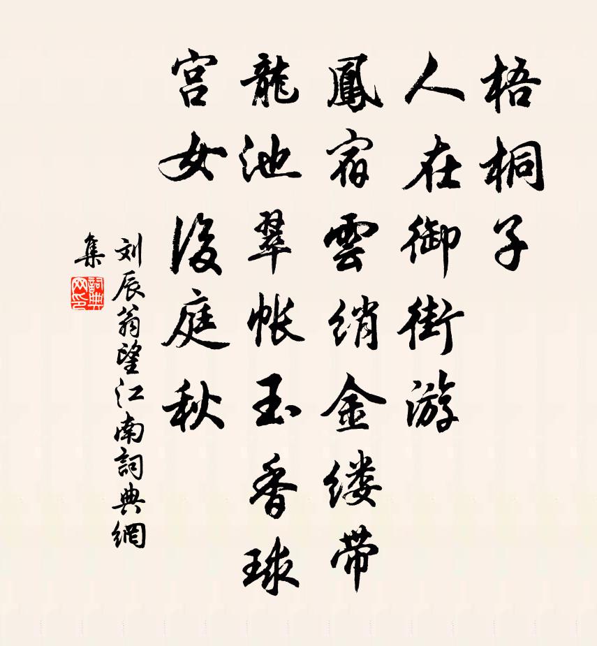 梧桐子,人在御街游。鳳宿雲綃金縷帶,龍池翠帳玉香球。宮女後庭秋。
