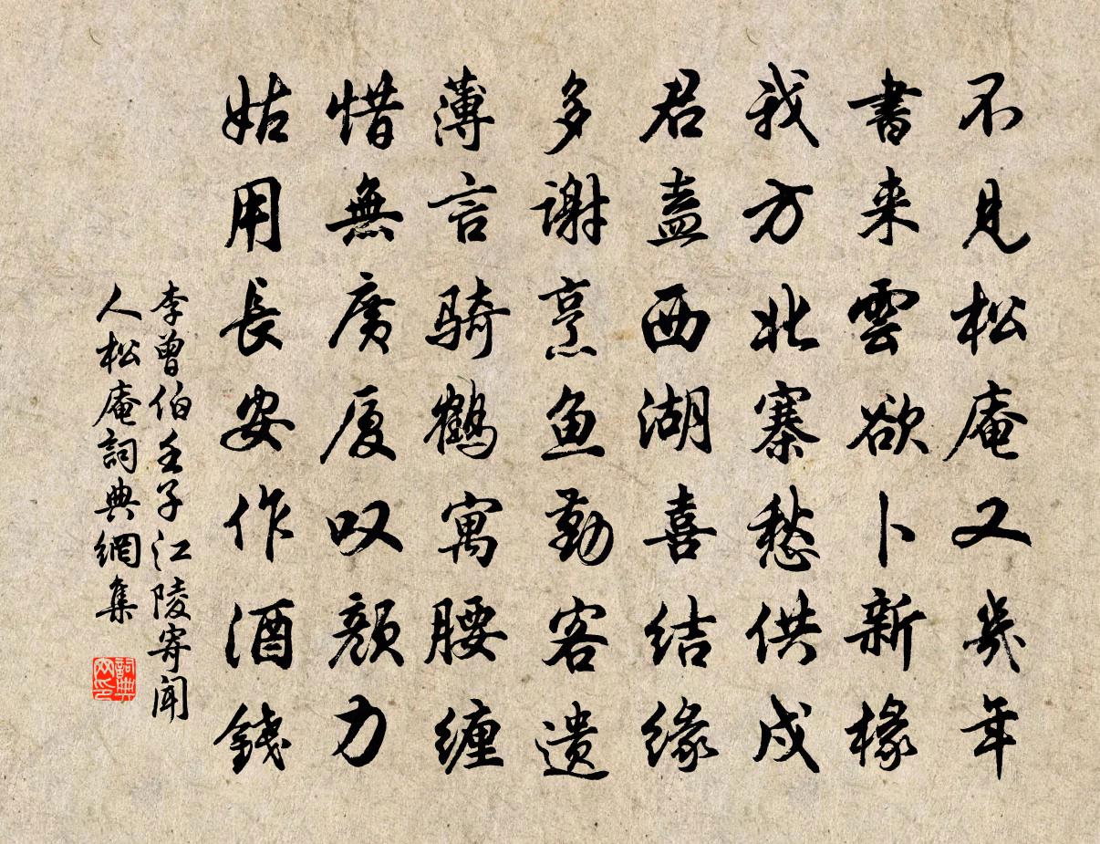 詩詞名句歷史字典書法欣賞書法字典國語詞典說文解字康熙字典古漢語字典標 題 作 者 詩 句 壬子江陵寄聞人松庵作者:李曾伯 朝代:宋代壬子江陵寄聞人松庵原文不見松庵又幾年,書來雲欲卜新椽。我方北寨愁供戍,君盍西湖喜結緣。多謝烹魚勤客遺,薄言騎鶴寓腰纏。惜無廣廈嘆顏力,姑用長安作酒錢。詩詞問答問:壬子江陵寄聞人松庵的作者是誰?答:李曾伯問:壬子江陵寄聞人松庵寫於哪個朝代?答:宋代李曾伯壬子江陵寄聞人松庵書法欣賞壬子江陵寄聞人松庵書法作品詩詞推薦諸公載酒賀余休致水村農卿有詩次韻劉克莊〔宋代〕聃書深遠絕難窺,止足書中向上機。但看杖扶博山入,不知扇賜曲江歸。年飢方慮溝中瘠,旰食慾令天下肥。念此西叔兄生日魏了翁〔宋代〕只把農功作己憂,不將歲事與天謀。官修事舉文書靜,一室高眠粥似稠。懷廬山舊隱若虛〔唐代〕九疊嵯峨倚著天,悔隨寒瀑下岩煙。深秋猿鳥來心上,夜靜松杉到眼前。書架想遭苔蘚裹,石窗應被薜蘿纏。一枝讀金鑾密記劉克莊〔宋代〕仗下千官走似麇,倉皇誰扈屬車塵。禁中陸九艱危共,殿上朱三苦死嗔。當日橫身抗岐汴,暮年避地客甌閩。小窗自桃川至辰州絕句四十有二趙蕃〔宋代〕一春多雨慧當慳,今歲還防似去年。玉曆檢來知小滿,又愁陰久礙蠶眠。太湖詩練瀆(吳王所開)皮日休〔唐代〕吳王厭得國,所玩終不足。一上姑蘇台,猶自嫌侷促。艅艎六宮鬧,艨沖後軍肅。一陣水麝風,空中蕩平淥。鳥困將入靖州界適值肩吾生日為詩以壽之魏了翁〔宋代〕道亨初不關窮達,身健何須問去留。但原王明天地泰,此竹長共國同休。送邢大聲宏音二首趙蕃〔宋代〕不獨論新昏,晏晁原老親。見來能幾日,別去忽今晨。新地無遷賈,明時豈避秦。長沙武陵地,行樂異傷神。廉頗徐鈞〔宋代〕遺矢讒言棄老成,肉多飯健尚精神。可憐一點狐丘志,到死猶能用趙臣。奉使契丹二十八首其二十四次韻張耒學士病中蘇轍〔宋代〕塵垢污人朝復朝,病中吟嘯夜方遙。長空雁過疑相答,虛幌螢飛坐恐燒。稍覺新霜試松竹,未應寒雨敗梧蕉。從來仁宗皇帝輓詞五首王珪〔唐代〕忽覺宮車晚,乘雲御帝鄉。空餘群玉殿,不奏萬年觴。白髮孤臣淚,黃塵九陌荒。返虞歌未斷,陵柏已蒼蒼。擬水西寺東峰亭九詠幽徑石梅堯臣〔宋代〕緣溪去欲遠,磊砢忽礙行。旁臨側身險,下忽寒流聲。幽客慣來往,同此猿鳥情。再賦錢惟演〔宋代〕玉甃引清泉,風高露白天。盈盈臨一水,羃羃隔長煙。已分蘭芝溺,仍憂趙後仙。鮫絲衣更密,珠蚌淚長圓。瑟怨除夕方岳〔宋代〕短髮蕭蕭老侍祠,夜壇三上華封辭。皇儲天啟重輪日,帝座春環萬壽卮。材具不供當世用,林居亦望太平時。羽衣三姝媚(姜石帚館水磨方氏,會飲總宜堂,即事寄毛荷塘)吳文英〔宋代〕酣春青鏡里。照晴波明眸,暮雲愁髻。半綠垂絲,正楚腰纖瘦,舞衣初試。燕客飄零,煙樹冷、青驄曾系。畫館朱漁家傲引/漁家傲洪适〔宋代〕七月凜秋飛葉響。長吟杳杳澄江上。禿尾槎頭添一網。絲自紡。新炊菰飯更相餉。渡口青煙藏疊嶂。岸旁紅蓼翻輕義榮見示禪月山居詩盥讀數過六根洒然但余素鄭剛中〔宋代〕不曾貪進不曾休,俯仰人間今白頭。一切有為皆妄幻,十方無礙足浮游。誰言學佛須披衲,頗笑求仙唯造樓。只有即席王安石〔宋代〕曲沼融融泮盡澌,暖煙籠瓦碧參差。人情共恨春猶淺,不問寒梅有幾枝。即事中元甲子(一作韋莊詩)羅隱〔唐代〕三秦流血已成川,塞上黃雲戰馬閒。只有羸兵填渭水,終無奇事出商山。田園已沒紅塵內,弟侄相逢 * 間。惆悵送韓廷評婺州市征宋祁〔宋代〕去程菸草妬藍袍,越絕天文寶婺高。五兩樵風船畫鷁,九秋犀燭鷺翻濤。吳監煮海通關賦,陸橐收金析利毫。仙酎名句推薦晴浦晚風寒,青山玉骨瘦。董以寧《卜運算元·雪江晴月(回文,倒讀《巫山一段雲》 不信妾斷腸,歸來看取明鏡前。李白《長相思·其二》 尊長前,聲要低。低不聞,卻非宜。李毓秀《弟子規·出則弟》 事莫貴乎有驗,言莫棄乎無徴。徐幹《中論·上卷·貴驗》 解落三秋葉,能開二月花。李嶠《風》 去年戰桑乾源,今年戰蔥河道。李白《戰城南》 情同而親合,親合而事生之。姜子牙《六韜·文韜·文師》 白日何短短,百年苦易滿。李白《短歌行》 黃蘆掩映清江下,斜纜著釣魚艖。關漢卿《大德歌·冬景》 使能,國之利也。左丘明《左傳·文公·文公六年》