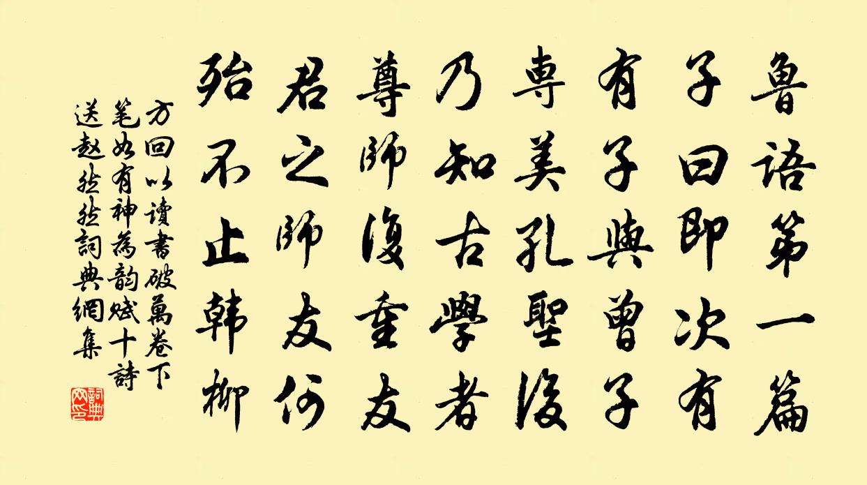 詩詞名句歷史字典書法欣賞書法字典國語詞典說文解字康熙字典古漢語字典標 題 作 者 詩 句 以讀書破萬卷下筆如有神為韻賦十詩送趙然然作者:方回 朝代:宋代原文魯語第一篇,子曰即次有。有子與曾子,專美孔聖后。乃知古學者,尊師復重友。君之師友何,殆不止韓柳。詩詞問答問:《以讀書破萬卷下筆如有神為韻賦十詩送趙然然》的作者是誰?答:方回問:該詩寫於哪個朝代?答:宋代書法欣賞以讀書破萬卷下筆如有神為韻賦十詩送趙然然書法作品詩文賞析【原題】:以讀書破萬卷下筆如有神為韻賦十詩送趙然然如大都詩詞推薦絕句呂希哲〔宋代〕老讀文收興易闌,須知養病不如閒。行林瓦枕虛堂上,臥看江南雨後山。補周禮九夏系文。九夏歌九篇皮日休〔唐代〕(王夏之歌者,王出入之所奏也。四章,章四句)爣爣皎日,欻麗於天。厥明御舒,如王出焉。爣爣皎日,欻入於送從弟游江淮兼謁鄱陽劉太守李頎〔唐代〕都門柳色朝朝新,念爾今為江上人。穆陵關帶清風遠,彭蠡湖連芳草春。泊舟借問西林寺,曉聽猿聲在山翠,潯陽淳化鄉飲酒三十三章佚名〔宋代〕鹿鳴相應,聚山之荊。我燕嘉賓,鼓簧吹笙。我命旨酒,以逢以迎。何以薦之,揚於王庭。曉過丹陽縣五首楊萬里〔宋代〕水從常潤路都迷,曲曲長河曲曲堤。不是兩窗供日腳,更無南北與東西。奉和翰林諸公賀閣長李公領銀台之什楊億〔宋代〕西漢公車主上章,官曹秘邃接明光。天書時草鳳皇詔,邊奏親開赤白囊。咫尺青規頻借筯,離披金蕊阻飛觴。瀛洲山中寄凝密大師兄弟齊己〔唐代〕一爐薪盡室空然,萬象何妨在眼前。時有興來還覓句,已無心去即安禪。山門影落秋風樹,水國光凝夕照天。借問哭?十五章辛棄疾〔宋代〕汝父誠有罪,汝母孝且慈。獨不為母計,倉皇去何之。瑞鶴仙(賦紅梅)史達祖〔宋代〕館娃春睡起。為發妝酒暖,臉霞輕膩。冰霜一生里。厭從來冷澹,粉腮重洗。胭脂暗試。便無限、芳穠氣味。向黃放鷹白居易〔唐代〕十月鷹出籠,草枯雉兔肥。下鞲隨指顧,百擲無一遺。鷹翅疾如風,鷹爪利如錐。本為鳥所設,今為人所資。孰能題傅侍郎寒碧十五韻宜月陳宓〔宋代〕海底初上時,柳末清光發。滿窗璠歟映,我胸中月地。琵琶亭葉桂女〔宋代〕樂天當日最多情,滬滴青衫酒重傾。明月滿船無處間,不聞商衣琵琶聲。次韻酬趙寶學林季仲〔宋代〕高軒曾過我柴關,笑看莓苔滿地斑。隱約誰惟許居士,風流得倚謝東山。詩鏘金石音尤古,筆走龍蛇意自閒。後日書懷釋文珦〔宋代〕寢時忘夢覺忘形,惟覺無心最可憑。只作秋空雲一片,內行教乘倫自消凝。和汪正夫梅鄭獬〔宋代〕座中豪客洛陽才,醉舞春風拂袖來。明日卻尋歌管地,中庭空有折殘梅。入關因別舍弟杜荀鶴〔唐代〕吾今別汝汝聽言,去住人情足可安。百口度荒均食易,數年經亂保家難。莫愁寒族無人薦,但願春官把卷看。天道文峰夜飲三首錢時〔宋代〕溪山回首昔人非,剩喜文峰擁翠微。尊俎笑談春滿院,不辭和月夜深歸。偈頌一百三十六首釋惟一〔宋代〕函蓋乾坤句,隨波逐浪句,截斷眾流句,三句盡在此。不多一字,不少一字。眾眼難瞞,分明舉似。李隱卿名谷與青城劉翁同舟至蘭溪卿大夫修生蘇籀〔宋代〕白公枉識郭虛舟,劉李飛符袒劍裘。興軼壺中身混世,氣酣酒晨意橫秋。運調朱鳳啄白石,耕蒔金錢掣牯牛。赤子送襄陽從事李友諒歸錢塘蘇軾〔宋代〕居杭花積五歲,花自意本杭花人。故山花歸無家,欲卜西湖鄰。良田不難買,靜士誰當親。髯張既超然,老潛亦絕名句推薦男兒何不帶吳鉤,收取關山五十州。李賀《南園十三首·其五》 我居北海君南海,寄雁傳書謝不能。黃庭堅《寄黃幾復》 墦間人散後,烏鳥正西東。范成大《清明日狸渡道中》 寒笛對京口,故人在襄陽。劉昚虛《暮秋揚子江寄孟浩然》 元嘉草草,封狼居胥,贏得倉皇北顧。辛棄疾《永遇樂·京口北固亭懷古》 垂釣板橋東,雪壓蓑衣冷。釋敬安《題寒江釣雪圖》 犬吠水聲中,桃花帶露濃。李白《訪戴天山道士不遇》 見善如不及,見不善如探湯孔子弟子《論語·季氏篇》 日落沙明天倒開,波搖石動水縈迴李白《東魯門泛舟二首》 龍魚失水難為用,龜玉蒙塵未見珍牟融《春日山亭》