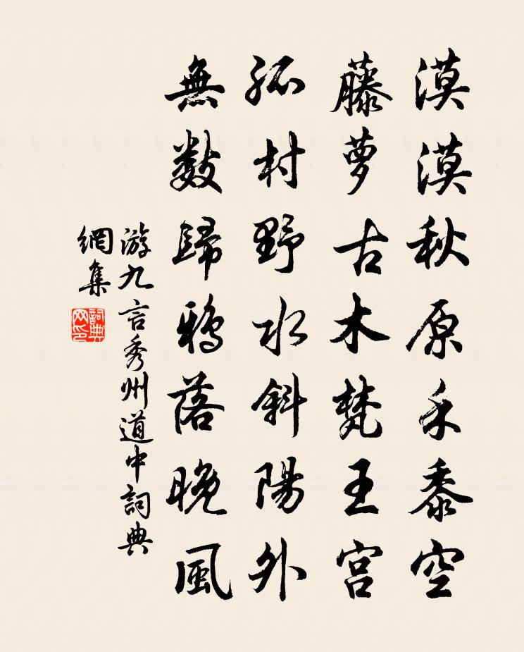 詩詞名句歷史字典書法欣賞書法字典國語詞典說文解字康熙字典古漢語字典標 題 作 者 詩 句 秀州道中作者:游九言 朝代:宋代秀州道中原文漠漠秋原禾黍空,藤蘿古木梵王宮。孤村野水斜陽外,無數歸鴉落晚風。詩詞問答問:秀州道中的作者是誰?答:游九言問:秀州道中寫於哪個朝代?答:宋代游九言秀州道中書法欣賞秀州道中書法作品詩詞推薦又和南塘十首劉克莊〔宋代〕聚群雷乍喊,乘暗月初斜。至黠穿懷袖,雖微具爪牙。麈揮那肯去,扇障不能庶。近水尤喧聒,殊妨賞藕花。浣溪沙毛滂〔宋代〕竹送秋聲入小窗。香迷夜色暗牙床。小屏風掩燭花長。雁過故人無信息,酒醒殘夢寄淒涼。畫橋露月冷鴛鴦。於中好楊無咎〔宋代〕梅花摘索穿疏竹。蔭紋禽、喜歡相逐。坐中已自清堪掬。更瀟灑、人如玉。新聲愛度周郎曲。捧霞杯、再三相囑。邵陵作張謂〔唐代〕嘗聞虞帝苦憂人,只為蒼生不為身。已道一朝辭北闕,何須五月更南巡。昔時文武皆銷鑠,今日精靈常寂寞。斑竹送侯寺丞知鞏縣梅堯臣〔宋代〕伊洛合河流,正臨歸鞏路。崖壁人畏崩,芹泥岸長固。山回邑郭見,馬入雲煙暮。宰茲雖所淹,況與鄉黨附。送察院李侍御使廬陵因寄孟員外徐鉉〔唐代〕繡衣乘驛急如星,山水何妨寄野情。肯向九仙台下歇,閒聽孟叟醉吟聲。東陽夜怪詩(盧倚馬寄同侶二首)佚名〔唐代〕長安城東洛陽道,車輪不息塵浩浩。爭利貪前競著鞭,相逢儘是塵中老。日晚長川不計程,離群獨步不能鳴。賴有和曾谹父春半書懷王洋〔宋代〕敲火開香焙,書齋思漸清。田翁新社長,巢燕舊門生。學僻詩無味,心開語見情。不愁無樂事,正與物俱榮。高岩立春日王世則〔宋代〕二年白玉堂,揮翰供貼子。風生起草台,墨照澄心紙。三年文昌省,拜賜近天咫。紅蓼朌御盤,金幡裊宮蕊。晚為古別離陸游〔宋代〕君北游司並,我南適熊湘,邂逅淮陰市,共飲官道傍。丈夫各有懷,窮達詎可量;臨別一取醉,浩歌神激揚。勳業雨花台張榘〔宋代〕莫說南朝勝概繁,祗今近郭已江村。台荒浪紀曼花墜,事往空餘古意存。甌缺正緣輕納景,鼎分誰謂不如孫。滔滔戒五辛頌釋遵式〔宋代〕五辛佛所說,障道定無疑。梵網招輕垢,楞伽損大慈。人天猶尚失,淨土固難期。生啖增瞋念,熟食發淫思。講經鸚鵡洲即事(一作眺望)崔塗〔唐代〕悵望春襟郁未開,重吟鸚鵡益堪哀。曹瞞尚不能容物,黃祖何曾解愛才。幽島暖聞燕雁去,曉江晴覺蜀波來。何人喜雨用知宗韻呈陳丞相李洪〔宋代〕旱意初憂病圃場,霈然甘澤起羸尪。穹蒼既格由孚信,德教從來本抑強。再熟言觀競藨袞,千倉千見詠豐穰。帝虛梅四首劉鑒〔宋代〕天花夜半落溪傍,傍有獰然為取將。擎爪仰空吾潔白,掀髯倒地覓昏黃。修鱗月下霜同色,敗甲風前雪有香。欲起夜警趙濟〔宋代〕滿城警柝喧深夜,半壁青燈動客心。烽火未除眠不得,欲將長劍倚危岑。白珪無玷辛宏〔唐代〕片玉表堅貞,逢時寶自呈。色鮮同雪白,光潤奪冰清。皎皎無瑕玷,鏘鏘有珮聲。崑山標重價,垂棘振香名。抱璞偈頌一百零一首釋慧性〔宋代〕主中賓,賓中主,南山大蟲元是虎。踢起眉毛著眼看,閃電光中急薦取,發機須是千鈞弩。昌老號竹溪釋智愚〔宋代〕疏疏綠影釀寒清,高節虛心久得名。不見月明流水處,好風時引鳳雛聲。寄顧次岳五首許月卿〔宋代〕韋齋井畔通宵月,流出文公闕里心。半夜起來湖瑩玉,明朝應有柳搖金。萬壑正看天地肅,一樓坐斷水雲岑。鏡湖名句推薦學者不患才之不贍,而患志之不立。徐幹《中論·上卷·治學》 遼東小婦年十五,慣彈琵琶解歌舞。李頎《古意》 短綆不可以汲深井之泉,知不幾者不可與及聖人之言。荀子《荀子·榮辱》 欲買桂花同載酒,終不似,少年游。劉過《唐多令·蘆葉滿汀洲》 焚琴煮鶴從來有,惜玉憐香幾個知!馮夢龍《醒世恆言·卷三》 西城楊柳弄春柔。動離憂。淚難收。秦觀《江城子·西城楊柳弄春柔》 漁父天寒網罟凍,莫徭射雁鳴桑弓。杜甫《歲晏行》 淒涼寶劍篇,羈泊欲窮年。李商隱《風雨》 誰知道,斷煙禁夜,滿城似愁風雨劉辰翁《永遇樂·璧月初晴》 人心險于山川,難於知天。莊子《莊子·雜篇·列禦寇》