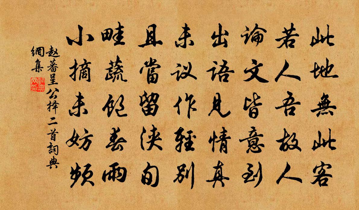 詩詞名句歷史字典書法欣賞書法字典國語詞典說文解字康熙字典古漢語字典標 題 作 者 詩 句 呈公擇二首作者:趙蕃 朝代:宋代呈公擇二首原文此地無此客,若人吾故人。論文皆意到,出語見情真。未議作輕別,且當留浹旬。畦蔬飽春雨,小摘未妨頻。詩詞問答問:呈公擇二首的作者是誰?答:趙蕃問:呈公擇二首寫於哪個朝代?答:宋代趙蕃呈公擇二首書法欣賞呈公擇二首書法作品詩詞推薦送崔押衙相州(頃任內黃令)韋應物〔唐代〕禮樂儒家子,英豪燕趙風。驅雞嘗理邑,走馬卻從戎。 * 千夫辟,黃金四海同。嫖姚恩顧下,諸將指揮中。別路和富陽陳大夫禱雨有感韻曾豐〔宋代〕千里羈懷那更秋,一陪行樂一忘憂。看君俶儻足誰柅,顧我輪囷枝一虯。卓令下車宣漢詔,周王前籍訪箕疇。拔茅江樓韋承慶〔唐代〕獨酌芳春酒,登樓已半曛。誰驚一行雁,沖斷過江雲。古意趙崇嶓〔宋代〕阿母帶兒出,兒行自回皇。兒不倦行路,遣兒心內傷。問兒何秘傷,兒語不敢詳。將兒雇織作,不忍織鴛鴦。送李漕用之二首劉克莊〔宋代〕漢廷鹽鐵議交攻,有詔姑惟舊法從。聞道嶺南歌聖主,一如河北感仁宗。向舒自是堪王佐,桑孔安知富大農。它日九鎖山十詠王易簡〔宋代〕鳳兮爾何來,翽翽鳴高崗。山風度玉簫,竹實豐餱糧。至今嶙峋石,如作毛羽翔。深溪阻造極,懸磴聊褰裳。踟躕侯元功問講學之意黃庭堅〔宋代〕金聲而玉振,從本用聖學。石師所未講,赤子有先覺。絲直則為弦,可射可以樂。竹筍不成蘆,白珪元抱璞。匏瓜龍學張彥父輓詞周必大〔宋代〕豈弟基岩邑,名聲起使華。台評扶國是,諫紙合謨嘉。念昔陪東府,看公肅正衙。班齊人立鶚,疏出字飛鴉。漢履中秋李朴〔唐代〕皓魄當空寶鏡升,雲間仙籟寂無聲。平分秋色一輪滿,長伴雲衢千里明。狡兔空從弦外落,妖蟆休向眼前生。靈槎余澹心寄金陵詠懷古蹟卻寄二首(選—)王士禎〔清代〕千古秦淮水,東流繞舊京。江南戎馬後,愁殺庾蘭成!微雨洪邁〔宋代〕端居身百憂,況乃貧病俱。天公頗相愛,相愛雨我蔬。藥區曉晴新,日薄生意蘇。衛生固未必,一飽行可圖。故園煮茗台汪任〔宋代〕石梯千級杖藜行,行到山腰足暫停。旋汲靈泉煮佳茗,渴心滋潤困魔醒。奉和御製中和楊億〔宋代〕佳節更春晦,長標令甲名。天淵搖綠浪,仙杏吐丹榮。連皷將驚蟄,高枝已變鶯。雲謠傳下土,漢曲被新聲。卜運算元善住〔元代〕夜月照西風,露冷梧桐落。揚子江頭朔雁飛,黃葛終難著。促織吊青燈,遠夢驚初覺。擬撫窗前綠綺琴,寂寞無弦分水鋪李次淵〔宋代〕青山北去連天會,綠水東流到八閩。何必此中分界限,普天率土盡王臣。三和劉克莊〔宋代〕擊磬何須入于海,括囊未免取諸坤。尋盟今已白鷗社,得詔昔曾金馬門。魚戲罕逢同隊子,雞窠會見二毛孫。兩翁柏舟佚名〔先秦〕泛彼柏舟,亦泛其流。耿耿不寐,如有隱憂。微我無酒,以敖以游。我心匪鑒,不可以茹。亦有兄弟,不可以據。櫓聲崔塗〔唐代〕煙外橈聲遠,天涯幽夢回。爭知江上客,不是故鄉來。古郡徐璣〔宋代〕古郡依蠻楚,身來作冷宮。老憐兄弟遠,貧喜婦兒女。分菊乘春雨,移梅待歲寒。又傅家信至,入夜著燈看。送菜徐秀才李新〔宋代〕食薺已甘予口,送荼聊苦君腸。見說舐碪無分,借令轑釜何妨。名句推薦往者不可諫,來者猶可追。孔子弟子《論語·微子篇》 秋霜不惜人,倏忽侵蒲柳。李白《長歌行》 天階夜色涼如水,臥看牽牛織女星。杜牧《秋夕》 離堂思琴瑟,別路繞山川。陳子昂《春夜別友人二首·其一》 陪都歌舞迎佳節,遙祝延安景物華。 * 《元旦口占用柳亞子懷人韻》 禮以行義,義以生利,利以平民,政之大節也。左丘明《左傳·成公·成公二年》 一往情深深幾許?深山夕照深秋雨。納蘭性德《蝶戀花·出塞》 萬里橋西一草堂,百花潭水即滄浪。杜甫《狂夫》 江晚正愁予,山深聞鷓鴣。辛棄疾《菩薩蠻·書江西造口壁》 望闕雲遮眼,思鄉雨滴心。白居易《陰雨》