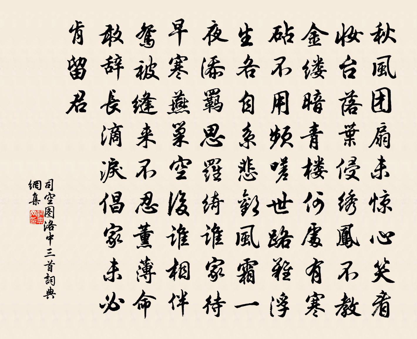 秋風團扇未驚心,笑看妝檯落葉侵。繡鳳不教金縷暗,青樓何處有寒砧。