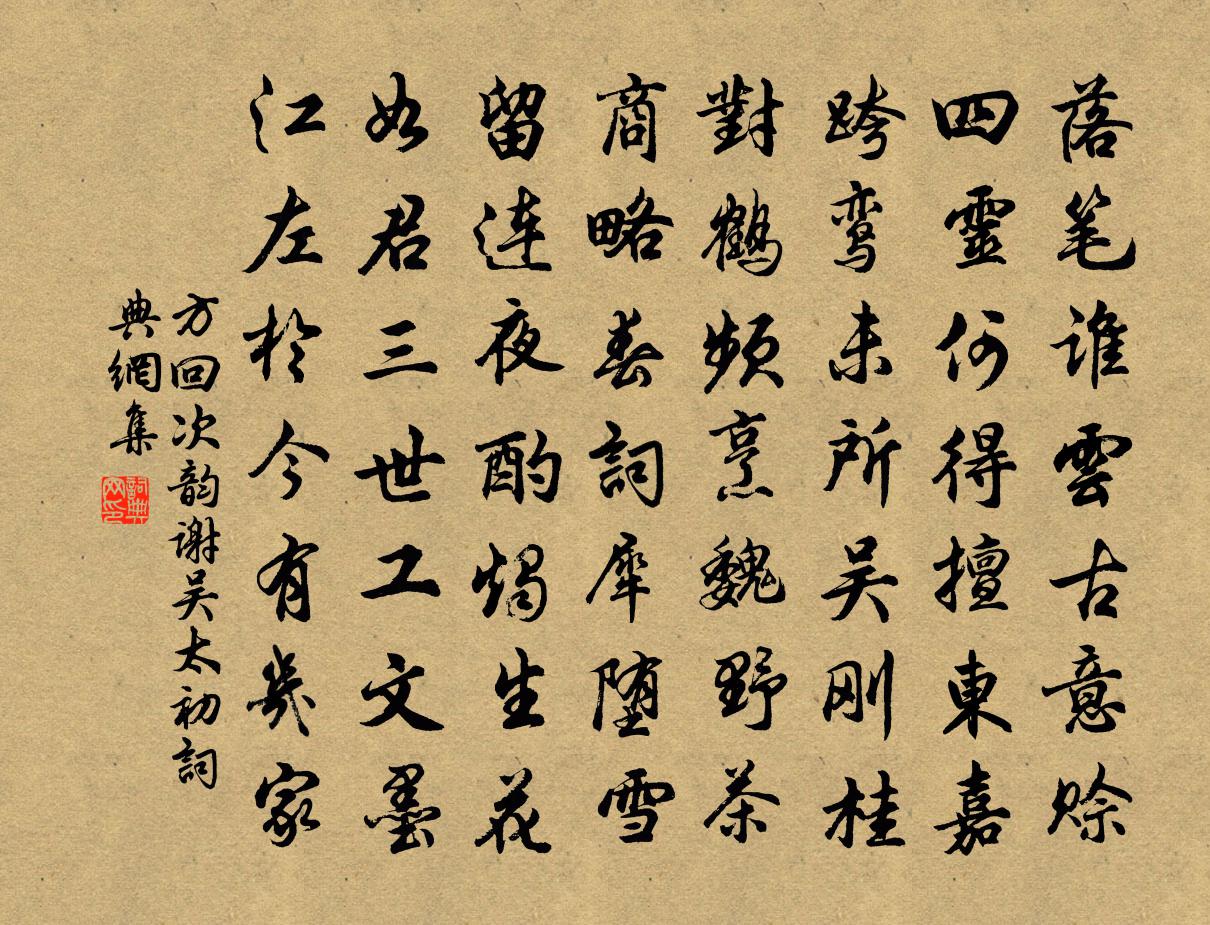 詩詞名句歷史字典書法欣賞書法字典國語詞典說文解字康熙字典古漢語字典標 題 作 者 詩 句 次韻謝吳太初作者:方回 朝代:宋代次韻謝吳太初原文落筆誰雲古意賒,四靈何得擅東嘉。跨鸞未所吳剛桂,對鶴頻烹魏野茶。商略春詞犀墮雪,留連夜酌燭生花。如君三世工文墨,江左於今有幾家。詩詞問答問:次韻謝吳太初的作者是誰?答:方回問:次韻謝吳太初寫於哪個朝代?答:宋代方回次韻謝吳太初書法欣賞次韻謝吳太初書法作品詩詞推薦秋日寄懷友人黃深源〔宋代〕幾度裁書無雁林,思君天闊水悠悠。自從席上飛花後,又見江頭落木秋。背壁一燈憐瘦影,誰家雙杵動新愁。不知初晴游滄浪亭蘇舜欽〔宋代〕夜雨連明春水生,嬌雲濃暖弄微晴。簾虛日薄花竹靜,時有乳鴿相對鳴。鷓鴣天(昌甫同明叔飲趙崇公家)韓淲〔宋代〕莫道龐公不入州。為誰歌酒也遲留。襟期別乘真難事,領略同游豈易謀。他擾擾,自悠悠。香浮茉莉笑花頭。一簾次韻演雅陳著〔宋代〕洛陽棘滿門,連昌菌當衙。枸杞怪成犬,寄奴妖見蛇。芸香虛辟蠹,鞠梅工兩蛙。黃櫱到里苦,紫荊無外遮。衰綠偈頌二百零五首釋正覺〔宋代〕柳線垂金鶯語滑,華棚張錦蝶飛忙。見聞里許通訊息,誰得先生點鐵方。偈頌五十一首釋道沖〔宋代〕古釋迦不先,今彌勒不後。禮拜燒香一線通,從教笑破衲僧口。戌溪道中樓鑰〔宋代〕寒潮高於埭,黃流濯西河。人牛力俱壯,相與沖流過。潮落勢叵御,轉樛依丘阿。暮靄起平楚,陰雲翳寒莎。夜分崔禮部園亭得深字張說〔唐代〕窈窕留清館,虛徐步晚陰。水連伊闕近,樹接夏陽深。柳蔓憐垂拂,藤梢愛上尋。訝君軒蓋侶,非復俗人心。三月三日宴王明府山亭(見《歲時雜詠》)陳子昂〔唐代〕暮春嘉月,上巳芳辰。群公禊飲,於洛之濱。句釋曉瑩〔宋代〕北山迤邐自蒼然。減字木蘭花沈瀛〔宋代〕停杯且止。齋里百無為客喜。冷淡文風。只有狂言數百通。不須載酒。粗有五車聊當壽。莫笑予何。空恁貪多嚼不謁金門朱子厚〔宋代〕風動竹。清偏一窗梅溽。聞道小喬乘鳳玉。仙裳飄霧縠。來嫁吾門公瑾叔。天上人間願足。濃繚水沈燃寶燭。鬢長寓意十首次敬助韻 其一王冕〔元代〕元龍湖海豪,忘懷但高眠。淵明辟世士,素琴不張弦。古意各有適,薄俗空□妍。所以武陵翁,種桃竟忘年。頌古四十四首釋師範〔宋代〕閃爍旌旗驟往來,幾人遙望起疑猜。此時若得樊公腳,一踏鴻門兩扇開。句史定之〔宋代〕一堤楊柳月,十里芰荷風。清涼寺項安世〔宋代〕楚甸延詩眼,台城壯酒杯。山蓮京口去,江自錦官來。百榼澆難下,千篇勇莫裁。非君湖海氣,誰禁此崔嵬。次韻湯伯紀送別二首劉克莊〔宋代〕比似莆杭傾蓋時,更崇古雅黜新奇。久棲衡泌寧非樂,不倚門牆未易麾。析理自應重講席,論文吾合豎降旗。撫弦以偈問文準禪師僧某〔宋代〕寒食因悲郭外春,墅田無處不傷神。林間壘壘添新冢,半是去年來哭人。擬為孫立之謝鄭剛中〔宋代〕肯為酴醿題好句,句成更肯輕相付。明年公對紫薇花,欲得此詩無覓處。胡少明兩書索二程先生畫像寄小詩二首陳長方〔宋代〕微言固已成糟粕,紙上形容轉更疏。要識平生真面目,百無所似若為書。名句推薦鳳凰台上鳳凰游,鳳去台空江自流。李白《登金陵鳳凰台》 不知庭霰今朝落,疑是林花昨夜開。宋之問《苑中遇雪應制》 敵者,利害相衝,死生弗容;未察之無以辨友,非制之無以成業。來俊臣《羅織經·制敵卷第五》 朝落暮開空自許,竟無人解知心苦晏幾道《蝶戀花·笑艷秋蓮生綠浦》 空山松子落,幽人應未眠。韋應物《秋夜寄邱員外 / 秋夜寄丘二十二員外》 十日雨絲風片裡,濃春艷景似殘秋。王士禎《秦淮雜詩二十首·其一》 勸君更盡一杯酒,西出陽關無故人。王維《渭城曲 / 送元二使安西》 是以動則必陷,為則必辱,是偏傷之患也。荀子《荀子·不苟》 百囀無人能解,因風飛過薔薇。黃庭堅《清平樂·春歸何處》 愁絕行人天易暮,行向鷓鴣聲里住納蘭性德《菊花新·用韻送張見陽令江華》