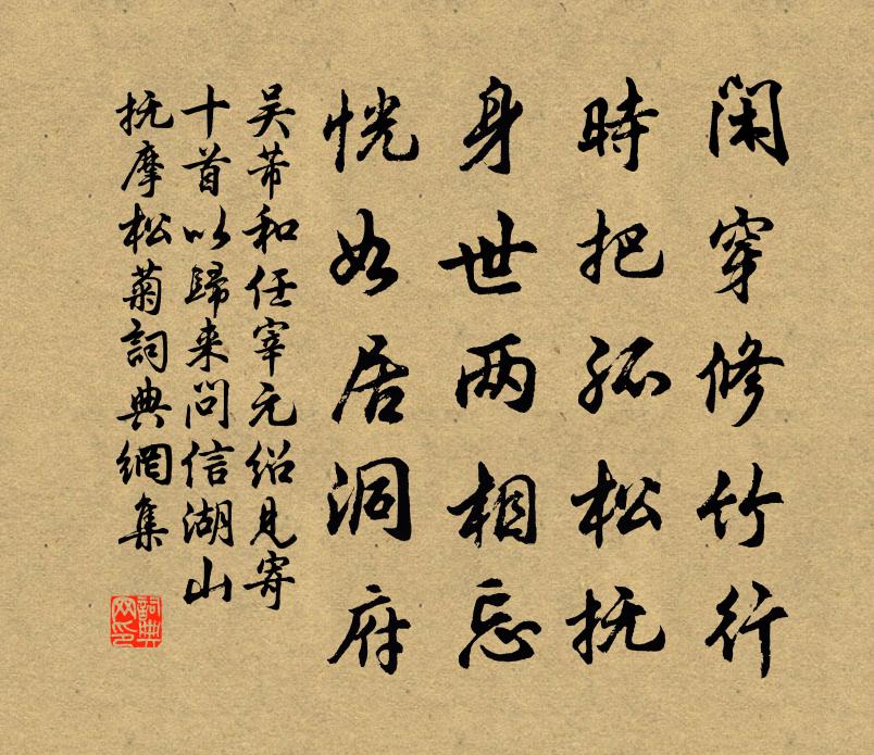 詩詞名句歷史字典書法欣賞書法字典國語詞典說文解字康熙字典古漢語字典標 題 作 者 詩 句 和任宰元紹見寄十首以歸來問信湖山撫摩松菊作者:吳芾 朝代:宋代原文閒穿修竹行,時把孤松撫。身世兩相忘,恍如居洞府。詩詞問答問:《和任宰元紹見寄十首以歸來問信湖山撫摩松菊》的作者是誰?答:吳芾問:該詩寫於哪個朝代?答:宋代書法欣賞和任宰元紹見寄十首以歸來問信湖山撫摩松菊書法作品詩文賞析【原題】:和任宰元紹見寄十首以歸來問信湖山撫摩松菊為韻詩詞推薦句擊虎臣〔宋代〕長日林皋獨醉吟。吳正仲遺二物詠之其一金盞子梅堯臣〔宋代〕鍾令昔醒酒,豫章留此花。黃金盞何小,白玉碗無瑕。始入吳郎宅,還歸楚客家。從茲不能醉,只恐費流霞。皇后廟十五首真宗〔宋代〕明守告畢,靈略難留。長雲杳邈,整騷優遊。誠深嘉粟,禮聲欽修。豈融垂佑,以永洪休。題竹秦韜玉〔唐代〕削玉森森幽思清,院家高興尚分明。捲簾陰薄漏山色,欹枕韻寒宜雨聲。斜對酒缸偏覺好,靜籠棋局最多情。卻驚雜劇·諸葛亮博望燒屯佚名〔元代〕第一折(沖末扮劉末同關末、張飛,領卒子上)(劉末雲)桑蓋層層徹碧霞,織席編覆作竹涯。有人來問宗和祖,和晏尚書夏日偶至郊亭歐陽修〔宋代〕關關啼鳥樹交陰,雨過西城野色侵。避暑誰能陪劇飲,清歌自可滌煩襟。稻花欲秀蟬初嘒,菱蔓初長水正深。知有大功不宰釋重顯〔宋代〕牛頭峰頂鎖重雲,獨坐寥寥寄此身。百鳥不來春又過,不知誰是到庵人。梅花劉過〔宋代〕寂無人語斷回程,日落未落孤山橫。平湖水闊何許去,傍竹邊松自好行。十月朝補種杏花楊萬里〔宋代〕百株種杏自今春,度夏榮枯不解勻。要看補栽新樹子,荼蘼紅剌絓頭巾。游蒼玉洞錢元忠〔宋代〕峭嶸亂石滿陵岡,顏色蒼潤如琳琅。神惻鬼□□□慘,牛眠虎跳深伏藏。太清靈壁不足數,涪水□麥熟可方。剝苔喜遷鶯(塞上詞)李綱〔宋代〕邊城寒早。對漠漠暮秋,霜風菸草。戰□長閒,刁斗無聲,空使荷戈人老。隴頭立馬極目,萬里長城古道。感懷處曉別白居易〔唐代〕曉鼓聲已半,離筵坐難久。請君斷腸歌,送我和淚酒。月落欲明前,馬嘶初別後。浩浩暗塵中,何由見回首?春歸衛宗武〔宋代〕紅飛綠膩晴晝遲,木香滿架柔條彼。芳菲過眼能幾日,娛樂常少多憂悲。東君歸計何太早,四序光陰如電掃。今年五日不出戶姜特立〔宋代〕五日不出戶,門前楓葉丹。清芬余橘柚,老色半林巒。社燕知時去,昏鴉取勢盤。秋深多物色,應接未能安。陳文煥秀才所宅所市憑樓一望西山宛然墮几案林亦之〔宋代〕西山檐外見,何必鹿門行。近晚市聲合,疎簾野意生。終朝如此好,初月更多情。卻愧才華鈍,三年句不成。龍丁謂〔宋代〕不操千金寶,思觀九色虯。負圖鐘上聖,銜燭照窮幽。但仰飛天大,寧聞戰野憂。沃焦須霈澤,莫道我無求。送蘇倩游天台張子容〔唐代〕靈異尋滄海,笙歌訪翠微。江鷗迎共狎,雲鶴待將飛。琪樹嘗仙果,瓊樓試羽衣。遙知神女問,獨怪阮郎歸。秋熱方岳〔宋代〕衰老不耐暑,喜甚秋咫尺。秋來幾何時,炮煮乃爾劇。老夫大失望,亦自愧兩屐。青山吾故人,可想不可覿。農家紅梅 其六王冕〔元代〕白日遲遲照窗戶,深院不知春幾許?紫簫聲轉香風回,隔簾踏動燕脂雨。奉和聖制夏日游石淙山姚崇〔唐代〕二室三塗光地險,均霜揆日處天中。石泉石鏡恆留月,山鳥山花競逐風。周王久謝瑤池賞,漢主懸慚玉樹宮。別有名句推薦所謂壹刑者,刑無等級。商鞅《商君書·賞刑》 輕輕飛動,把賣花人搧過橋東王和卿《醉中天·詠大蝴蝶》 寂寂聞猿愁,行行見雲收李白《尋高鳳石門山中元丹丘》 相馬失之瘦,相士失之貧。司馬遷《史記·滑稽列傳》 風定落花深,簾外擁紅堆雪。李清照《好事近·風定落花深》 芙蓉金菊斗馨香。天氣欲重陽。晏殊《訴衷情·芙蓉金菊斗馨香》 人刑者非人也,罰人者非罰也。來俊臣《羅織經·刑罰卷第十一》 古宮閒地少,水港小橋多。杜荀鶴《送人游吳》 紫黯紅愁無緒,日暮春歸甚處?龔自珍《如夢令·紫黯紅愁無緒》 琅琅新雨洗湖天,小景六橋邊。張可久《風入松·九日》