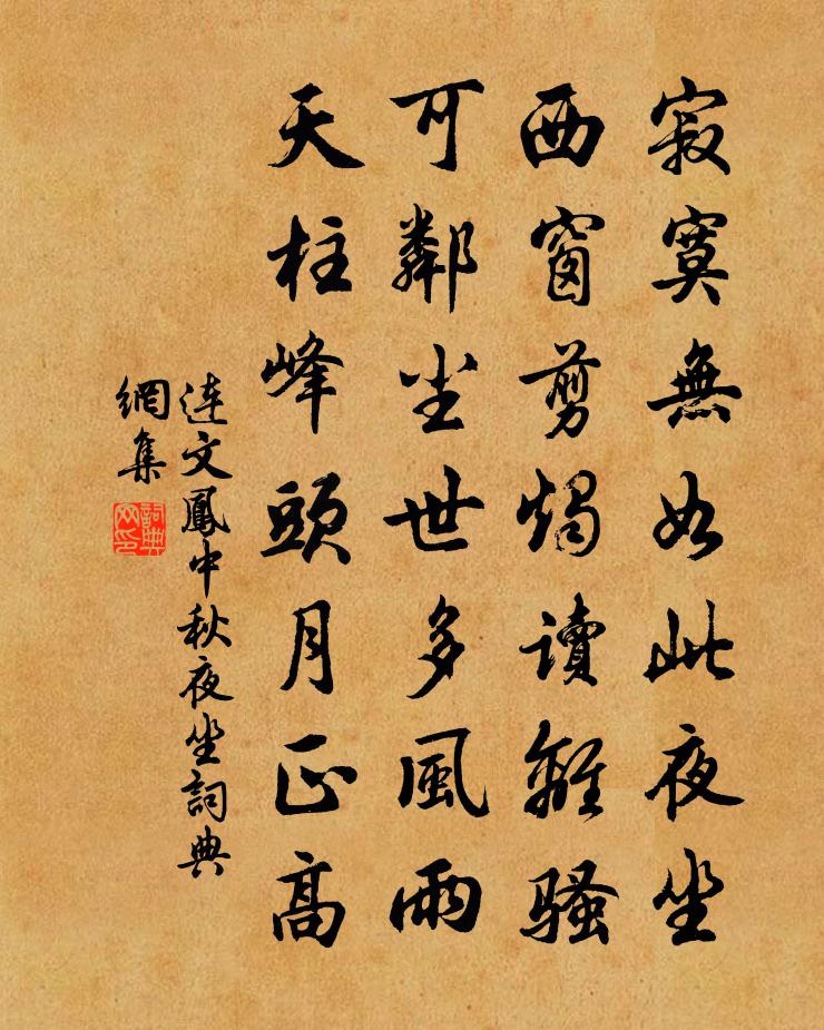 詩詞名句歷史字典書法欣賞書法字典國語詞典說文解字康熙字典古漢語字典標 題 作 者 詩 句 中秋夜坐作者:連文鳳 朝代:宋代中秋夜坐原文寂寞無如此夜坐,西窗剪燭讀離騷。可鄰塵世多風雨,天柱峰頭月正高。詩詞問答問:中秋夜坐的作者是誰?答:連文鳳問:中秋夜坐寫於哪個朝代?答:宋代連文鳳中秋夜坐書法欣賞中秋夜坐書法作品詩詞推薦題表上人卷舒軒汪應辰〔宋代〕高軒聊自娛,俯仰稱幽居。世道有興廢,人心隨卷舒。圓機應有此,膠柱合何如。愧匪許詢輩,時來問滿虛。偶然書懷姚合〔唐代〕十年通籍入金門,自愧名微枉搢紳。煉得丹砂疑不食,從茲白髮日相親。家山迢遞歸無路,杯酒稀疏病到身。漢有次韻子瞻記歲莫鄉俗三首其一饋歲蘇轍〔宋代〕周公制鄉禮,無有相通佐。鼎肉送子思,烝豚出陽貨。交親隨高低,豈問小與大。自從此禮衰,伏臘有飢臥。鄉人竹冠王冕〔元代〕竹冠橫五折,安用鐵絲旒?斑積湘江雨,清銜□谷秋?自然堅節在,難與俗情侔。相見無疑怪,先生不姓劉。入杭戴表元〔宋代〕曾江白酒樊江飯,處處當年客似家。垂老重來舊相識,春風只有野桃花。徽州赴羅主管飯項安世〔宋代〕去年話別春風前,今年相見菊花邊。忽然來說三年夢,偶然亦是三生緣。弟兄金玉吾所敬,肌膚冰雪人可憐。四海贈湘南漁父劉長卿〔唐代〕問君何所適,暮暮逢煙水。獨與不繫舟,往來楚雲里。釣魚非一歲,終日只如此。日落江清桂楫遲,纖鱗百尺深可秋晚雜書三十首方回〔宋代〕子云性滑稽,寓意頌酒德。鴟夷雖勝瓶,豈終無腐日。子反以此斃,孟公卒自賊。萬物有中道,盍少循軌則。唐用寶善堂為薛玄卿題黃叔美〔宋代〕人孰不有母,鮮能報其恩。人孰不有弟,鮮能念同根。漢興尺布謠,鄭有誓泉言。所以憂世事,永嘆鶺鴒原。緬懷閒居幽步曾豐〔宋代〕歸歟無可答休休,小放吾心與自流。山不去門如自售,雲無留意似他求。有如許柏得能古,都幾何松若個幽。更有漫塘晚望劉宰〔宋代〕霽色催雲作晚霞,小橋卻立岸鳥紗。雨餘菱芡新抽葉,秋早菰蒲未著花。燈影微茫行客艇,鐘聲縹緲梵王家。沉吟秋日江郎道中柴元彪〔宋代〕豆花疏雨浥輕埃,野店新涼入酒杯。草帶淡煙棲古道,樹含斷靄翳荒台。湖光隱見萍分合,山色有無雲去來。滿眼霜天曉角(泛池)張鎡〔宋代〕荷花閒撥。撐破玻璃滑。拂拂香風微度,吹雪亂、數根發。弄泉羅蓋匝。萬顆真珠撒。唱我蓮歌歸去,凌波步、水藤杖贈張從道孔武仲〔宋代〕群木蔚蒼蒼,烏藤壽最長。一朝隨剪伐,千里任持將。扣觸如金石,摧殘耐雪霜。崎嶇伴蠟屐,閒暇倚岩牆。我亦次韻和吳仲庶舍人送德化郭尉梅堯臣〔宋代〕蒲葉高帆十二幅,秋風逆水滿檣開。是時不畏浪頭起,到日定將船尾堆。用舍東方言虎鼠,賤疏梅福比蒿萊。少年山行二首韓元吉〔宋代〕晴日烘林百草香,杖藜徐步興何長。殘花的皪明幽徑,老筍參羞出斷牆。和元樂銷暑樓曉望陳師道〔宋代〕遶郭溪山接四鄰,身輕步躡一梯雲。圖南羽翮摶空見,倚北光芒入夜分。蕪沒池台余故事,風流人物想前聞。翛然丙申歲朝楊萬里〔宋代〕椒盤又頌一年初,多拜猶欣未要扶。山色長供青蒻笠,春光不為白髭鬚。仙家風土閒中是,歲後鶯花較早無。人事儀坤廟樂章金奏徐彥伯〔唐代〕陰靈效祉,軒曜降精。祥符淑氣,慶集柔明。瑤俎既列,雕桐發聲。徽猷永遠,比德皇英。南歸舟中二首齊己〔唐代〕南歸乘客棹,道路免崎嶇。江上經時節,船中聽鷓鴣。春容含眾岫,雨氣泛平蕪。落日停舟望,王維未有圖。長江名句推薦秋已盡,日猶長,仲宣懷遠更淒涼。李清照《鷓鴣天·寒日蕭蕭上瑣窗》 善將者,其剛不可折,其柔不可卷,故以弱制強,以柔制剛。諸葛亮《將苑·卷一·將剛》 江南憶,最憶是杭州。白居易《憶江南詞三首》 不似春風逞紅艷,鏡前空墜玉人釵。司空圖《華下對菊》 分明一覺華胥夢,回首東風淚滿衣。趙鼎《鷓鴣天·建康上元作》 天上若無修月戶,桂枝撐損向西輪。米芾《中秋登樓望月》 臣無隱忠,君無蔽言,國之祿也。劉向《戰國策·趙二·武靈王平晝閒居》 菊暗荷枯一夜霜。新苞綠葉照林光。蘇軾《浣溪沙·詠橘》 南山截竹為觱篥,此樂本自龜茲出李頎《聽安萬善吹觱篥歌》 下窺指高鳥,俯聽聞驚風。岑參《與高適薛據同登慈恩寺浮圖》