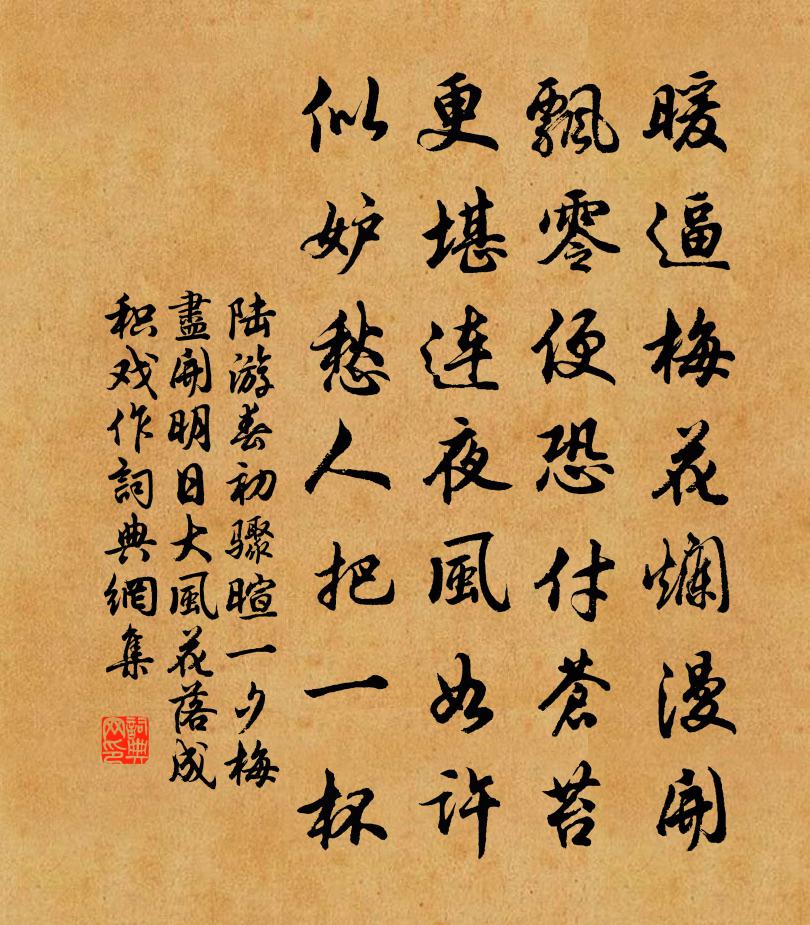 暖逼梅花爛漫開,飄零便恐付蒼苔。更堪連夜風如許,似妒愁人把一杯。