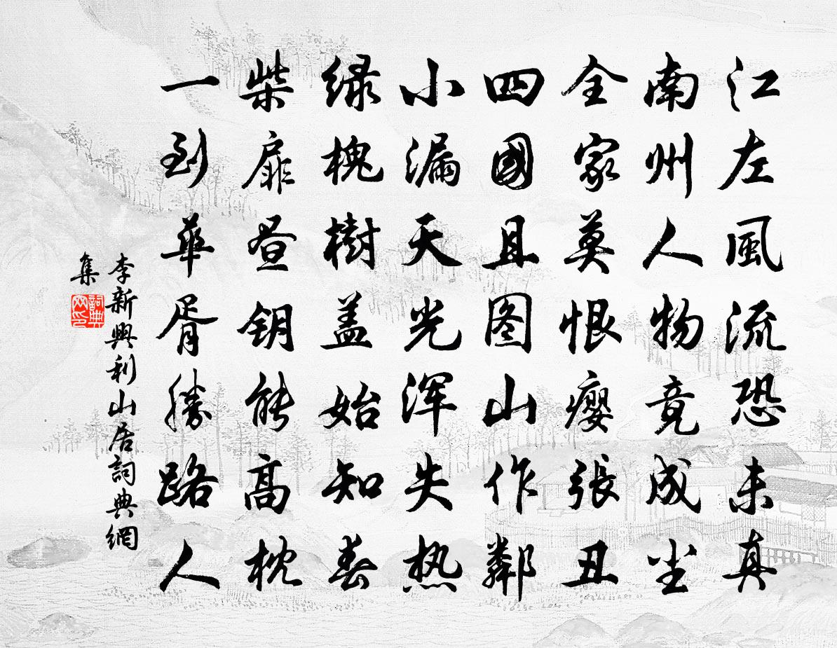 詩詞名句歷史字典書法欣賞書法字典國語詞典說文解字康熙字典古漢語字典標 題 作 者 詩 句 興利山居作者:李新 朝代:宋代興利山居原文江左風流恐未真,南州人物竟成塵。全家莫恨癭張醜,四國且圖山作鄰。小漏天光渾失熱,綠槐樹蓋始知春。柴扉晝鑰能高枕,一到華胥勝路人。詩詞問答問:興利山居的作者是誰?答:李新問:興利山居寫於哪個朝代?答:宋代李新興利山居書法欣賞興利山居書法作品詩詞推薦秋懷連文鳳〔宋代〕天高正寥泬,深夜群動闃。秋聲從何來,淅瀝復蕭瑟。須臾忽澎湃,愁思若悽惻。罷琴試靜聽,紛紛鳴四壁。有如秋日野步和王覺民十六首王之道〔宋代〕病怯酒杯微過量,瘦憐衣帶頗寬痕。傷心故國 * 草,秋日荒涼處處村。聞狀元是少年陳著〔宋代〕聞說三魁是少年,世閒何必嘆才難。我生亦是奇男子,莫作時人一例看。歷代詩西漢楊簡〔宋代〕西漢十二君,高惠呂后文。景帝傳於武,遂及昭宣元。成哀平帝後,王莽乃為君。昌邑兼孺子,二人不足雲。詠晴趙蕃〔宋代〕冥冥十日雨,不見海棠梨。霽色晨初上,禽聲樂可知。春衣猶故褐,薄飯只朝虀。自信端如此,流行任所之。紹興別廟樂歌五首真宗〔宋代〕曾沙表慶,正位椒庭。徽音杳邈,宮台科刑。虔修祀事,清酌惟聲。縮以包芳,昭格明靈。送稅官仇副使詩十首熊禾〔宋代〕古來抱關人,玩世可無悶。內省既不愆,得仁又何怨。送朱貺中允宰宋城黃庭堅〔宋代〕鄴王台邊春一空,但有雪飛楊柳風。我從南陽解歸橐,重簾復幕坐學宮。酒材苦責公釀薄,欲經醉鄉無路通。奈何湖上晚歸方回〔宋代〕此身閒一日,足使百憂忘。城外天能大,山中地許涼。喧呼經妓舫,寂靜憶僧房。薄暮歸窮巷,誰家正絕糧。池陽四詠周必大〔宋代〕地占齊山最上頭,州城宛在水中洲。蜿蜒正作長虹墮,吸信江河萬里流。句元絳〔宋代〕神石溪頭好明月,夜來誰此憑蘭橈。林村寒食戴表元〔宋代〕出門楊柳碧依依,木筆花開客未歸。市遠無餳供熟食,村深有紵生衣。寒沙犬逐游鞍吠,落日鴉銜祭肉飛。聞說舊次韻雪寒郡中糶米食源有賦高斯得〔宋代〕父兮兒飢母兮寒,瓶中無粟囊無錢。天公何不知人苦,獰風裂膚雪塞戶。我來日月雖未多,舛令已乾天譴呵。醫瘡贈任懶張籍〔唐代〕未肯求科第,深坊且隱居。勝游尋野客,高臥看兵書。點藥醫閒馬,分泉灌遠蔬。漢庭無得意,誰擬薦相如。宿龍興寺綦毋潛〔唐代〕香剎夜忘歸,松青古殿扉。燈明方丈室,珠系比丘衣。白日傳心靜,青蓮喻法微。天花落不盡,處處鳥銜飛。和楊尚書罷相後夏日游永安水亭兼招本曹楊侍郎同行白居易〔唐代〕道行無喜退無憂,舒捲如雲得自由。良冶動時為哲匠,巨川濟了作虛舟。竹亭陰合偏宜夏,水檻風涼不待秋。遙愛光弼侄得邑西歸賦詩勉之並示光義二首張栻〔宋代〕共惟二百載,詩禮一門中。冷落吾憂甚,扶持爾輩同。傳心地異轍,隨用不言功。外慕知何極,惟應念祖風。頌古七首南泉示眾雲文殊起佛見法見貶向二釋慧勤〔宋代〕彩雲影里仙人現,手把紅羅扇遮面。無人著眼看仙人,卻看隨後紅羅扇。訴衷情侯善淵〔元代〕太虛寥廓杳無涯。元*混中華。回眸斡旋鼎鼐,玉液泛金砂。輝神彩,迸光霞。晃瓊葩。雲收波渺,海淨天空,廣芭蕉雨程垓〔宋代〕雨過涼生藕葉。晚庭消盡暑,渾無熱。枕簟不勝香滑。爭奈寶帳情生,金尊意愜。玉人何處夢蝶。思一見冰雪。須名句推薦三月休聽夜雨,如今不是催花。張炎《清平樂·采芳人杳》 遠書歸夢兩悠悠,只有空床敵素秋。李商隱《端居》 萬里歸來顏愈少,微笑,笑時猶帶嶺梅香。蘇軾《定風波·南海歸贈王定國侍人寓娘》 莫道君行早,更有早行人。佚名《增廣賢文·上集》 不聞不若聞之,聞之不若見之,見之不若知之,知之不若行之。荀子《荀子·儒效》 亂世用能,平則去患。來俊臣《羅織經·控權卷第四》 學者不患才之不贍,而患志之不立。徐幹《中論·上卷·治學》 百川東到海,何時復西歸?佚名《長歌行》 淺把涓涓酒,深憑送此生。杜甫《水檻遣心二首》 大丈夫相時而動。曹雪芹《紅樓夢·第四回》