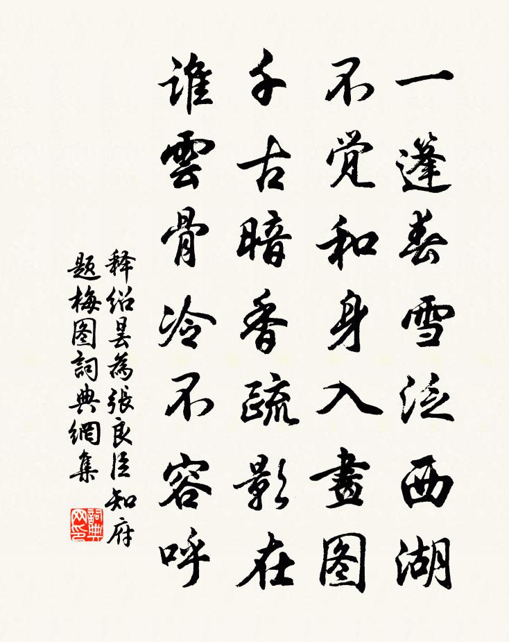 詩詞名句歷史字典書法欣賞書法字典國語詞典說文解字康熙字典古漢語字典標 題 作 者 詩 句 為張良臣知府題梅圖作者:釋紹曇 朝代:宋代為張良臣知府題梅圖原文一篷春雪泛西湖,不覺和身入畫圖。千古暗香疏影在,誰雲骨冷不容呼。詩詞問答問:為張良臣知府題梅圖的作者是誰?答:釋紹曇問:為張良臣知府題梅圖寫於哪個朝代?答:宋代釋紹曇為張良臣知府題梅圖書法欣賞為張良臣知府題梅圖書法作品詩詞推薦題靜齋稿沈平〔宋代〕斯道在人心,如蚌藏圓珠。散作明月光,斂則止水虛。次韻莆大受琴中趣二首郭印〔宋代〕二器入範圍,物物皆吾琴。外響蘊真寂,中虛含妙音。世人若著相,正墮聲色林。那知反聽處,萬象融一心。伊余逸再為婺女之行既別出郭矣夜不能寐成六絕句趙蕃〔宋代〕歲事將窮老所悲,念將留汝亦奚為。新年事業能增進,絕勝衰殘守舊詩。好事近(用前韻答鄧端友使君)向子諲〔宋代〕風勁入平林,掃盡一林黃葉。惟有長松千丈,掛娟娟霜月。使君和氣動江城,疑是芳菲節。忽到小園遊戲,見南枝【南呂】西番經_四海英雄漢佚名〔元代〕四海英雄漢,六合天地間,舊識荊州不信韓。乾,破冠朝暮彈。空長嘆,牧童牛背山。 醉鞭平康巷,少年長樂訪嚴坦叔戴復古〔宋代〕 * 山下泊,城郭帶煙霞。攜刺投詩社,移船傍酒家。沙禽時弄水,櫸柳夏飛花。小酌未能了,西樓日又斜。三使相楊維楨〔元代〕金床脫落龍作鼠,崔相陸相不敢語。銀撾畫地數罪名,奉璽前拜天子婦。上書進士空遑遑,桓文霸烈誰敢當?明年送王秀才謁池州吳都督王初〔唐代〕池陽去去躍雕鞍,十里長亭百草乾。衣袂障風金鏤細,劍光橫雪玉龍寒。晴郊別岸鄉魂斷,曉樹啼烏客夢殘。南館甲申正月答昌甫見寄韻代書陳文蔚〔宋代〕負迷法漂跡,關心為倚門。盡嘆惟啜菽,奉旨屢空尊。溫劑勞分紅,新詩且記存。開緘細吟諷,小立近黃昏。出真州文天祥〔宋代〕秦庭痛哭血成川,翻訝中行背可鞭。南北共知忠義苦,平生只少兩淮緣。重陽不見菊次諸公韻朱翌〔宋代〕西風吹露斝,晴日駕香輿。羨彼根莖茂,憐予齒髮疏。功成身老健,重味笑軒渠。甘谷誰能汲,瓶{嬰去女加瓦}綠萼香梅十樹鹹淳間自內前買歸亂後尚存對之舒岳祥〔宋代〕縞衣黃里綠雲跗,仟家結束來天隅。承平故態今尚爾,流落空山成嘆吁。莫對此花被渠惱,惜花情重人先老。多少胭脂梅李龍高〔宋代〕御卻雲衣明月璫,輕朱傅臉錦為裳。古來美艷多招妬,不似臨風且淡妝。次韻陳心田郊居即事二首徐瑞〔宋代〕想見從來種種迂,讀書採藥灌園疏。看山不厭風期別,與世相忘機事疏。正自未妨悄徉飲,足知不作子公書。詩名句釋惠崇〔宋代〕空潭聞鹿飲,疏樹見僧行。到白水有感陳著〔宋代〕吾氣已衰颯,茲行增慘淒。近山雲易雨,積水路如溪。寒食紙錢樹,舊遊莎草畦。頹牆獨立久,百感付鵑啼。鸚鵡曲 蘭亭手卷馮子振〔元代〕蘭亭不肯昭陵住。老逸少是獻之父。過江來定武殘碑,剝落刓煙剜雨。縱新新繭紙臨摹,樂事賞心俱去。永和年小失調名佚名〔宋代〕王孫去後多芳草。夜讀翁逢龍〔宋代〕官事歸來夜雪埋,兒曹燈火小茅齋。人家不必問貧富,但有讀書聲便佳。李總乾遺詩十四句師於一句之下加頌七句釋印肅〔宋代〕靜坐取片時,妄想自家知。心口兩不同,修行不透機。明朝與後日,作個野狐狸。困果全不落,百丈一言迷。名句推薦忍淚佯低面,含羞半斂眉。韋莊《女冠子·四月十七》 小軒獨坐相思處,情緒好無聊。石孝友《眼兒媚·愁雲淡淡雨瀟瀟》 大江流日夜,客心悲未央。謝朓《暫使下都夜發新林至京邑贈西府同僚》 起舞徘徊風露下,今夕不知何夕。蘇軾《念奴嬌·中秋》 將之器,其用大小不同。諸葛亮《將苑·卷一·將器》 秋花冒綠水,密葉羅青煙。李白《古風·其五十九》 臣子恨,何時滅!駕長車,踏破賀蘭山缺。岳飛《滿江紅·寫懷》 不憤不啟,不悱不發,舉一隅不以三隅反,則不復也。孔子弟子《論語·述而篇》 禍患常積於忽微,而智勇多困於所溺歐陽修《伶官傳序》 憑君莫話封侯事,一將功成萬骨枯。曹松《己亥歲感事》