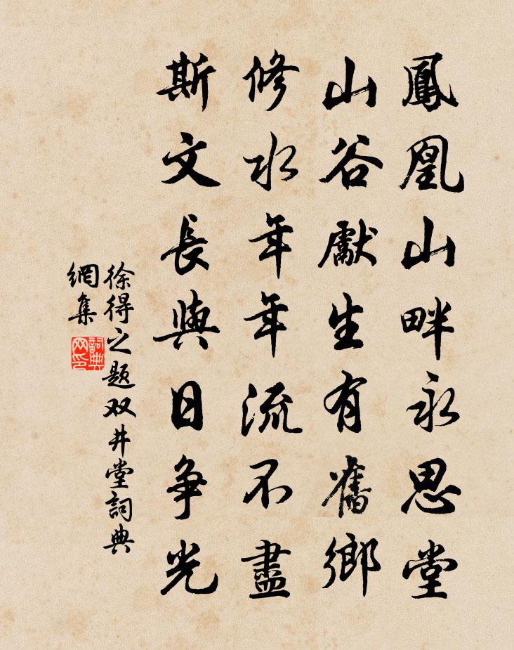 詩詞名句歷史字典書法欣賞書法字典國語詞典說文解字康熙字典古漢語字典標 題 作 者 詩 句 題雙井堂作者:徐得之 朝代:宋代題雙井堂原文鳳凰山畔永思堂,山谷先生有舊鄉。修水年年流不盡,斯文長與日爭光。詩詞問答問:題雙井堂的作者是誰?答:徐得之問:題雙井堂寫於哪個朝代?答:宋代徐得之題雙井堂書法欣賞題雙井堂書法作品詩詞推薦攜家游倭松黃庶〔宋代〕倭松名載四海耳,百怪老筆不可傳。左妻右兒醉樹下,安得白首巢其巔。太滌洞留題黃敏德〔宋代〕憶昨朝真暫憩留,清宵澒洞乳泉流。重來人在山尤好,剩喜涼生暑頓收。玉柱擎天高拔地,翠蛟擁日冷涵秋。蠅頭游禁苑幸臨渭亭遇雪應制徐彥伯〔唐代〕玉律藏冰候,彤階飛雪時。日寒消不盡,風定舞還遲。瓊樹留宸矚,璇花入睿詞。懸知穆天子,黃竹謾言詩。題蕭照山水舒岳祥〔宋代〕翩翩涼樹下茅堂,揖客柴門去棧長。山外橫舟篷不啟,誰知世有送迎忙。四月五日,車駕朝獻,景靈宮省前迎鴐起居口楊萬里〔宋代〕鳳輦雲行露未銷,鸞旗風動柳相高。晴雷出地傅清蹕,霽日吹紅染御袍。喜見天顏浮玉藻,歸從原廟薦櫻桃。小臣次胡潛父先輩劉黻〔宋代〕聖世如何肯棄賢,唐書筆削賴君傳。山雲相望三千里,嶺霧同游恰一年。才刃固難居眾後,智囊猶欠獨幾先。嗟吁趙山二絕岳珂〔宋代〕驅車結束趁晨暾,水樂簾前共一尊。二十二年如掣電,軟紅依舊暗修門。和陳生三首胡寅〔宋代〕車塵馬足兩紛綸,談叟渾如谷口真。鬧里光陰渠不駐,靜中滋味我嘗新。高眠展轉三竿日,熟飲頻煩一瓮春。請看聞杜鵑羅鄴〔唐代〕花時一宿碧山前,明月東風叫杜鵑。孤館覺來聽夜半,羸僮相對亦無眠。汝身哀怨猶如此,我淚縱橫豈偶然。爭得王母歌(一作玉女歌)韋應物〔唐代〕眾仙翼神母,羽蓋隨雲起。上游玄極杳冥中,下看東海一杯水。海畔種桃經幾時,千年開花千年子。玉顏眇眇何處景祐上辛祈谷二首佚名〔宋代〕天祚有開,文德來遠。祈觳日辛,侑神禮展。詠史上張釋之三首陳普〔宋代〕帝舜登天四海臣,可憐生殺不由身。持平第一張廷尉,更聽君王誤 * 。過陳州上晏相公范仲淹〔宋代〕曩由清舉玉宸知,今覺光榮冠一時。曾入黃扉陪國論,重求絳帳就師資。談文講道渾無倦,養浩存真絕不衰。獨愧菊鄭谷〔唐代〕王孫莫把比荊蒿,九日枝枝近鬢毛。露濕秋香滿池岸,由來不羨瓦松高。韓耕道交八絕句韻見寄因和答之曹彥約〔宋代〕營壘家家說望夫,將軍志遠在余吾。從來萬里千金費,曾有因糧事也無。煙浦沈說〔宋代〕煙浦殘鴉舞夕陽,風枝病葉似初霜。眼中秋中十分淨,沙外寒流一線長。溪女得魚烹碎白,田家收谷曬新黃。偶尋定風波張孝祥〔宋代〕鈴索聲乾夜未央。曲欄花影步淒涼。莫道嶺南冬更暖。君看。梅花如雪月如霜。見說牆西歌吹好,玉人扶坐勸飛觴武康姓丁人號生魂神合邑騷動董嗣杲〔宋代〕世降多淫祀,時荒扇盜區。妖丁肆荒誕,結甲走昏愚。揭幟營祠廟,椎鑼誷市衢。大夫清似水,勦絕莫踟躕。句韋奇〔宋代〕山風噓冷信,檐溜管離情。驀山溪賀鑄〔宋代〕畫橋流水,宛是南州路。轉柁綠楊灣,恍然間、青樓舊處。迴腸斷盡,猶剩爾多愁,記新聲,懷昵語。依約對眉宇名句推薦畫棟朝飛南浦雲,珠簾暮卷西山雨。王勃《滕王閣詩》 相思一夜窗前夢,奈個人、水隔天遮。王沂孫《高陽台·和周草窗寄越中諸友韻》 人之初,性本善。性相近,習相遠。王應麟《三字經·全文》 曉戰隨金鼓,宵眠抱玉鞍。李白《塞下曲六首·其一》 最是繁絲搖落後,轉教人憶春山。納蘭性德《臨江仙·寒柳》 誠既勇兮又以武,終剛強兮不可凌。屈原《國殤》 曾經滄海難為水,除卻巫山不是雲。元稹《離思五首·其四》 乍暖還輕冷。張先《青門引·春思》 粉黛暗愁金帶枕,鴛鴦空繞畫羅衣,那堪辜負不思歸!顧敻《浣溪沙·雲淡風高葉亂飛》 少而學者如日出之陽,壯而學者如日中之光,老而學者如秉燭之明。李昉、李穆、徐鉉《太平御覽·火部·卷三》
