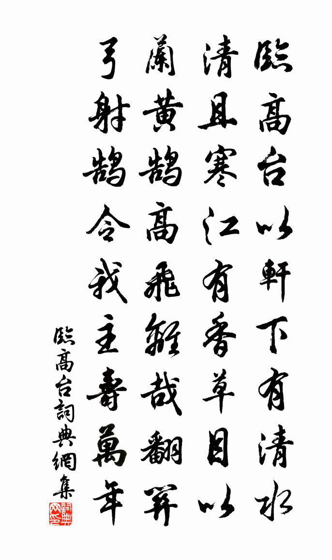 古詞有言:“臨高台,下見清水中有黃鵠飛翻,關弓射之,令我主萬年。”這首詩化用其詩句,寫登高台所見之景,以抒發作者的豪邁情懷及其渴望長生的心愿。