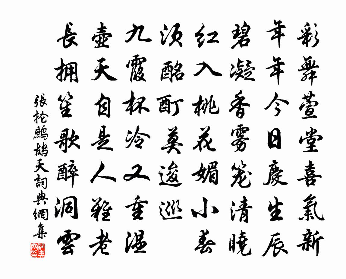 詩詞名句歷史字典書法欣賞書法字典國語詞典說文解字康熙字典古漢語字典標 題 作 者 詩 句 鷓鴣天作者:張掄 朝代:宋代鷓鴣天原文彩舞萱堂喜氣新。年年今日慶生辰。碧凝香霧籠清曉,紅入桃花媚小春。須酩酊,莫逡巡。九霞杯冷又重溫。壺天自是人難老,長擁笙歌醉洞雲。詩詞問答問:鷓鴣天的作者是誰?答:張掄問:鷓鴣天寫於哪個朝代?答:宋代問:鷓鴣天是什麼體裁?答:詞張掄鷓鴣天書法欣賞鷓鴣天書法作品詩詞推薦送友人如邊賈島〔唐代〕去日重陽後,前程菊正芳。行車輾秋岳,落葉墜寒霜。雲入漢天白,風高磧色黃。蒲輪待恐晚,求薦向諸方。山中憶兄弟項容孫〔宋代〕鴻雁不成行,飄零歲月長。一身三處夢,五夜九迴腸。積雪欺茅屋,孤燈照錦囊。何當聽夜雨,卻話此淒涼。同汪正夫行夫望鄱江劉子翬〔宋代〕夜夢鄱江清,曉踏鄱陽縣。雲濤著眼新,還疑夢中見。寒聲彭蠡合,凍色廬峰現。時方冬氣深,水縮川原變。連沙宋興寺曾極〔宋代〕晉至昌明祚已終,讖文猶有兩昏童。醒玄偷得宮中璽,卻屬新河伐荻翁。霜毛蘇泂〔宋代〕深深四檐雨,眇眇一枝燈。酒盡獨愁婦,家貧全似僧。中年多感慨,同好少交朋。自省空諸有,霜毛未可憎。詠銅瓶中梅晁公溯〔宋代〕折得寒香日暮歸,銅瓶添水養橫枝。書窗一夜月初滿,卻似小溪清淺時。送同年崔先輩許渾〔唐代〕西風帆勢輕,南浦遍離情。菊艷含秋水,荷花遞雨聲。扣舷灘鳥沒,移棹草蟲鳴。更憶前年別,槐花滿鳳城。酬樂天得微之詩知通州事因成四首元稹〔唐代〕茅檐屋舍竹籬州,虎怕偏蹄蛇兩頭。暗蠱有時迷酒影,浮塵向日似波流。沙含水弩多傷骨,田仰畬刀少用牛。知得癸未至節以病晚起走筆戲書紀事排悶十首方回〔宋代〕忍事寧生癭,今誰似我能。缺錢分灶婢,賒米乞庵僧。惡語聞皆恕,凡詩見亦稱。平生樓百尺,非復舊陳登。暇日登東岡陸游〔宋代〕雙屨青芒滑,輕衫白薴涼。雲生半岩潤,麝過一林香。童子持棋局,廚人饋粟漿。歸來更清絕,淡月滿林塘。紹興二十八年祀圜丘學士院〔宋代〕五略鳴監,八神警蹕。天宮景從,莫不祗粟。祲威盛容,昭哉祖述。祚我無疆,葉氣棄溢。七夕韓元吉〔宋代〕銀河翻浪拍空流,玉女停梭清露秋。天上一年真一日,人間風月自生愁。偶題晁說之〔宋代〕一室蕭然懶傍書,角巾孤嘯問何如。夕陽能使山遠近,秋色巧隨人慘舒。苔漬碧花行不到,香殘篆字睡應余。自憐浣溪沙(小春)高觀國〔宋代〕雲外峰巒翠欲埋。雨沾黃葉濕青鞋。小驚春色入寒荄。風月愁新空雁字,神仙夢冷憶鸞釵。淒涼不是好情懷。臥聽法曲霓裳白居易〔唐代〕金磬玉笙調已久,牙床角枕睡常遲。朦朧閒夢初成後,宛轉柔聲入破時。樂可理心應不謬,酒能陶性信無疑。起嘗題蘇端明書乳泉賦後陳仁玉〔宋代〕坡翁謫海上,人傳已仙去。道逢章子厚,遄復返塵路。至言想世驚,獨閟乳泉賦。遙憐嵩山丘,千古不可駐。寄宋居士修叔求菴記裘萬頃〔宋代〕翠琰新刊照眼明,流傳何日到柴荊。從今不恨論交晚,我亦碑中有姓名。西江月李萊老〔宋代〕綠染曉雲冉冉,紅酣晴霧冥冥。銀簪懸燭錦官城。困倚牆頭半影。雨後遍饒艷冶,燕來同作清明。更深猶喚玉靴笙嚴陵灘羅隱〔唐代〕中都九鼎勤英髦,漁釣牛蓑且遁逃。世祖升遐夫子死,原陵不及釣台高。三和項安世〔宋代〕大國併吞江漢,小家垂罄缾罍,賁育但叉手揖,沮溺漫窮年推。名句推薦梧桐葉上三更雨,葉葉聲聲是別離。周紫芝《鷓鴣天·一點殘紅欲盡時》 貴出如糞土,賤取如珠玉。司馬遷《史記·貨殖列傳》 青春須早為,豈能長少年。孟郊《勸學》 猿啼客散暮江頭,人自傷心水自流。劉長卿《重送裴郎中貶吉州》 柳花深巷午雞聲,桑葉尖新綠未成。范成大《春日田園雜興》 秋叢繞舍似陶家,遍繞籬邊日漸斜。元稹《菊花》 非我而當者,吾師也;是我而當者,吾友也;諂諛我者,吾賊也。荀子《荀子·修身》 寶奩明月不欺人,明日歸來君試看。嚴仁《玉樓春·春思》 若教眼底無離恨,不信人間有白頭。辛棄疾《鷓鴣天·晚日寒鴉一片愁》 我愛山中春,蒼崖鳥一聲。元鵬《山中四詠》