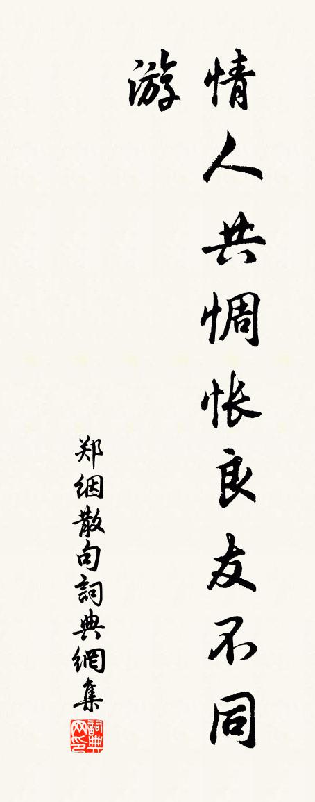 詩詞名句歷史字典書法欣賞書法字典國語詞典說文解字康熙字典古漢語字典標 題 作 者 詩 句 句作者:鄭絪 朝代:唐代句原文情人共惆悵,良友不同游。詩詞問答問:句的作者是誰?答:鄭絪問:句寫於哪個朝代?答:唐代問:句是什麼體裁?答:句鄭絪句書法欣賞句書法作品注釋全唐詩:卷318-10詩詞推薦和尚善韻李洪〔宋代〕出郭尋幽興自長,叢林梅子未全黃。問禪欲契風幡話,宴坐聊參知見香。觸念未通成擊橛,安心無法是還鄉。卻憐和立齋書懷二首王柏〔宋代〕平生景風操,慷慨懷賦竹。恨無百畝地,相與種黃獨。只有滿架書,可寄千古目。何敢偭規矩,周容競追曲。彼不點絳唇曹勛〔宋代〕昏旦交時,箇中已有甘香味。咽同真液。便覺溫溫地。八一高蟠,光動重樓外。但留意。自然和氣。香滿崑崙水。句張夫人〔唐代〕游蜂乍起驚落墀,黃鳥銜來卻上枝。(《柳絮》)臨風重回首,掩淚向庭花。(《寄遠》)鏡中春色老,枕前秋夜賦殘雪釋乾康〔宋代〕六出奇花已住開,君城相次見樓台。時人莫馬和泥看,一片飛從天上來。清平閣虞儔〔宋代〕律身端合勵冰清,蒞政尤須稱物平。知是夫君深寓意,雅宜斯閣遂安名。池幽自足龜魚樂,林靜休教蟲鳥鳴。況復仲春再雪與禪衲夜話程公許〔宋代〕蓬萊不肯著痴仙,放去湖山一任顛。術不競時甘斂退,僧知同趣喜留連。春深半地雪盈盡,雲破遙林月一弦。撥盡頌古四十八首釋慧開〔宋代〕出得出不得,渠儂得自由。神頭並鬼面,敗闕當風流。玉香洞何澹〔宋代〕玉梅幾歲隔樊牆,剖破籓籬兩雁行。青眼相看到頭白,洞中無客自吹香。贈醫者鄧獻匡楊時〔宋代〕天地一氣猶冶甄,埏埴萬匯隨方圓。神形九藏通九野,八風中物如戈鋋。天元玉冊有遺義,探索始自三皇前。桑君答趙源仲仇遠〔宋代〕人到中年萬事慵,我今況是六旬翁。歸心已薄西湖水,餘力重修古泮宮。官里簡書尤可畏,案頭筆硯豈無功。邇來世居亭謝安之〔宋代〕後皇來何從,頓此八紘網。神皋塵冥冥,冠蓋爭勇往。研桑到白首,塞屋猶怏怏。云何石南牧,上印歸州黨。虛裝摸魚兒(詠小園晚春)衛宗武〔宋代〕小林巒、一年芳事,亂紅還又飛雨。生香冉冉花陰轉,雲擘滿空晴絮。游宴處。看樂意相關,庭下胎仙舞。歌聲緩南康邂逅江西吳運判劉過〔宋代〕萬里西征一葉舟,誰憐天地此生浮。初征秋浦雁飛處,又泊江南相葉洲。貧困盡從歸後見,雄豪半為病來休。十年和文與可洋川園池三十首 書軒蘇軾〔宋代〕雨昏石硯寒雲色,風動牙籤亂葉聲。庭下已生書帶草,使君疑是鄭康成。採桑子侯善淵〔元代〕吾輩可傷嗟。棄玄珠,流浪天涯。浮雲飛絮無根蒂,便心歧徑,隨他念起,舉步偏斜。聞早悟煙霞。仙景里、也好秋日陪使君飲章華台項安世〔宋代〕堂堂雲夢接天開,蓽路規模亦壯哉。自是邊城多古意,那堪秋日更荒台。諸侯聚散群雞宿,百代興亡一雁來。一舉暮春龜堂即事陸游〔宋代〕躑躅花開照眼明,緩扶藤杖繞廊行。流年又見一春過,苦雨略無三日晴。覓句未應妨熟睡,漱泉聊足解餘酲。鹿麛以同心之言其臭如蘭為韻寄李子先黃庭堅〔宋代〕摧藏褫冠冕,寂寞歸丘園。一瓢俱好學,伯仲吹篪塤。正以此易彼,高車擇朱門。得失固有在,難為欲人言。次韻伯父茶花蘇籀〔宋代〕烏咮傾藍雨春霽,瓊芳入眼霧冬昏。一枝膚雪壺中曜,靜幾低窗養晏溫。名句推薦情人怨遙夜,竟夕起相思。張九齡《望月懷遠》 少年聽雨歌樓上。紅燭昏羅帳。蔣捷《虞美人·聽雨》 窈窕淑女,君子好逑。佚名《關雎》 始憐幽竹山窗下,不改清陰待我歸。錢起《晚春歸山居題窗前竹 / 暮春歸故山草堂詩》 路逢俠客須呈劍,不是才人莫獻詩。佚名《增廣賢文·上集》 三冬暫就儒生學,千耦還從父老耕。陸游《觀村童戲溪上》 今士之用身,不若商人之用一布之慎也。墨子《墨子·47章 貴義》 淡雲孤雁遠,寒日暮天紅。徐昌圖《臨江仙·飲散離亭西去》 行吟坐嘯獨悲秋,海霧江雲引暮愁。陳子龍《秋日雜感(十首選一)》 仰天大笑出門去,我輩豈是蓬蒿人。李白《南陵別兒童入京》