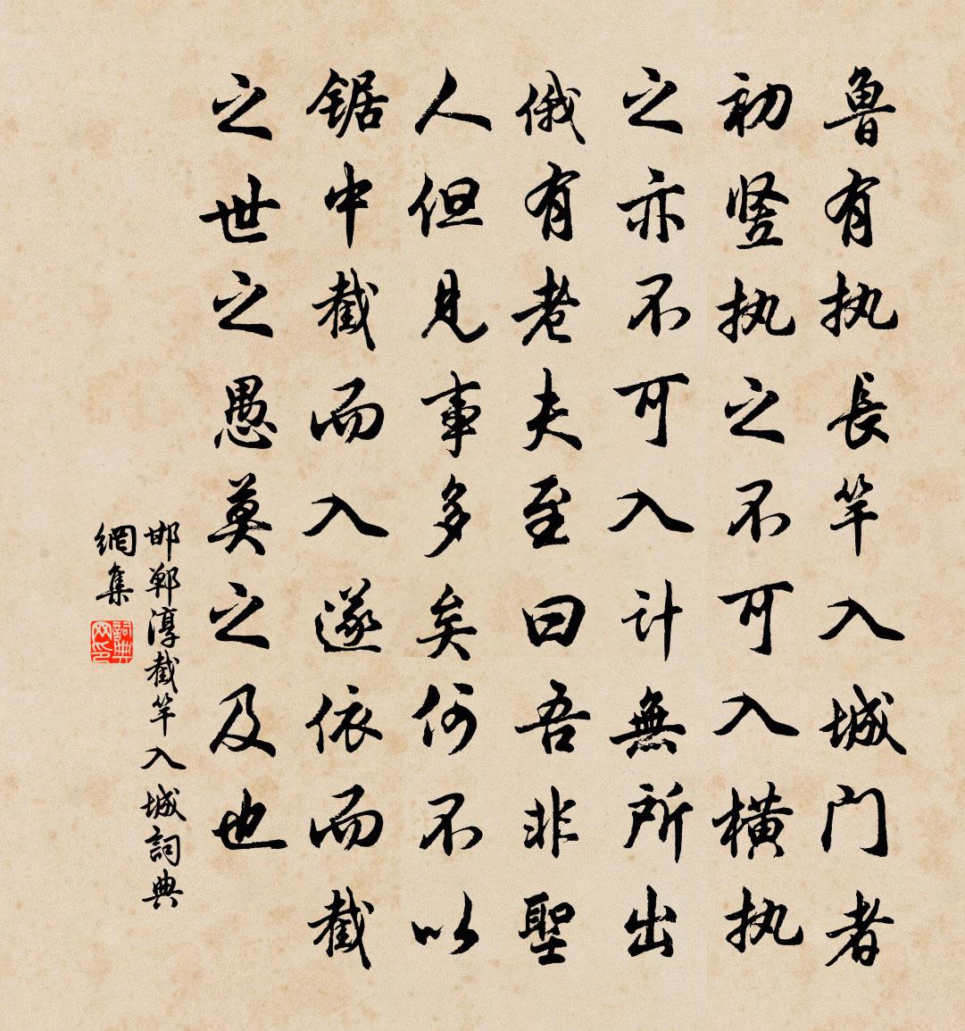 魯有執長竿入城門者,初豎執之,不可入。橫執之,亦不可入。計無所出。俄有老夫至,曰:“吾非聖人,但見事多矣,何不以鋸中截而入。”遂依而截之。世之愚,莫之及也。
