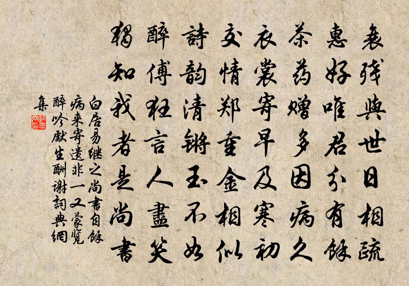 問:《繼之尚書自余病來寄遺非一又蒙覽醉吟先生…酬謝》的作者是誰?答:白居易