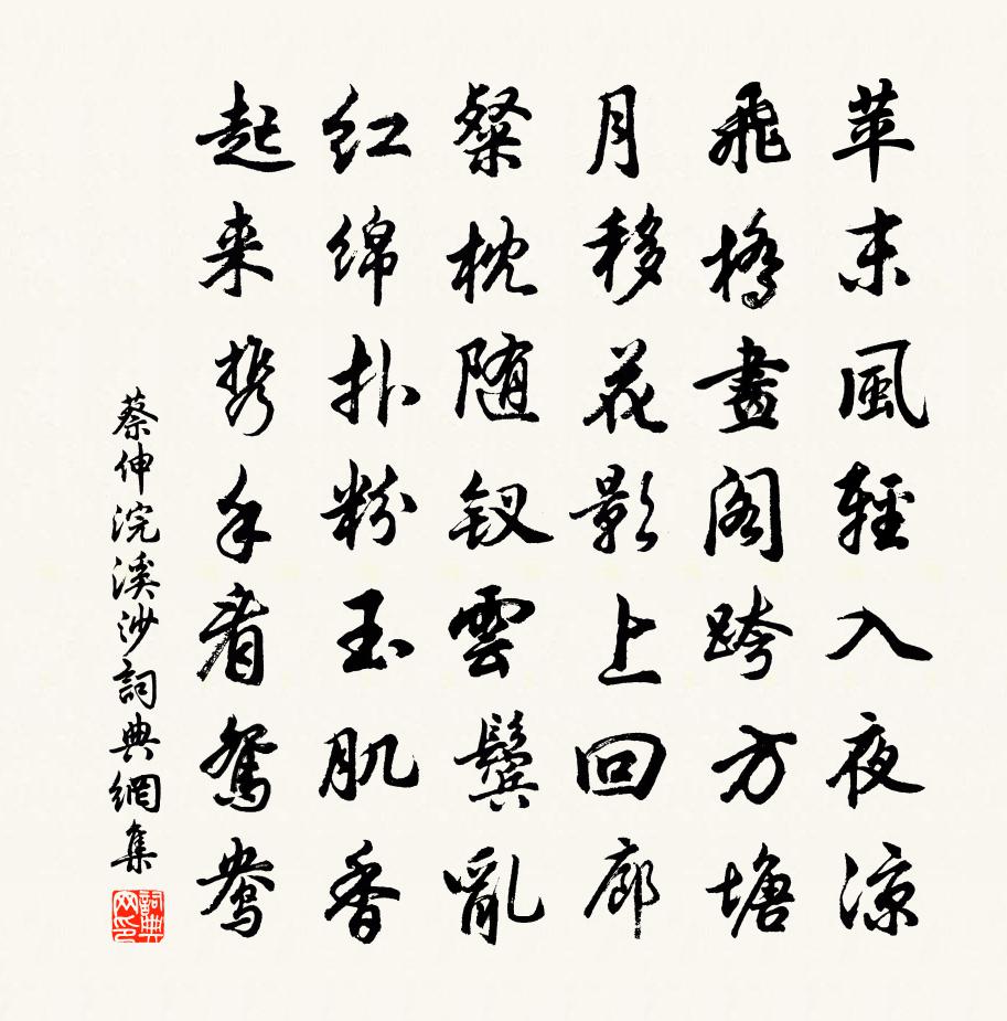 詩詞名句歷史字典書法欣賞書法字典國語詞典說文解字康熙字典古漢語字典標 題 作 者 詩 句 浣溪沙作者:蔡伸 朝代:宋代浣溪沙原文苹末風輕入夜涼。飛橋畫閣跨方塘。月移花影上迴廊。粲枕隨釵雲鬢亂,紅綿撲粉玉肌香。起來攜手看鴛鴦。詩詞問答問:浣溪沙的作者是誰?答:蔡伸問:浣溪沙寫於哪個朝代?答:宋代問:浣溪沙是什麼體裁?答:詞蔡伸浣溪沙書法欣賞浣溪沙書法作品詩詞推薦嘲黔南觀察南卓(一雲卓故人效呂溫作)呂溫〔唐代〕終南南太守,南郡在雲南。閒向南亭醉,南風變俗談。送李北山歸建康梁棟〔宋代〕貧賤有餓死,富貴履危機。東海不可漁,西山采無薇。四方已一氣,我今將安歸。西江月王之道〔宋代〕一別清風北牖,幾番明月西樓。斷腸千里致書郵。借問近來安否。歸路淮山過雨,歸舟江水澄秋。佳人應已數程頭嘉佑二年七月九日大雨寄永叔內翰梅堯臣〔宋代〕去年龍母沐,今年龍婦浴。民何競相傳,訛言初願戮。沐水不濕纓,浴波吞目睛。連歲果為患,準度非人情。島夷華陽吟三十首白玉蟾〔宋代〕白馬江頭笑一聲,紅光紫霧水中生。急抽匣內青蛇劍,攪得黃河徹底清。訪開公不遇鬍子期〔宋代〕獨步小庵清,憑軒數小星。霜華連野白,山色滿門青。風定松猶響,香銷室自馨。孤云何處宿,案上掩蓮經。【中呂】陽春曲_別情多情去王伯成〔元代〕別情多情去後香留枕,好夢回時冷透衾,悶愁山重海來深。獨自寢,夜雨百年心。秋雨未已客懷不佳夜誦少陵遣興詩至生涯能幾章甫〔宋代〕貧窮束縛人,智慧無所施。文藉紛滿前,不救寒與飢。佳哉江上山,歸隱寧無時。青山若有言,塵土君自羈。將入關行次湘陰曹松〔唐代〕背顧秦城在何處,圖書作伴過湘東。神鴉亂噪黃陵近,候雁斜沉夢澤空。打槳天連晴水白,燒田雲隔夜山紅。也知裘司直見訪留款戴復古〔宋代〕清風為我拂塵襟,坐聽先生說古今。道誼欲灰傷世變,利名如海溺人深。一言可重輕雙璧,片善相資直萬金。聞道懷舊居許渾〔唐代〕兵書一篋老無功,故國郊扉在夢中。藤蔓覆梨張谷暗。草花侵菊庾園空。朱門跡忝登龍客,白屋心期失馬翁。楚水郊廟歌辭。享惠昭太子廟樂章。登歌杜羔〔唐代〕因心克孝,位震遺芬。賓天道茂,軫懷氣分。發祗乃祀,咳嘆如聞。二歌斯升,以詠德薰。丁巳三月送周宰行李呂〔宋代〕中郎宜有後,餘慶在孫枝,學術堪時用,公卿半已知。五行人鮮儷,四字格尤奇。自此官清要,毋忘老布衣。水調歌頭劉克莊〔宋代〕敕使竟空反,公不出梅關。當年玉座記憶,仄席問平安。羽扇尉佗城上,野服仙遊閣下,遼鶴幾時還。賴有蜀耆舊守居園池雜題二樂榭文同〔宋代〕暖山孰雲靜,漢水亦非動。二見因妄生,仁智何常用。絕句(一作憶友人)喻鳧〔唐代〕銀地無塵金菊開,紫梨紅棗墮莓苔。一泓秋水一輪月,今夜故人來不來。田間陳天麟〔宋代〕經營一飽慰枯腸,稻作黃雲帶雨香。溪上煙橫秋入畫,樹梢風細晚分涼。交遊斷絕山當戶,歲月侵尋竹過牆。斗酒有期不至姚月華〔唐代〕銀燭清尊久延佇,出門入門天欲曙。月落星稀竟不來,煙柳朧朣鵲飛去。浣溪沙(賞酴醿)葛勝仲〔宋代〕一夜狂風盡海棠。此花天遣殿群芳。芝蘭百濯見真香。勸客淋浪燈底韻,惱人魂夢枕邊囊。一枝插不□□□。雨中示鄰里陸游〔宋代〕寒風吹細雨,白晝見日罕。經旬廢讀書,天豈成我嬾?比鄰各無聊,會面苦不款。未嘗燒茶鐺,而況把酒碗。高談名句推薦相知無遠近,萬里尚為鄰。張九齡《送韋城李少府》 轅門菊酒生豪興,雁塞風雲愜壯遊。王瓊《九日登花馬池城》 君去滄江望澄碧,鯨鯢唐突留餘跡。李白《赤壁歌送別》 善禦敵者,正兵先合,而後扼之,此必勝之術也。尉繚《尉繚子·兵令上》 留春不住,費盡鶯兒語。王安國《清平樂·春晚》 客愁全為減,舍此復何之?杜甫《後游》 遠水不救近火。韓非及後人《韓非子·說林上》 荷葉羅裙一色裁,芙蓉向臉兩邊開。王昌齡《採蓮曲》 不吹毛而求小疵,不洗垢而察難知。韓非及後人《韓非子·大體》 里仁為美,擇不處仁,焉得知?孔子弟子《論語·里仁篇》