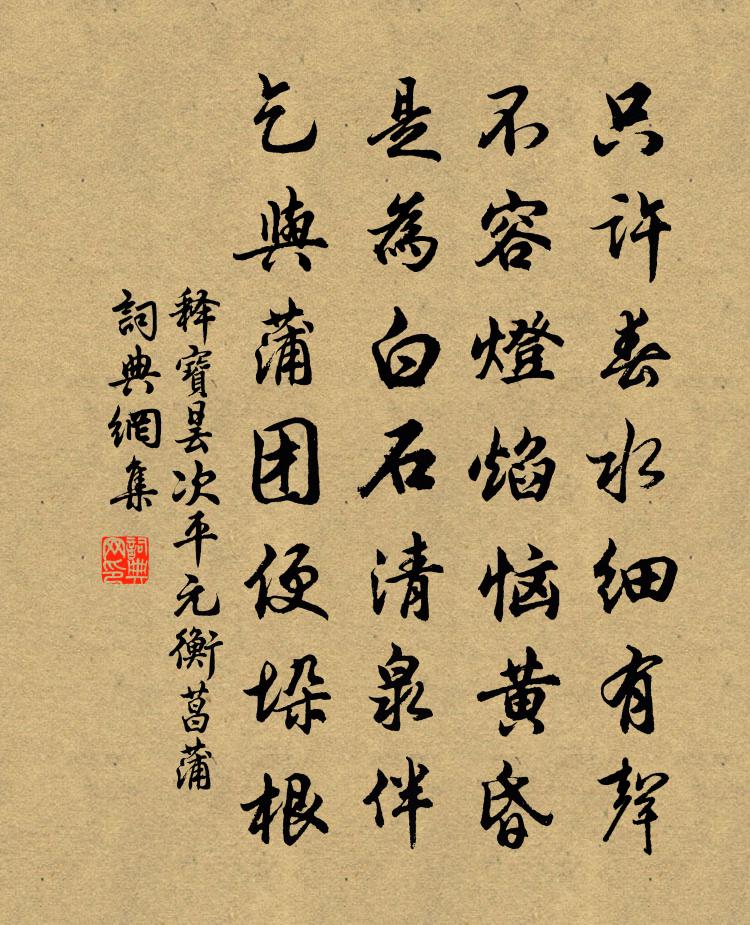 詩詞名句歷史字典書法欣賞書法字典國語詞典說文解字康熙字典古漢語字典標 題 作 者 詩 句 次平元衡菖蒲作者:釋寶曇 朝代:宋代次平元衡菖蒲原文只許春水細有聲,不容燈焰惱黃昏。是為白石清泉伴,乞與蒲1~1團便垛根。詩詞問答問:次平元衡菖蒲的作者是誰?答:釋寶曇問:次平元衡菖蒲寫於哪個朝代?答:宋代釋寶曇次平元衡菖蒲書法欣賞次平元衡菖蒲書法作品詩詞推薦天平方丈梅下見持要舊題趙孟堅〔宋代〕枯梅一樹半斜欹,繞匝行行欲詠詩。忽覿季難遺墨在,西風吹淚滿髯絲。燕河南府秀才得生字韓愈〔唐代〕吾皇紹祖烈,天下再太平。詔下諸郡國,歲貢鄉曲英。元和五年冬,房公尹東京。功曹上言公,是月當登名。乃選送陳表道倅岳陽樓鑰〔宋代〕垂上青雲去,如何乘貳車。輕為千里別,時寄幾行書。剸劇才無滯,傳家學有餘。當塗足知己,應不費吹噓。滿江紅 中秋夜潮史達祖〔宋代〕萬水歸陰,故潮信、盈虛因月。偏只到、涼秋半破,鬥成雙絕。有物揩磨金鏡淨,何人拿攫銀河決。想子胥、今夜送張錄事誠二首方回〔宋代〕歙州江見底,錄事亦如之。休吏早封印,訪僧閒著棋。舊鞍羸馬出,矮屋破簾垂。行處與住處,官清人不知。醉蓬萊(壽)張元乾〔宋代〕對小春桃艷,曲室爐紅,乍寒天氣。七葉蓂開,應金章通貴。夢草銀鉤,燦花珠唾,是素來風味。滿腹經綸,回天慶梅州劉侯修葺程鄉學宮落成三章林陶〔宋代〕宣聖南面,珠旒袞章。十哲侑坐,群賢繢廊。六齋分列,國小峙傍。談經議道,春祠秋嘗。菩薩蠻·風柔日薄春猶早李清照〔宋代〕風柔日薄春猶早,夾衫乍著心情好。睡起覺微寒,梅花鬢上殘。故鄉何處是?忘了除非醉。瀋水臥時燒,香消酒未臨江仙杜安世〔宋代〕太史占天雲物好,初陽律合黃鍾。日纏南極北郊風。雪花先柳絮,飛舞透簾櫳。聖運時和兼歲稔,歌歡處處皆同。昭君村蘇轍〔宋代〕峽女王嬙繼屈須,入宮曾不愧秦姝。一朝遠逐呼韓去,遙憶江頭捕鯉魚。江上大魚安敢釣,轉柁橫江筋力小。深邊喜雨示兒侄丘葵〔宋代〕維天降靈雨,雖遲良勝無。百穀頓蘇蘇,民憂不少紓。次韻江朝宗梅花高文虎〔宋代〕新新數點照疎籬,又折今生第一枝。只為知心無著處,雪中獨立最多時。有嘆蘇泂〔宋代〕古屋殘僧住,孤墳亂蟻穿。山稜人踏減,灘石浪搓圓。毀譽無終日,功名有百年。予方辜壯負,渠得戀華顛。殘花韓偓〔唐代〕餘霞殘雪幾多在,蔫香冶態猶無窮。黃昏月下惆悵白,清明雨後寥梢紅。樹底草齊千片淨,牆頭風急數枝空。西園再題浯溪盧察〔宋代〕逆孽滔天亂大倫,忠邪淆雜竟何分。欲知二聖巍巍力,止在浯溪一首文。贈皎然上人周賀〔唐代〕竹庭瓶水新,深稱北窗人。講罷見黃葉,詩成尋舊鄰。錫陰迷坐石,池影露齋身。苦作南行約,勞生始問津。流夜郎題葵葉李白〔唐代〕慚君能衛足,嘆我遠移根。白日如分照,還歸守故園。頌一百則釋重顯〔宋代〕翠岩示徒,千古無對。關字相酬,失錢遭罪。潦倒保福,抑揚難得,嘮嘮翠岩,分明是賊。白珪無玷,誰辨真假。和三鄉詩李昌鄴〔唐代〕紅粉蕭娘手自題,分明幽怨發雲閨。不應更學文君去,泣向殘花歸剡溪。三月十六日作陸游〔宋代〕石筍街西風景幽,醉眠萬事付悠悠。倦遊我已七年客,促駕春無三日留。枝上蝶稀紅藥老,舍中蠶起綠桑柔。功名名句推薦天際兩蛾凝黛,愁與恨、幾時極。韓元吉《霜天曉角·題採石蛾眉亭》 蜂須輕惹百花心,蕙風蘭思寄清琴。薛昭蘊《浣溪沙·握手河橋柳似金》 天闕象緯逼,雲臥衣裳冷杜甫《游龍門奉先寺》 性靈熔匠,文章奧府。淵哉鑠乎,群言之祖。劉勰《文心雕龍·宗經》 目妄視則淫,耳妄聽則惑,口妄言則亂。劉安及其門客《淮南子·主術訓》 暮雲收盡溢清寒。銀漢無聲轉玉盤。蘇軾《陽關曲 / 中秋月》 風蒲獵獵小池塘。過雨荷花滿院香。李重元《憶王孫·夏詞》 沉憂能傷人,綠鬢成霜蓬。李白《怨歌行》 西風滿天雪,何處報人恩。齊己《劍客》 來歲花前。又是今年憶去年。呂本中《減字木蘭花·去年今夜》