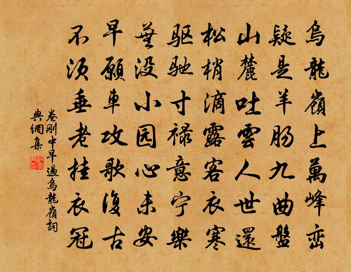 詩詞名句歷史字典書法欣賞書法字典國語詞典說文解字康熙字典古漢語字典標 題 作 者 詩 句 早過烏龍嶺作者:卷剛中 朝代:宋代早過烏龍嶺原文烏龍嶺上萬峰巒,疑是羊腸九曲盤。山麓吐雲人世還,松梢滴露客衣寒。驅馳寸祿意寧樂,蕪沒小園心未安。早願車攻歌復古,不須垂老掛衣冠。詩詞問答問:早過烏龍嶺的作者是誰?答:卷剛中問:早過烏龍嶺寫於哪個朝代?答:宋代卷剛中早過烏龍嶺書法欣賞早過烏龍嶺書法作品詩詞推薦次韻子云盱眙道中三首韓元吉〔宋代〕江南淮北市初通,人語忻忻作好風。抱耒只思耕隴底,買船誰復渡遼東。向來熊耳真投甲,此去天山擬掛弓。上策用洪景之韻送郭子山強至〔宋代〕別筵那得易為情,別酒連連只自傾。車馬縱游憐客興,江湖幽適負吾生。盤中異味歸南食,篋里新詩記北行。文史送懷古師歸蜀釋行肇〔宋代〕山落雲陽外,去程寒接巴。劍江連漢直,棧閣掛空斜。聽錫樵停斧,窺禪鳥立槎。舊房春到晚,深徑始開花。雅安人日次舊韻二首蘇軾〔宋代〕人日滯留江上村,定知芳草怨王孫。題詩寄遠方揮翰,扶杖登高獨出門。柳色忍看成感嘆,花前歸思自飛翻。浮陽晚鶯二首張耒〔宋代〕青竹萬葉一霜摧,何事流鶯去復回。啼鵊已摧芳草歇,春風安肯為君來。南風歌佚名〔先秦〕南風之薰兮,可以解吾民之慍兮。南風之時兮,可以阜吾民之財兮。餘干月夜趙蕃〔宋代〕風月隨地有,溪山天下稀。臨流醒客寐,靜夜覺漁歸。浥浥露侵鬢,飛飛螢點衣。鷺鷗棲亦穩,知我故忘機。奉和司封使君春日回文之作朱長文〔唐代〕佳景更同民共樂,俊髦皆集盛飛觴。花隨客醉還成句,柳贈人行欲斷腸。斜月上時霞散綺,暖風來處寢凝香。華年己已秋七月不雨人心焦然乃戊午齋宿致城隍清牟巘五〔宋代〕五神萃止足精神,迅發風霆一欠伸。能事莫嫌相迫促,門前多少望霓人。奉和魯望閒居雜題五首寺鐘暝皮日休〔唐代〕百緣斗藪無塵土,寸地章煌欲布金。重擊蒲牢唅山日,冥冥煙樹睹棲禽。巾子山又雨范成大〔宋代〕百日籃輿因局跧,三晨泥阪兀躋攀。晚晴幸自墊江縣,今雨奈何巾子山。樹色於人殊漠漠,雲容憐我稍班班。如今宴黃狀元大任史彌堅〔宋代〕月色花光正可人,笙歌會處喜津津。跨鰲海上文章客,攬轡天隅禮樂臣。丹碧屏間三月暮,玻璃杯裹一團春。暫聽舟行青溪道中入歙十二首方回〔宋代〕立岸兒童看客過,人煙近處放牛多。萬株漫自栽桑柘,一縷何曾織綺羅。題崔端公園林李端〔唐代〕上士愛清輝,開門向翠微。抱琴看鶴去,枕石待雲歸。野坐苔生席,高眠竹掛衣。舊山東望遠,惆悵暮花飛。夏日辨玉法師茅齋孟浩然〔唐代〕夏日茅齋里,無風坐亦涼。竹林新筍稚,藤架引梢長。燕覓巢窠處,蜂來造蜜房。物華皆可玩,花蕊四時芳。錢塘傅夢得〔宋代〕蒼茫空闊海雲開,浙水東西隔岸隈。我到龍山呼渡晚,誰從漁浦趁潮回。驀驚塞雁聲嘹嚦,靜看沙鷗獨往來。山外益州城西張超亭觀妓盧照鄰〔唐代〕落日明歌席,行雲逐舞人。江前飛暮雨,粱上下輕塵。冶服看疑畫。妝樓望似春。高車勿遽返,長袖欲相親。贈綦大將軍方回〔宋代〕先皇玉帶親解賜,加侑金錢千百億。登時築壇拜大將,隨意委禽聘賢室。前茅出鎮萬貔貅,東南五湖天半壁。鳳凰幽居書事陸游〔宋代〕莫嘆人間苦不諧,清時有味是歸來。已因積毀成高臥,更借陽狂護散才。正欲清言聞客至,偶思小飲報花開。紛紛祝英台近 題錢德鈞水村圖 以上二首見珊瑚木湯彌昌〔元代〕染秋雲,圖澤國,野趣入遊戲。能事何須,五日畫一水。重重楊柳陂塘,茅茨村落,鱸鄉外、西風漁計。晚煙霽。名句推薦看來豈是尋常色,濃淡由他冰雪中。曹雪芹《詠紅梅花得“紅”字》 真積力久則入。荀子《荀子·勸學》 秋陰不散霜飛晚,留得枯荷聽雨聲。李商隱《宿駱氏亭寄懷崔雍崔袞》 畫虎畫皮難畫骨,知人知面不知心。佚名《增廣賢文·上集》 致治之本,惟在於審。量才授職,務省官員。吳兢《貞觀政要·卷三·論擇官》 淅淅西風淡淡煙,幾點疏疏雨。葛立方《卜運算元·席間再作》 翠娥執手送臨歧,軋軋開朱戶柳永《採蓮令·月華收》 心有疑,隨札記。就人問,求確義。李毓秀《弟子規·餘力學文》 但使龍城飛將在,不教胡馬度陰山。王昌齡《出塞二首》 治大者不治細,成大功者不成小列子及其弟子《列子·楊朱》