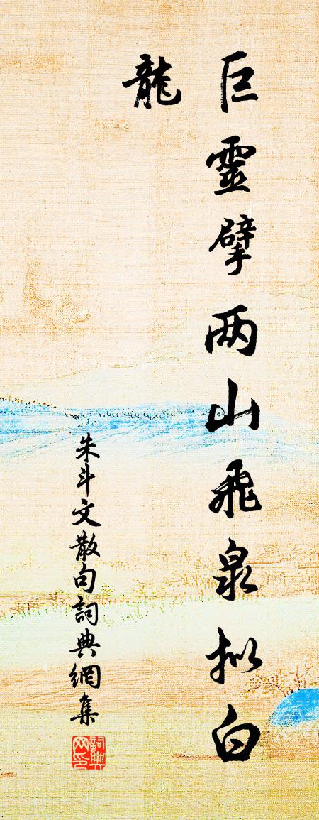 詩詞名句歷史字典書法欣賞書法字典國語詞典說文解字康熙字典古漢語字典標 題 作 者 詩 句 句作者:朱鬥文 朝代:宋代句原文巨靈擘兩山,飛泉擬白龍。詩詞問答問:句的作者是誰?答:朱鬥文問:句寫於哪個朝代?答:宋代朱鬥文句書法欣賞句書法作品詩詞推薦秋日天平驛書事祖無擇〔宋代〕孤館無人慰寂寥,感時情抱楚旌搖,縱橫著的秋聲起,早晚連空殺氣消。衰鬢已同潘騎省,壯心猶羨霍嫖姚。誓江題扇集句五首陳造〔宋代〕竹里高亭燈燭光,月移花影上西廂。蔗漿金碗冰盤凍,始信人間五月涼。雜曲歌辭。十二月樂辭。五月李賀〔唐代〕雕玉押簾上,輕縠籠虛門。井汲鉛華水,扇織鴛鴦文。回雪舞涼殿,甘露洗空綠。羅袖從徊翔,香汗沾寶粟。二絕句張耒〔宋代〕衙齋無事雨初晴,山澤有容春向深。何物東風吹不散,只應多病謫官心。寄常征君杜甫〔唐代〕白水青山空復春,征君晚節傍風塵。楚妃堂上色殊眾,海鶴階前鳴向人。萬事糾紛猶絕粒,一官羈絆實藏身。開州壽崔西清二首洪咨夔〔宋代〕幾年生一賢,大任天所授。三光五嶽氣,半點無缺漏。胸中老規摹,超出造化囿。靜為動之機,燕坐運宇宙。艮居遷入新居後客至偶成汪莘〔宋代〕方壺客去偃雲床,槐柳陰陰日逢長。睡起不知天早晚,問人山頂是斜陽。久不得張喬訊息(一本題下有有寄二字)鄭谷〔唐代〕天末去程孤,沿淮復向吳。亂離何處甚,安穩到家無。樹盡雲垂野,檣稀月滿湖。傷心繞村落,應少舊耕夫。會稽頌越王諸葛興〔宋代〕睇禹陵兮巋然,邃珍館兮蟺蜎。敞別室兮遺象,崇英霸兮千年。諗越民兮非黷祀,推世家兮自遷史。肇無餘兮開國呈申屠御史忍齋二首王奕〔宋代〕世家矯矯漢申屠,博古能今命世儒。豪傑雅知真北學,扶搖久已作南圖。揚州台近催騎鶴,闞水秋深尚憶鱸。好載賦枸杞蒲壽宬〔宋代〕神草如蓬世不知,壁間牆角自離離。辛盤空芼仙人杖,藥斧惟尋地骨皮。千歲未逢朱孺子,四時堪供陸天隨。霜晨風入松晏幾道〔宋代〕柳陰庭院杏梢牆。依舊巫陽。鳳簫已遠青樓在,水沈誰、復暖前香。臨鏡舞鸞離照,倚箏飛雁辭行。墜鞭人意自淒偈頌一百零四首釋紹曇〔宋代〕鑿透耳聾,板夾背傴。只要醫行,不管人苦。拄杖子,不別時宜,強行直路。大地羊腸紅棘林。何處去。念奴嬌(三友同飲,借赤壁韻)辛棄疾〔宋代〕論心論相,便擇術滿眼,紛紛何物。踏碎鐵鞋三百緉,不在危峰絕壁。龍友相逢,窪樽緩舉,議論敲冰雪。何妨人西山泳長老請贊釋大觀〔宋代〕馽空雲蒂,補太虛縫。雖在窮相手頭,卻要因人發用。等閒撞著個冤家,活脫臨時看拈弄。和鮑倅吳芾〔宋代〕人生出征苦難全,老矣安能了世緣。聊向此時看捉月,敢希他日上凌煙。行吟雖愧無新語,坐食猶欣有故廛。若得漫興二首劉克莊〔宋代〕送老虛無寂寞濱,聖朝乃復記遺民。□摛溫洛滎河筆,藻飾寒灰槁木身。雖拜老龍呼學士,肯教夜鶴怨山人。它時澤卿示蘭亭考作蕭翼取蘭亭辭黃疇若〔宋代〕長廊睥睨來者誰,出門解後渠得知。不言使者求遺書,只言浴繭當及時。從容與語益款洽,論到翰墨尤瑰奇。山僧次韻和長文紫微春雨二首梅堯臣〔宋代〕年年潑火雨,苦作清明寒。梨花猶半綻,塘水已迷漫。愁看日更永,冷漏夜未闌。酒沫起玉盞,燭淚生銅盤。春衣憶書鄭剛中〔宋代〕先子晚漂泊,家藏無全書。屋壁零落者,雨壞鼠竊餘。餘生苦嗜古,葺漢十載逾。上自大父來,手澤之沾濡。下自名句推薦寧教我負天下人,休教天下人負我。羅貫中《三國演義·第四回》 東風且伴薔薇住,到薔薇、春已堪憐。張炎《高陽台·西湖春感》 以少總多,情貌無遺矣。劉勰《文心雕龍·物色》 涼葉蕭蕭散雨聲,虛堂淅淅掩霜清。元好問《秋懷》 水風輕,蘋花漸老,月露冷、梧葉飄黃。柳永《玉蝴蝶·望處雨收雲斷》 獨在異鄉為異客,每逢佳節倍思親。王維《九月九日憶山東兄弟 / 九月九憶山東兄弟》 揚雲霓之晻藹兮,鳴玉鸞之啾啾。屈原《離騷》 午窗睡起鶯聲巧,何處喚春愁?朱淑真《眼兒媚·風日遲遲弄輕柔》 樹德務滋,除惡務本佚名《尚書·周書·泰誓》 夭夭園桃,無子空長。曹丕《煌煌京洛行》