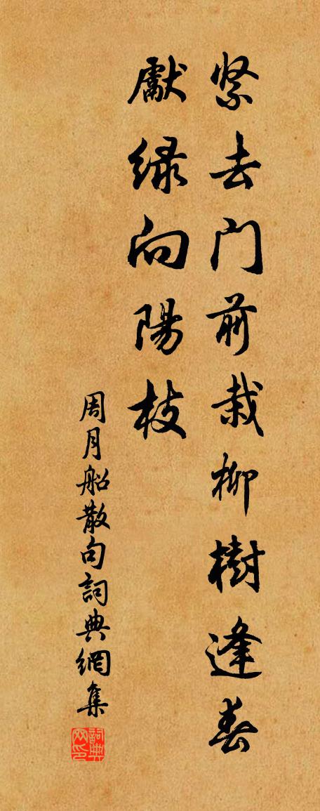詩詞名句歷史字典書法欣賞書法字典國語詞典說文解字康熙字典古漢語字典標 題 作 者 詩 句 句作者:周月船 朝代:宋代句原文緊去門前栽柳樹,逢春先綠向陽枝。詩詞問答問:句的作者是誰?答:周月船問:句寫於哪個朝代?答:宋代周月船句書法欣賞句書法作品詩詞推薦頌十玄談一色釋印肅〔宋代〕枯木岩前差路多,不行鳥道轉譊訛。狐狸引入豪豬窟,不久成團被死魔。思佳客呂渭老〔宋代〕深夜槐風析酲惺。露荷涼氣滿西庭。憑欄小語花梢月,緩步偷拈石上螢。秋意早,暑衣輕。殢人索酒復同傾。大家過富池題澄江閣二首王之道〔宋代〕江山南北限,風月古今情。舉酒杯還覆,逢人蓋暫傾。目窮飛鳥落,心逐斷雲橫。小市支殘屋,嚴祠列畫楹。晚煙送朱放靈一〔唐代〕苦見人間世,思歸洞裡天。縱令山鳥語,不廢野人眠。記夢李似權〔宋代〕石壁蒼苔露未乾,小池射日石團團,弄泉漱玉歸何暮,風卷橫雲細細看。山中紅葉張嵲〔宋代〕青女炫微巧,染絳妬春工。如何青林表,忽有萬炬紅。渾疑在絕塞,斥堠傳夕烽。爛爛爍晚日,燁燁含天風。錦繡晚潮范成大〔宋代〕東風吹雨晚潮生,疊鼓催船鏡里行。底事今年春漲小?去年曾與畫橋平。春詞(一作沈亞之詩)施肩吾〔唐代〕黃鳥啼多春日高,紅芳開盡井邊桃。美人手暖裁衣易,片片輕雲落剪刀。菩薩蠻 湖上即事劉因〔元代〕樓前曲浪歸橈急。樓中細雨春風涇。終日倚危闌。故人湖上山。高情渾似舊。只在東風瘦。薄晚去來休。裝成一段偈頌一百零九首釋可湘〔宋代〕娑羅雙樹間,瞿曇展會睡。一睡二千年,而今醒也未。醒了也,足觀瞻。山花開似錦,澗水湛如藍。理公岩董嗣杲〔宋代〕西來識得此雲根,終此雲根護法門。由晉尚傳斯語在,到今休想舊岩存。天開教觀香燈盛,人仰胡僧相貌尊。行果展掃先塋省伯氏用前韻袁說友〔宋代〕久作弟兄別,相看笑語通。寒窗酬酒夜,落月對床風。志得寧論晚,名高不畏窮。君看天下事,一一漫雕空。欽聖憲肅皇后輓詞二首陳師道〔宋代〕二妃端協帝,三後共興周。決策天同力,收功語不流。權宜從殺禮,末命尚深憂。鬱郁佳城閉,終天配壽丘。寄黃龍清老三首黃庭堅〔宋代〕風前橄欖星宿落,日下桄榔羽扇開。昭默堂中有相憶,清愁忽遣化人來。送職方王郎中吏部劉員外自太原鄭相公幕繼奉征書歸省署李山甫〔唐代〕雙鳳銜書次第飛,玉皇催促列仙歸。雲開日月臨青瑣,風捲菸霞上紫微。蓮影一時空儉府,蘭香同處撲堯衣。此生照老用韻謝復作李流謙〔宋代〕了了三生事,寥寥一念初。未忘牛背約,端憶籠中書。塵劫空相隔,交情本不疎,焚香咨勝義,驕色已先鋤。寄題王俊卿看山堂陸游〔宋代〕閉戶終年嬾出遊,北山山色可消愁。何時一掃胡塵盡,更約同吟太華秋。玩丹砂 贈堂下道人馬鈺〔元代〕舍了家緣更捨身。即非餵虎濟飢鷹。幻軀識破自忘形。無恥無羞無染著,逍遙坦蕩氣神清。心中真佛現光明。無夢令馬鈺〔元代〕物外茅齋映竹。一飽殘羹冷粥。樂亦在其中,記得風仙叮囑。叮囑。叮囑。保養靈明性燭。十二月二十六日早起雪已三寸許夜來初不覺也虞儔〔宋代〕曉來眼界忽然新,一色瓊瑤與爛銀。人事乖時空請禱,天心回後只逡巡。不教三白孤殘臘,要與千家作好春。宿麥名句推薦新秋逢閏,鵲橋重駕,兩度人間乞巧。顧太清《鵲橋仙·雲林矚題閏七夕聯吟圖》 沉憂能傷人,綠鬢成霜蓬。李白《怨歌行》 晚來天,空悄然,孤眠,枕檀雲髻偏。孫光憲《河傳·花落》 罔游於逸,罔淫于樂。佚名《尚書·虞書·大禹謨》 老驥伏櫪,志在千里。曹操《龜雖壽 / 神龜雖壽》 清明時節出郊原,寂寂山城柳映門。楊徽之《寒食寄鄭起侍郎》 行人莫便消魂去,漢渚星橋尚有期。晏幾道《鷓鴣天·梅蕊新妝桂葉眉》 猶有桃花流水上,無辭竹葉醉尊前。劉禹錫《憶江南·春去也》 情人怨遙夜,竟夕起相思。張九齡《望月懷遠》 仁義禮善之於人也,辟之若貨財粟米之於家也。荀子《荀子·大略》