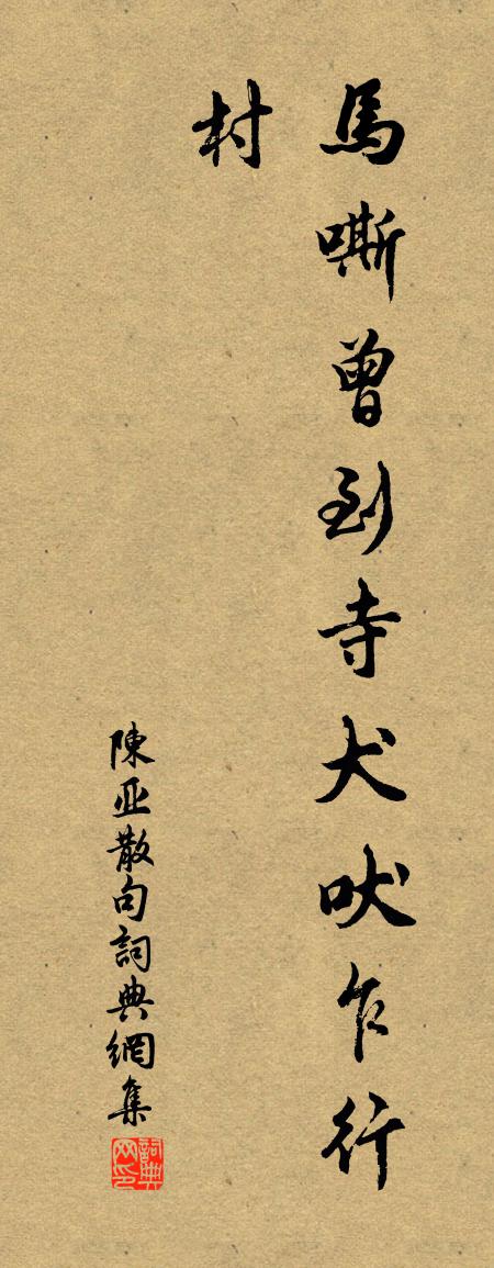 詩詞名句歷史字典書法欣賞書法字典國語詞典說文解字康熙字典古漢語字典標 題 作 者 詩 句 句作者:陳亞 朝代:宋代句原文馬嘶曾到寺,犬吠乍行村。詩詞問答問:句的作者是誰?答:陳亞問:句寫於哪個朝代?答:宋代陳亞句書法欣賞句書法作品詩詞推薦送著作佐郎崔融等從梁王東征陳子昂〔唐代〕金天方肅殺。白露始專征。王師非樂戰。之子慎佳兵。海氣侵南部。邊風掃北平。莫賣盧龍塞。歸邀麟閣名。送李季允侍郎歸蜀五絕用禪房花竹幽為韻劉宰〔宋代〕日腳收新雨,禪房早得秋。重來應更好,誰與共清幽。記小圃花果二十首劉克莊〔宋代〕累累生滿樹,知我老而饕。絕勝齊三士,輕生為二桃。頌十玄談達本釋印肅〔宋代〕堪嗟去日顏如玉,常和白雲空裹宿。千回萬匝只如然,寥寥獨唱無生曲。初見劉二十八郎中有感白居易〔唐代〕欲話毗陵君反袂,欲言夏口我沾衣。誰知臨老相逢日,悲嘆聲多語笑稀。送楊君歸漢上歐陽修〔宋代〕我昔謫窮縣,相逢清漢陰。拂塵時解榻,置酒屢橫琴。介節溫如玉,嘉辭擲若金。趣當鄉士薦,無滯計車音。固陵道中三首文天祥〔宋代〕九天雲下垂,一雨作秋色。塵埃化泥塗,原野轉蕭瑟。十里一雙堠,狐兔臥荊棘。見說數年來,中州乍蘇息。登高丘而望遠李白〔唐代〕登高丘而望遠海,六鰲骨已霜,三山流安在?扶桑半摧折,白日沉光彩。銀台金闕如夢中,秦皇漢武空相待。精衛寄羅機宜竟陵督捕六首項安世〔宋代〕共是天家赤子,可憐地下遊魂。去草固嫌滋蔓,遏流須藕澄冰。野螺峰陳岩〔宋代〕野螺倒向空中立,迴旋縈成翠甲長。沫霧濡雲真得計,魚蝦舊侶莫相忘。送張無夢歸天台李維〔宋代〕金骨一何輕,瞳方鬢復青。樓居隱岩桂,飈馭別階蓂。玉宇藏丹訣,琱觴 * 醹。霞城中夕夢,懸想在彤庭。題金龜山如畫軒四首潘朝英〔宋代〕春潮暮落海門山,百艇齊飛牡蠣灘。分得魚暇歸野市,滿江鷗鷺夕陽間。思歸洪皓〔宋代〕緩頰難支大廈傾,腳踏車久稅阻歸程。慈顏萬里音書絕,忍看東風動此荊。蛾眉村旅舍作陸游〔宋代〕小雨初收景氣和,青苔狼藉落梅多。曲肱野店睡斜日,濯足溪橋鳴細波。久厭俗情生眼白,近承天詔賜顏酡。騎鯨古宮詞十首劉克莊〔宋代〕妾性尤柔順,相看滿面春。安知時態薄,偏妒入宮人。光孝寺作茶供方岳〔宋代〕一藤碎踏兩山雲,看盡朝嵐與夕曛。留得如來捨身相,共敲蒼雪了爐熏。寄靈武胡常侍方乾〔唐代〕青雲直上路初通,已在明君倚注中。欲遣為霖安九有,先令作相贊東宮。自從忠讜承天眷,更用文篇續國風。最是妙山孫元濟建閣江瀕以館往來士大夫余取韓文曾豐〔宋代〕真空元在我胸中,自外觀之枉費功。熟視主人參透處,也無實相也無空。喜儉北至送宗禮南行呂溫〔唐代〕洞庭舟始泊,桂江帆又開。魂從會處斷,愁向笑中來。惝怳看殘景,殷勤祝此杯。衡陽刷羽待,成取一行回。章靖馮公哀詞宋祁〔宋代〕睆簀綿疴革,中楹奠夢還。蕝儀猶在野,書副即藏山。友酹生芻潔,君恩刻印頒。一朝交臂失,寧復易睎顏。名句推薦士雖有學,而行為本焉。墨子《墨子·02章 修身》 天南地北雙飛客,老翅幾回寒暑。元好問《摸魚兒·雁丘詞 / 邁陂塘》 三軍可奪帥也,匹夫不可奪志也。佚名《論語十二章》 殘燈孤枕夢,輕浪五更風。徐昌圖《臨江仙·飲散離亭西去》 甘井近竭,招木近伐。墨子《墨子·01章 親士》 天子之怒,伏屍百萬,流血千里。劉向《戰國策·魏四·秦王使人謂安陵君》 只有天在上,更無山與齊寇準《詠華山》 繁華事散逐香塵,流水無情草自春。杜牧《金谷園》 睡起覺微寒。梅花鬢上殘。李清照《菩薩蠻·風柔日薄春猶早》 一曲高歌一樽酒,一人獨釣一江秋。王士禎《題秋江獨釣圖》