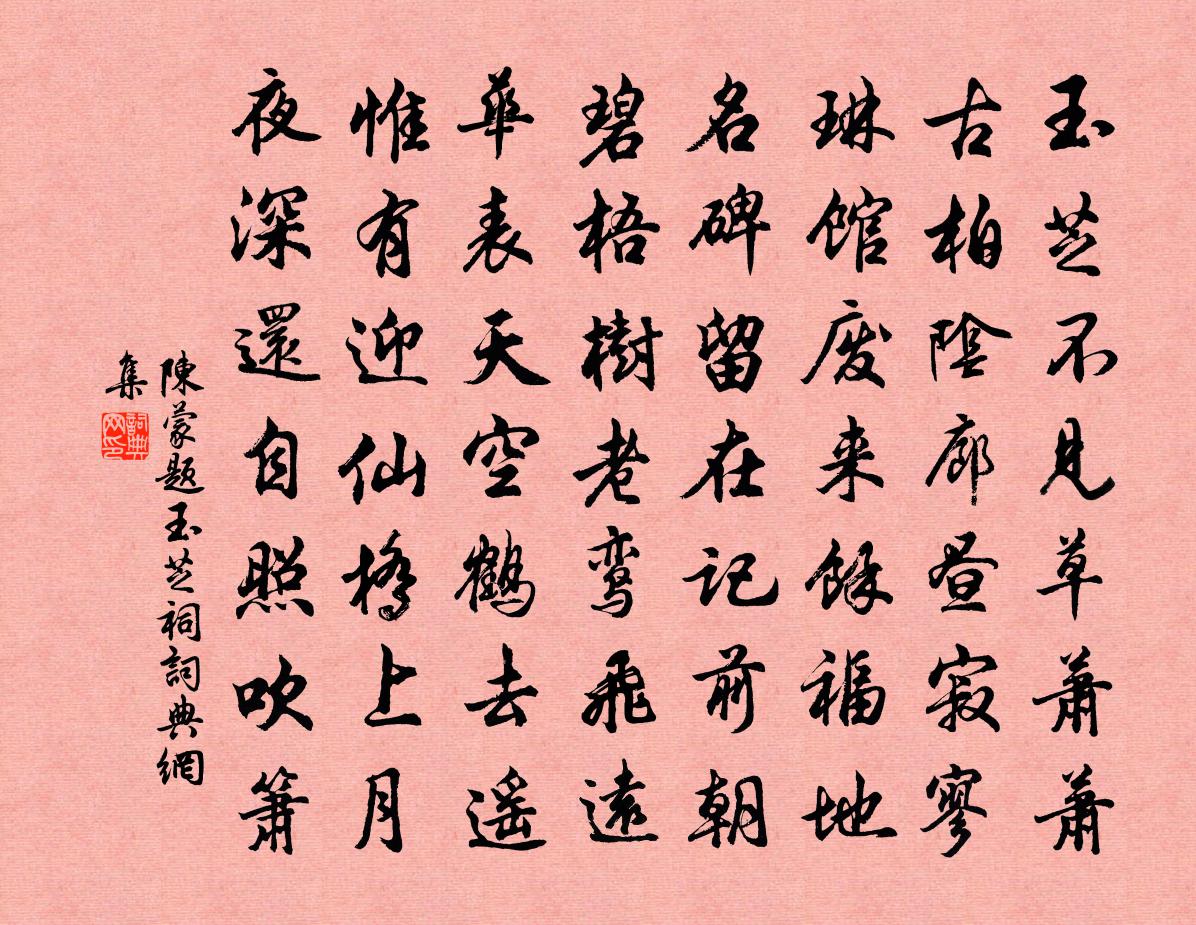 詩詞名句歷史字典書法欣賞書法字典國語詞典說文解字康熙字典古漢語字典標 題 作 者 詩 句 題玉芝祠作者:陳蒙 朝代:宋代題玉芝祠原文玉芝不見草蕭蕭,古柏陰廊晝寂寥。琳館廢來余福地,名碑留在記前朝。碧梧樹老鸞飛遠,華表天空鶴去遙。惟有迎仙橋上月,夜深還自照吹1~1簫。詩詞問答問:題玉芝祠的作者是誰?答:陳蒙問:題玉芝祠寫於哪個朝代?答:宋代陳蒙題玉芝祠書法欣賞題玉芝祠書法作品詩詞推薦侯人詩經〔先秦〕彼侯人兮,何戈與殳。彼其之子,三百赤芾。維鵜在梁,不濡其翼。彼其之子,不稱其服。維鵜在梁,不濡其咮[觀入試者李昴英〔宋代〕鍾撼雞鳴萬家起,月下紛紛白袍子。提壺挈榼春遊鬧,擎箱擐篋誰家徙。通衢隘塞行人絕,露坐欠伸奴跛倚。遠聞祖母哀輓二首洪咨夔〔宋代〕疊采春風裹,含飴愛獨深。卷卷行已訓,歷歷讀書箴。長憶違離語,難酬侍養心。微官稽執紼,東望淚盈襟。詠史上張良四首陳普〔宋代〕撩亂龍蛇掌上爭,罷來間掉四先生。一棚兒女皆煙散,留得松風萬古清。如夢令許有壬〔元代〕牆角黃葵都謝。開到玉簪花也。老子恰知秋,風露一庭清夜。瀟灑。瀟灑。高臥碧窗下。自述陸游〔宋代〕古井無由浪,浮雲一掃空。詩書修孔業,場圃嗣豳風。懼在饑寒外,憂形寤寐中。吾年雖日逝,猶冀有新功。句諶祜〔宋代〕世言如花人薄命,誰識如花入衛霍。只今保塞願稱臣,鬢蟬奪卻貂蟬勛。送林節推二首釋善珍〔宋代〕魁宿來臨幕,不同常郡僚。名高饒薦剡,官滿合歸朝。彩旆傾城送,清聲載路謠。麗譙雖未績,亦自出雲霄。山中有所思王嵒〔宋代〕零零夜雨漬愁根,觸物傷難了斷魂。莫怪杜鵑飛去盡,紫微花里有啼猿。自嘲二絕范成大〔宋代〕終日嘵嘵漫說空,觸來依舊與爭鋒;登時覺悟忙收拾,已是闇黎飯後鍾。春社陸游〔宋代〕柴門西畔枕陂塘,社雨新添一尺強。台省諸公方袞袞,故應分喜到耕桑。元夕端居感事四絕句張舜民〔宋代〕珠簾當面見玲瓏,白鶴仙人上下通。夜半蕊珠重命宴,鳴鞘聲落九霄中。雪晴晚望賈島〔唐代〕倚杖望晴雪,溪雲幾萬重。樵人歸白屋,寒日下危峰。野火燒岡草,斷煙生石松。卻回山寺路,聞打暮天鍾。久雨裘萬頃〔宋代〕園林清樾淨無塵,池沼黃流去有聲。不用飛花來點綴,但須霽日為澄清。過雍陶博士邸中飲(一作贈陳十四)殷堯藩〔唐代〕落葉下蕭蕭,幽居遠市朝。偶成投轄飲,不待致書招。塞雁沖寒過,山雲傍檻飄。此身何所似,天地一漁樵。宿難老堂張伯常〔宋代〕漆園秋淨夜堂虛,偶伴橫林隱者居。紙縐白雲垂帳厚,荻篩明月簾疏。玉棋子奪三軍令,金剪刀翻數體書。疏廣拂丘文定公輓詞樓鑰〔宋代〕同與隆興第,嘉禾見兩轓。瀛壖迂使節,蜀道送行軒。預草前須詔,驚傳易簀言。不堪鸞鏡舞,雙旐愴丘原。贈畫士林堯卿游彥舉〔宋代〕古稱名畫顧丹青,遺蹟遠紹難其人。邇來忽覩林堯卿,繪像工無殊絕倫。解後俾爾寫吾形,妙處一筆奪天真。始知望江南(暮春)蘇軾〔宋代〕春已老,春服幾時成。曲水浪低蕉葉穩,舞雩風軟紵羅輕。酣詠樂昇平。微雨過,何處不催耕。百舌無言桃李盡,拔灘方岳〔宋代〕大灘嶅嶅,小灘嘈嘈。石芒犖犖容刀,崩洪斗落與石鏖。風聲悲壯波聲豪,勢如萬馬之奔、群熊之嗥。並船欲上牽名句推薦貌言華也,至言實也,苦言藥也,甘言疾也。司馬遷《史記·七十列傳·商君列傳》 得寵思辱,居安思危。佚名《增廣賢文·上集》 木蘭舟上珠簾卷,歌聲遠,椰子酒傾鸚鵡盞。李珣《南鄉子·山果熟》 不畏浮雲遮望眼,自緣身在最高層。王安石《登飛來峰》 鴻羽難憑芳信短,長安猶近歸期遠。盧祖皋《倦尋芳·香泥壘燕》 出不入兮往不反,平原忽兮路超遠。屈原《國殤》 翠娥執手送臨歧,軋軋開朱戶柳永《採蓮令·月華收》 亭上秋風,記去年裊裊,曾到吾廬。辛棄疾《漢宮春·會稽秋風亭觀雨》 參差連曲陌,迢遞送斜暉。李商隱《落花》 大丈夫相時而動。曹雪芹《紅樓夢·第四回》