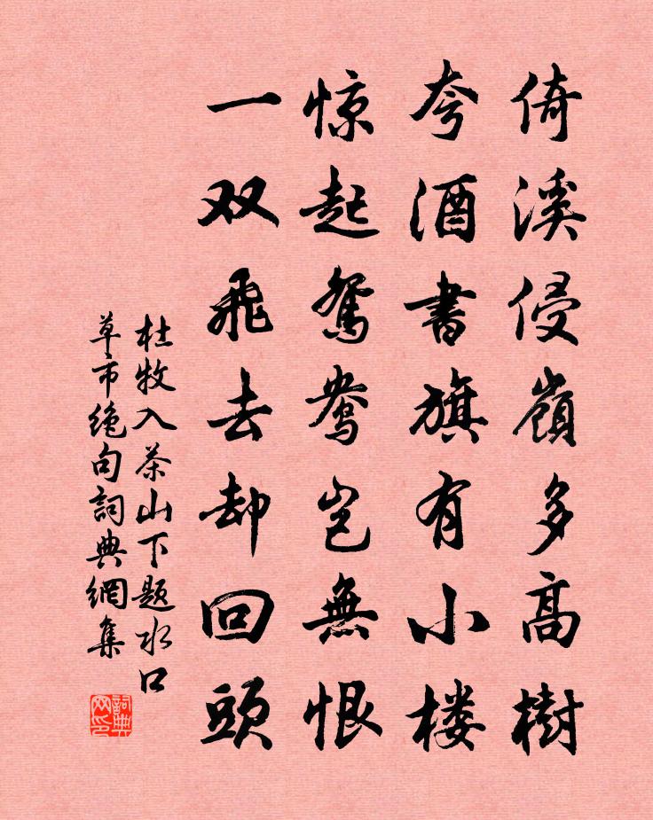 倚溪侵嶺多高樹,夸酒書旗有小樓。驚起鴛鴦豈無恨,一雙飛去卻回頭。