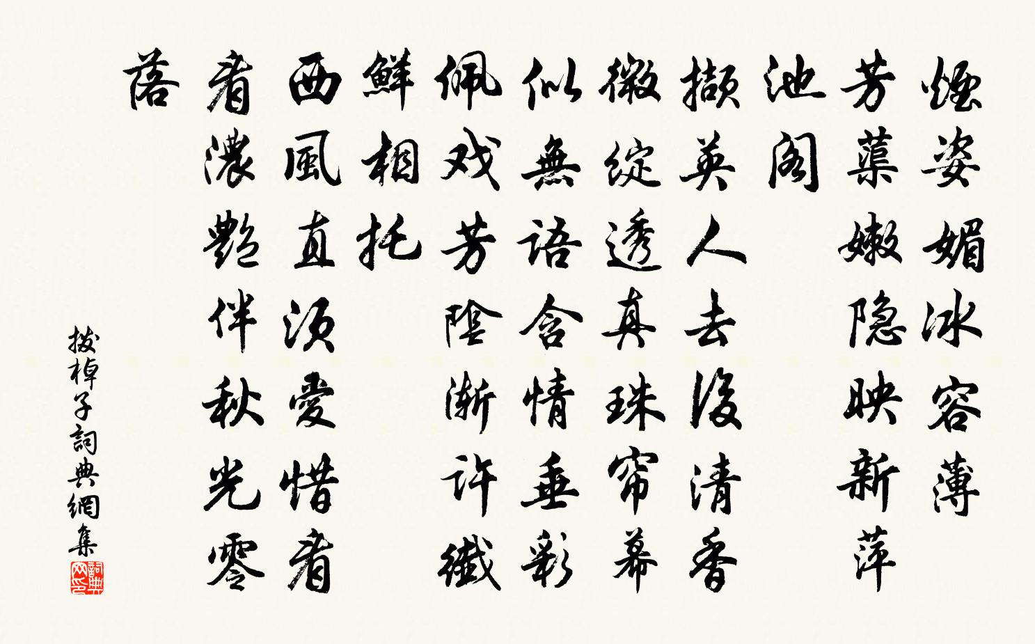煙姿媚,冰容薄。芳蕖嫩、隱映新萍池閣。