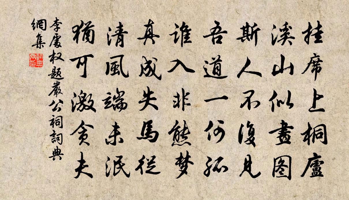 詩詞名句歷史字典書法欣賞書法字典國語詞典說文解字康熙字典古漢語字典標 題 作 者 詩 句 題嚴公祠作者:李處權 朝代:宋代題嚴公祠原文掛席上桐廬,溪山似畫圖。斯人不復見,吾道一何孤。誰入非熊夢,真成失馬從。清風端未泯,猶可激貪夫。詩詞問答問:題嚴公祠的作者是誰?答:李處權問:題嚴公祠寫於哪個朝代?答:宋代李處權題嚴公祠書法欣賞題嚴公祠書法作品詩詞推薦送楊尚書赴東川姚合〔唐代〕卻縠詩書將,銜恩赴梓州。繞身垂印綬,護馬執戈矛。劍閣和銘峭,巴江帶字流。從來皆惜別,此別復何愁。獨倚樓(更漏子三首)賀鑄〔宋代〕上東門,門外柳。贈別每煩縴手。一葉落,幾番秋。江南獨倚樓。曲闌乾,凝佇久。薄暮更堪搔首。無際恨,見閒酬別襄陽詩僧少微(詩中答上人歸夢之意)皎然〔唐代〕證心何有夢,示說夢歸頻。文字齎秦本,詩騷學楚人。蘭開衣上色,柳向手中春。別後須相見,浮雲是我身。玉樓春(五之一·大石調)柳永〔宋代〕昭華夜醮連清曙。金殿霓旌籠瑞霧。九枝擎燭燦繁星,百和焚香抽翠縷。香羅薦地延真馭。萬乘凝旒聽秘語。卜年莎衣楊朴〔宋代〕軟綠柔藍著勝衣,倚船吟釣正相宜。蒹葭影里和煙臥,菡萏香中帶雨披。狂脫酒家春醉後,亂堆漁舍晚晴時。直饒次韻徐應祺小樓韓元吉〔宋代〕瀲瀲清波泊路衢,垂垂高柳對扶疏。已知百尺樓堪臥,況有三重茅可居。我老詎能賡鮑謝,君才端合紹嚴徐。直須歸塗春晚楊冠卿〔宋代〕待得春歸人亦歸,風花撩亂撲征衣。清香十里荼蘼路,零落珠幢對晚暉。潯陽三題 並序白居易〔唐代〕廬山多桂樹,湓浦多修竹,東林寺有白蓮華,皆植物之貞勁秀異者,雖宮囿省寺中,未必能盡有。夫物以多為賤,鄭吏部開山路成二岩對棋於上因成二詩壽松王洋〔宋代〕向來本為買山田,饒得青松不費錢。更向青冥斸峰頂,放教南斗照臞仙。瑞鶴仙姚勉〔宋代〕燕歸簾半卷。正漏約瓊斗,笙調玉琯。蛾眉畫來淺。甚春衫懶試,夜燈慵翦。香溫夢暖。訴芳心、芭蕉未展。渺雙送林方叔赴范館陳著〔宋代〕家食城南擅獨賢,夜占奎壁半移躔。東風絳帳渾閒事,先世青氈是宿緣。與侄南隱等賡和戴復古〔宋代〕夢回啼鳥聒幽欞,古篆香菸結畫屏。談麈一揮塵事少,離騷才讀醉魂醒。閒居便是人間樂,克己何須座右銘。但了行香子佚名〔宋代〕清要無因,舉選艱辛。系書錢、須要十分。浮名浮利,虛苦勞神。嘆旅中愁,心中悶,部中身。雖抱文章,苦苦推次韻徐提舉游石湖三絕范成大〔宋代〕三徑荒蕪岫幌開,錦車何事肯徘徊。春風想為高人住,落絮殘花好在哉。出郊即事朱子恭〔宋代〕水滿牛耕犢後隨,早田大半已翻犁。趁時浸谷清明近,次第身針綠又齊。野步韓維〔宋代〕目倦風塵觀,身疲鞍馬行。春沙迎步潤,山雪照懷清。冰水初消色,林鴉欲乳聲。物華多感觸,一動故園情。雨後集湖上陸游〔宋代〕野水交流自滿畦,芳池新漲恰平堤。花藏密葉多時在,鶯占高枝盡日啼。繡袂竇裙催結束,金尊翠杓共提攜。白頭周宗廟歌 昭夏庾信〔南北朝〕永維祖武。潛慶靈長。龍圖革命。鳳歷歸昌。功移上墋。德耀中陽。清廟肅肅。猛虡煌煌。曲高大夏。聲和盛唐。送千之侄西歸蘇轍〔宋代〕京洛東遊歲月深,相逢初喜解微吟,夢中助我生池草,別後同誰飲竹林。文字承家憐女在,風流似舅慰人心。便將橫林遇雨朱南傑〔宋代〕斷當篙師到錫山,片雲尼我竹林間。短篷展轉渾無寐,只聽郵鈴去復還。名句推薦借與門前磐石坐,柳陰亭午正風涼。范成大《夏日田園雜興》 不 愛其親,豈能及物?姚思廉《陳書·列傳·卷十三》 賤禮義而貴勇力,貧則為盜,富則為賊。荀子《荀子·樂論》 爾曹身與名俱滅,不廢江河萬古流。杜甫《戲為六絕句·其二》 奈何今之人,雙目送飛鴻。李白《鞠歌行》 柏府樓台銜倒影,茅茨松竹瀉寒聲。王守仁《次韻陸僉憲元日春晴》 徘徊將何見?憂思獨傷心。阮籍《詠懷八十二首·其一》 是故置本不安者,無務豐末。墨子《墨子·02章 修身》 扁舟昨泊,危亭孤嘯,目斷閒雲千里。吳潛《鵲橋仙·扁舟昨泊》 梳洗罷,獨倚望江樓。溫庭筠《望江南·梳洗罷》