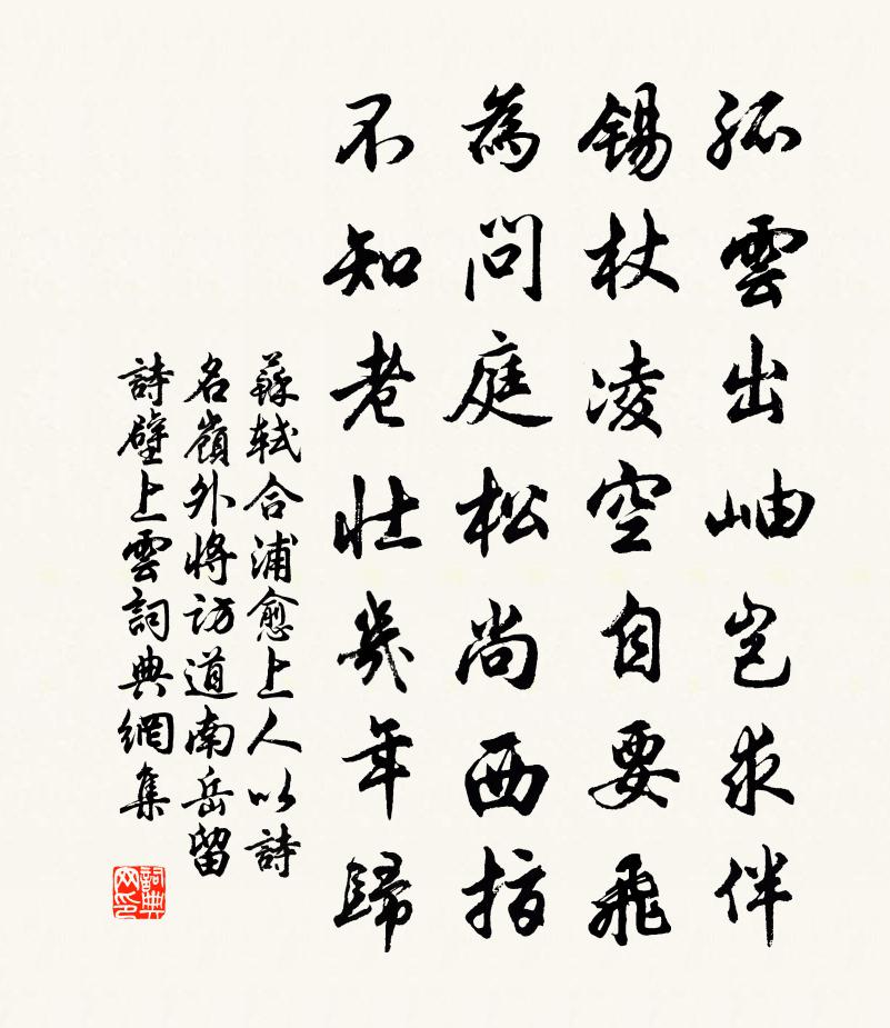 原題:合浦愈上人以詩名嶺外將訪道南嶽留詩壁上雲閒伴孤雲自在飛東坡居士過其精舍戲和其韻